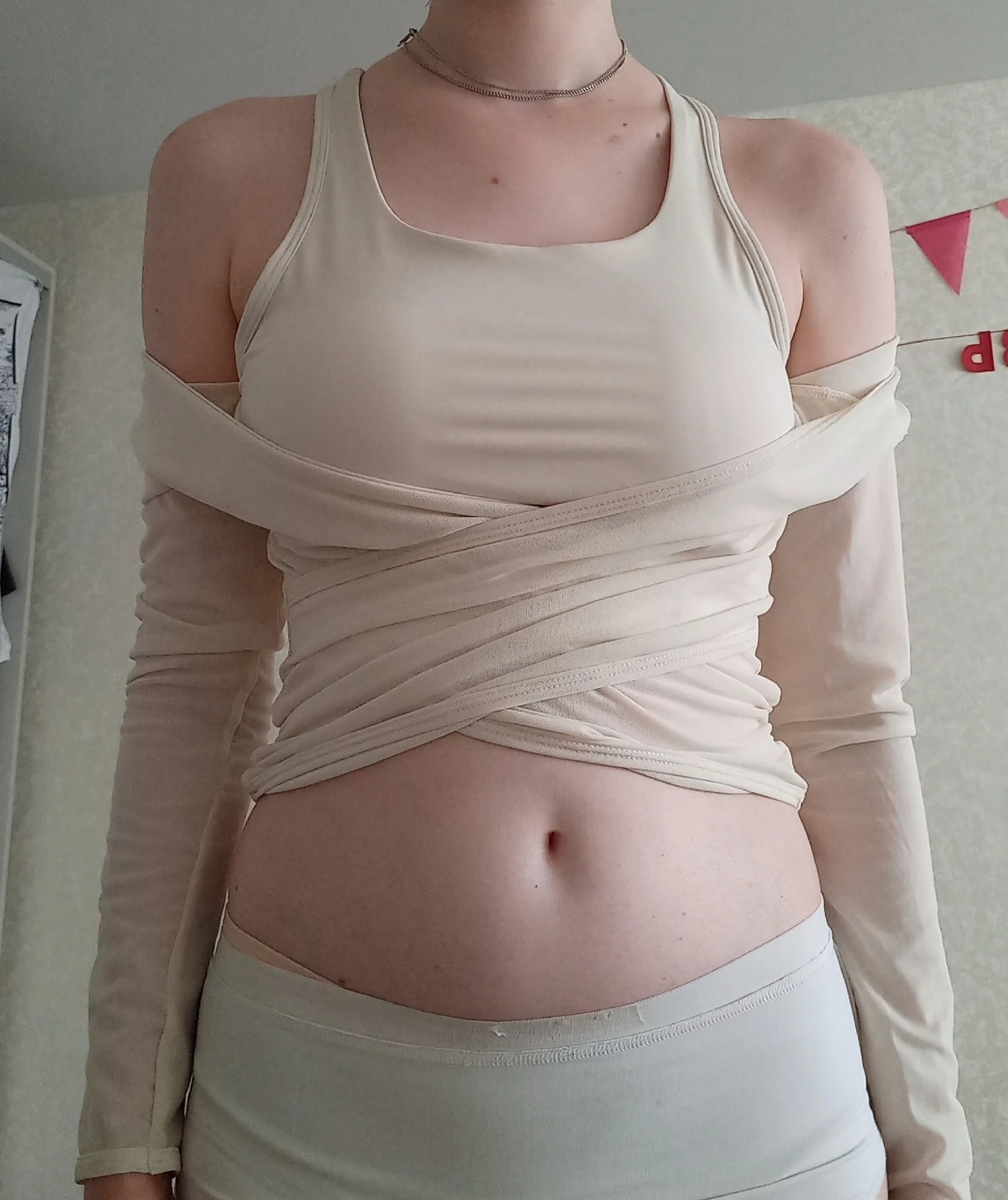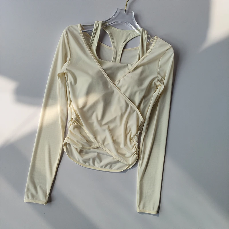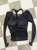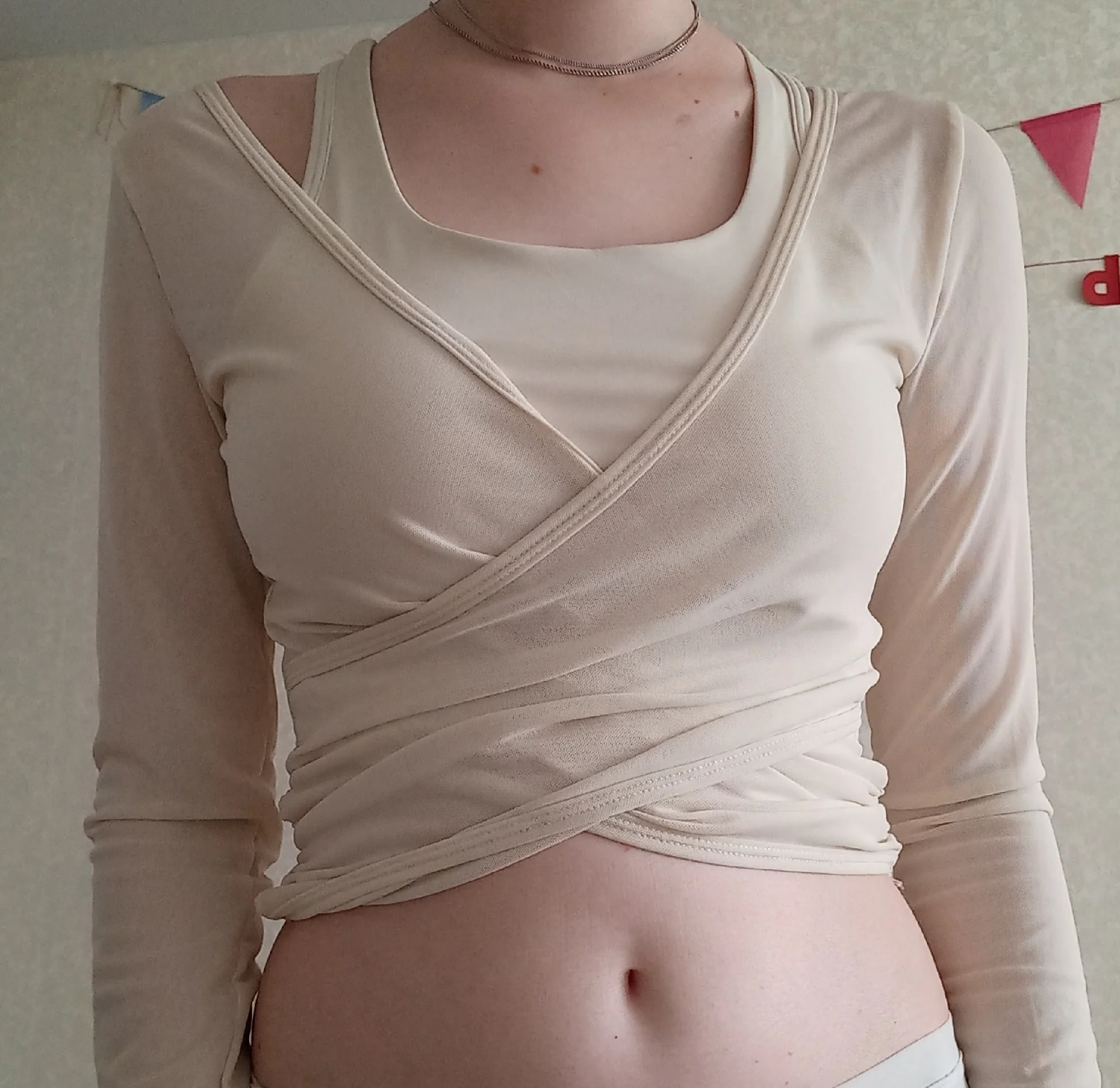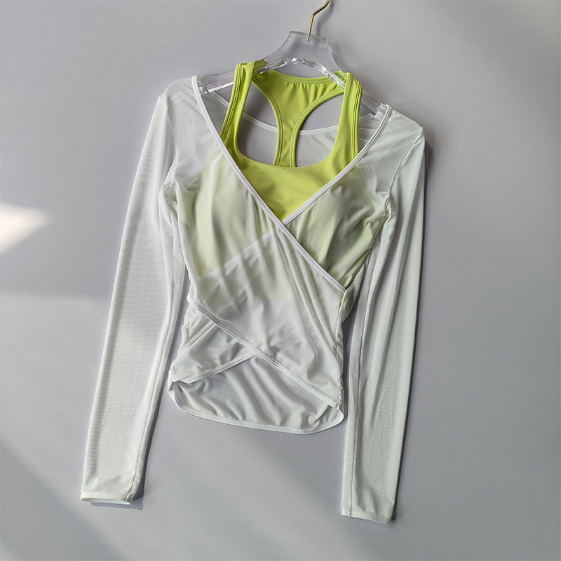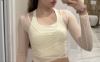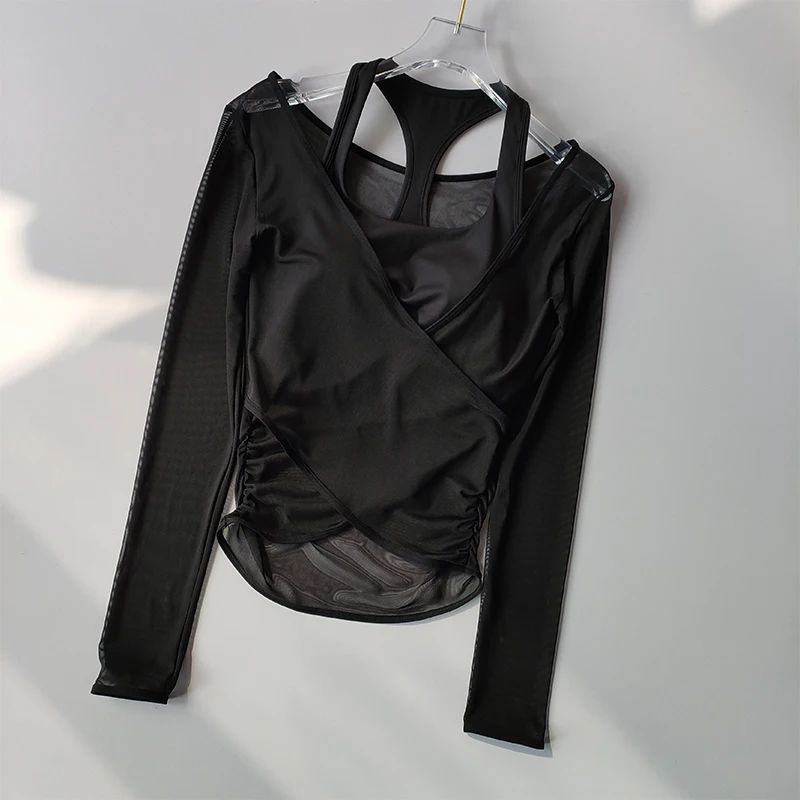 I really liked this top, the cups are not see-through, the quality is good, and it feels nice on the body. The only issue is that the mesh slightly rises at the bottom, but it's not a big deal at all. The dance training also went well, nothing restricted movement, didn't ride up, thumbs up. The only thing is that every time I get confused on how to wear it :D.