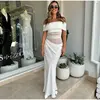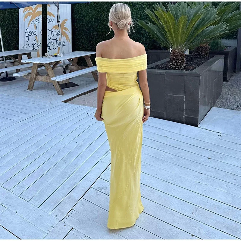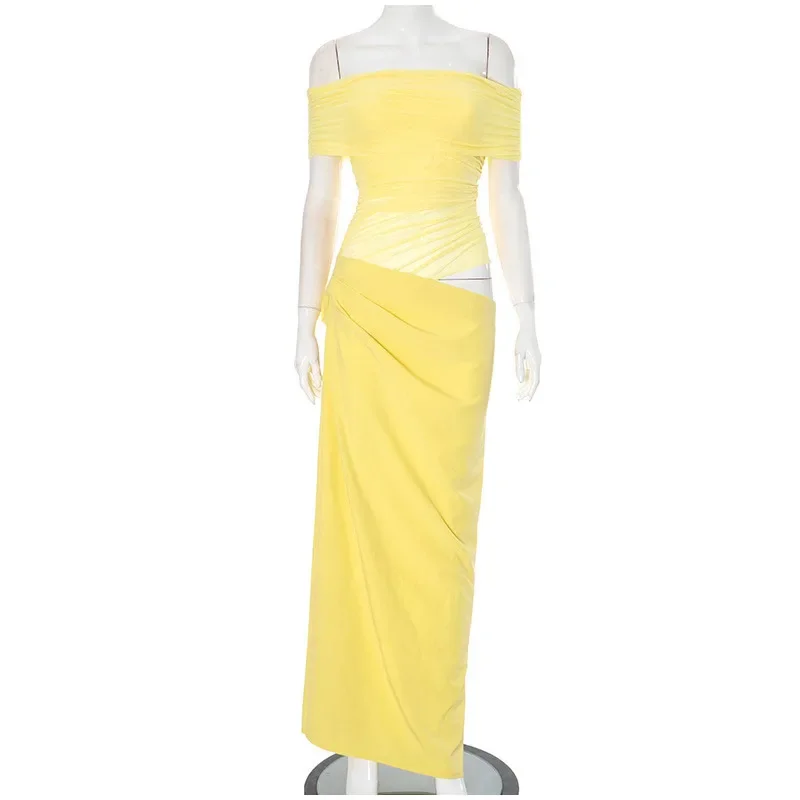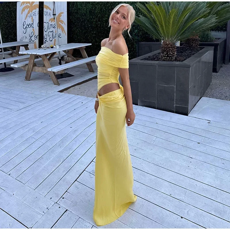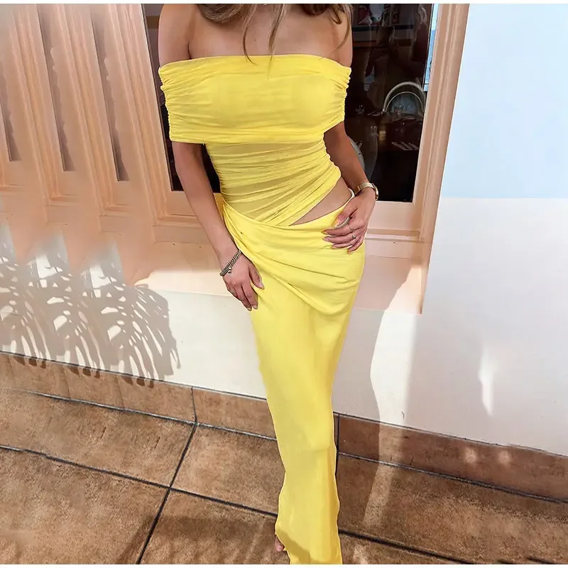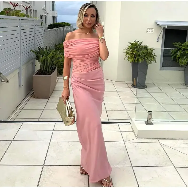 Sexy Slim Mesh Pleated Dress Women Off The Shoulder Sleeveless Backless Party Dresses 2025 Summer Lady Solid Beach Vacation Robe