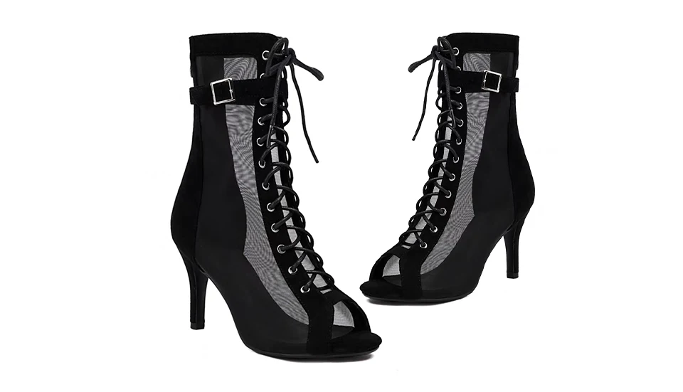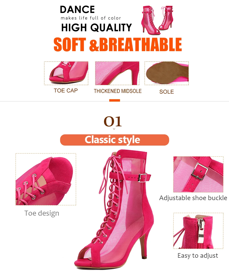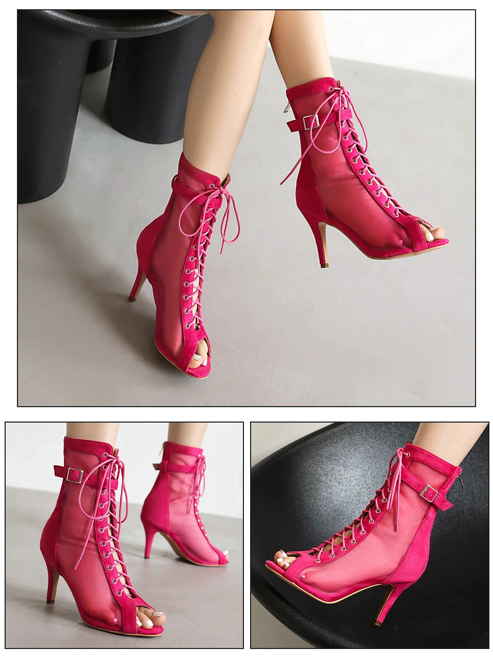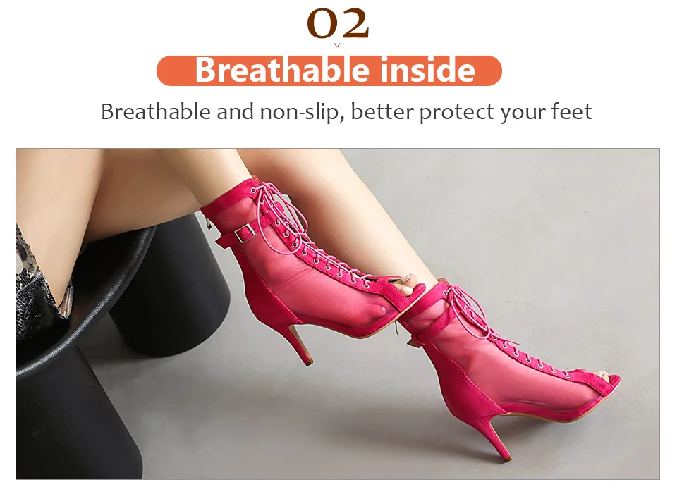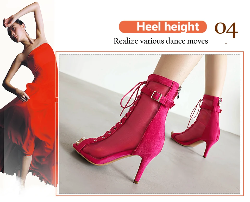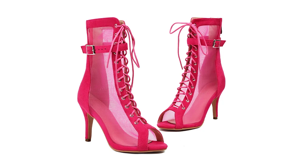 Sexy Stilettos Woman Dance Shoes Rose Red High Heels Peep Toe Party Dance Booties Girls Women Perform Ballroom Dance Boots