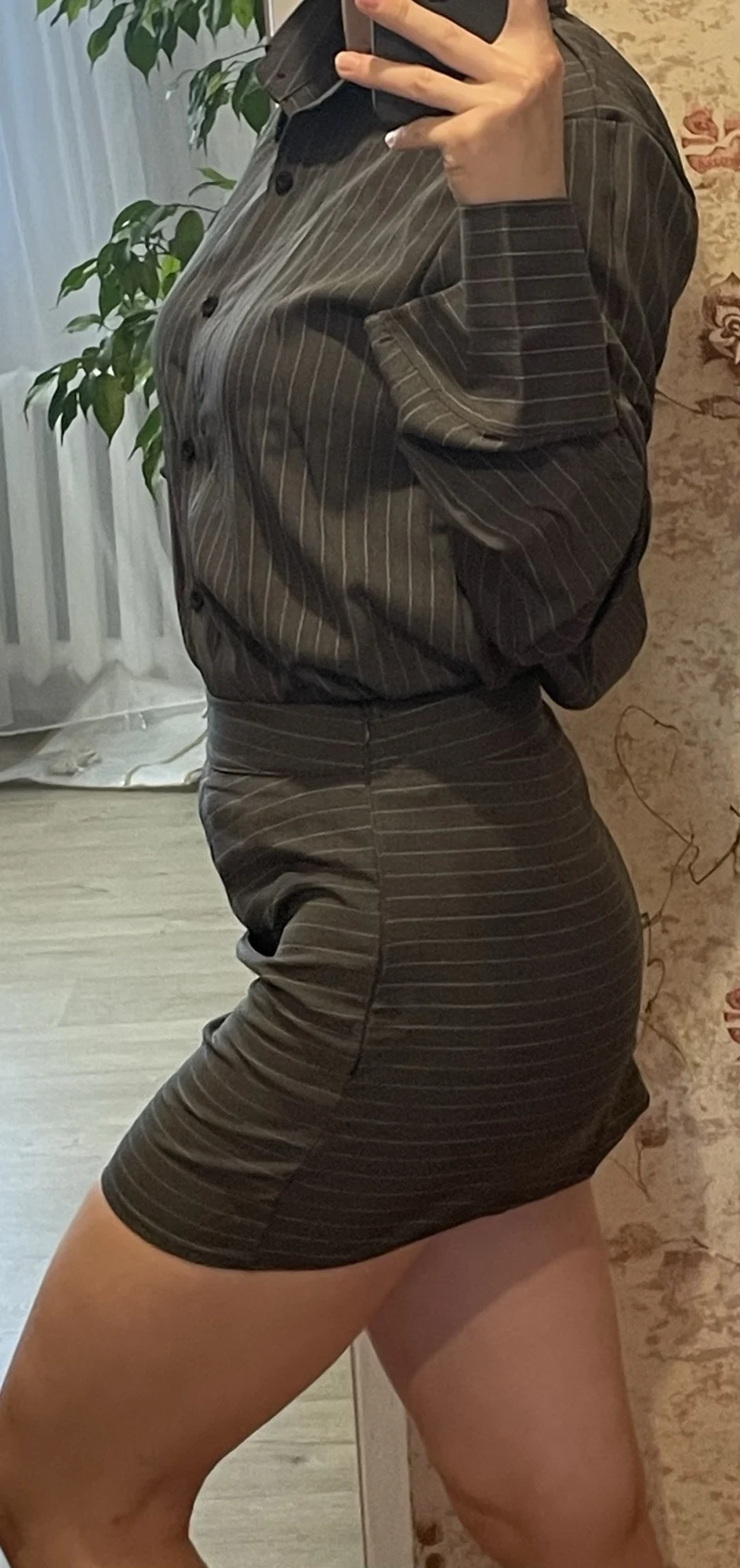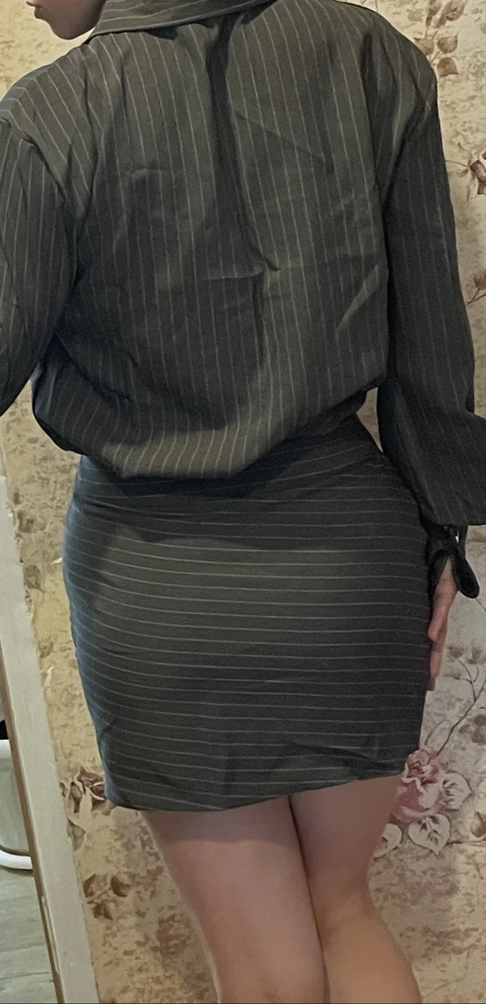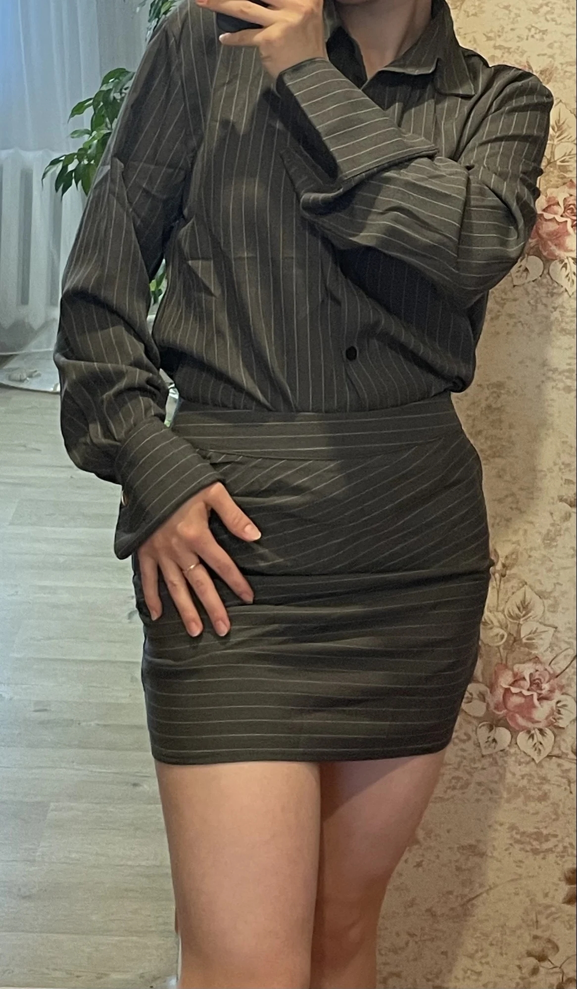 The quality is excellent, really. The fabric is thick, but still light, even in summer it won't be super hot. minus!! I ordered the smallest size that was available, it turned out to be big for me (my measurements are 172 cm 87-63-95), but if you hem the skirt a little, it will be perfect! In the photo, the sleeves are not pinned, when buttoned, they look unusual and beautiful! In general, I recommend it, but be careful with the sizes! the xs suit is too big for us in Russia.