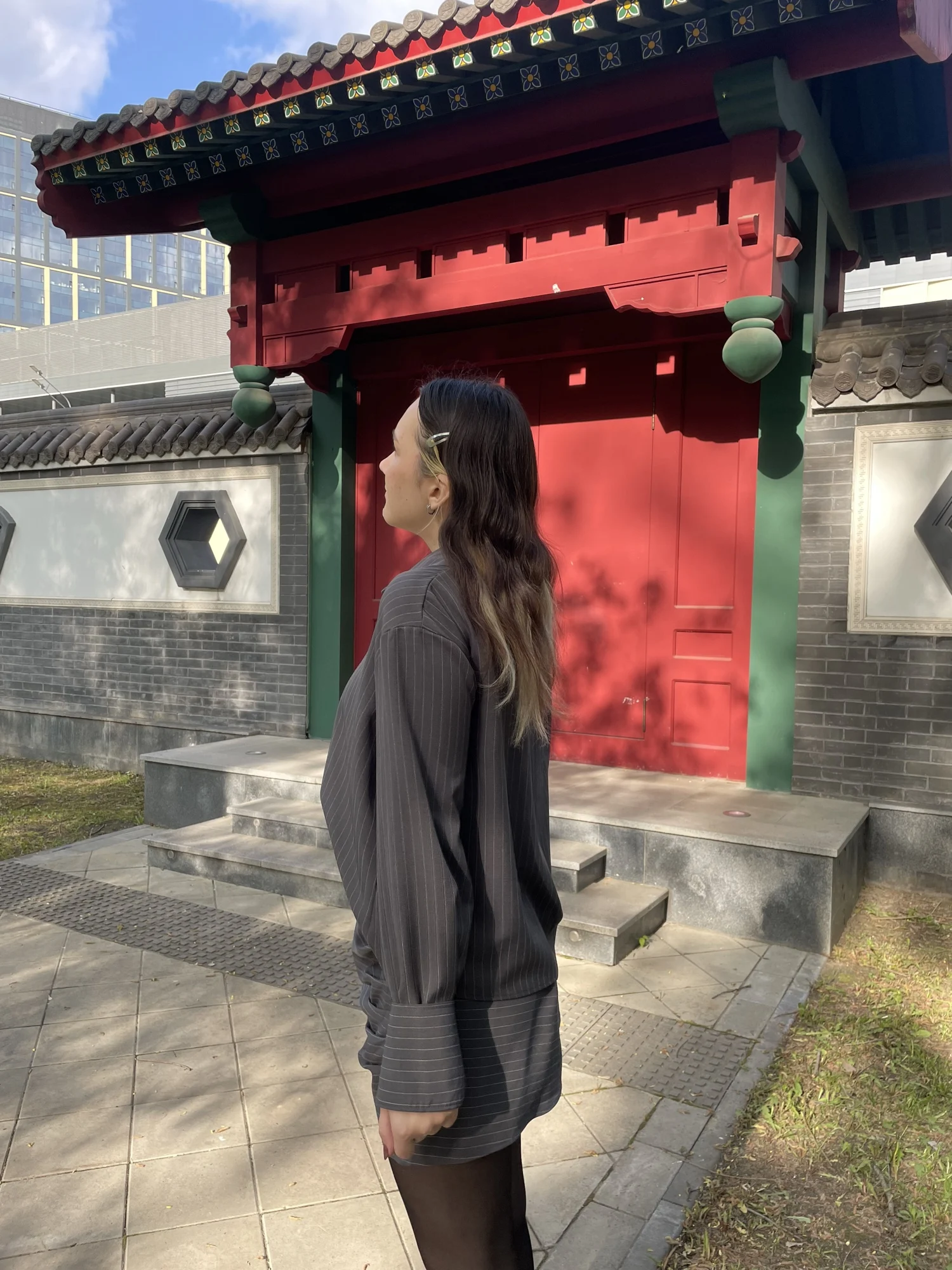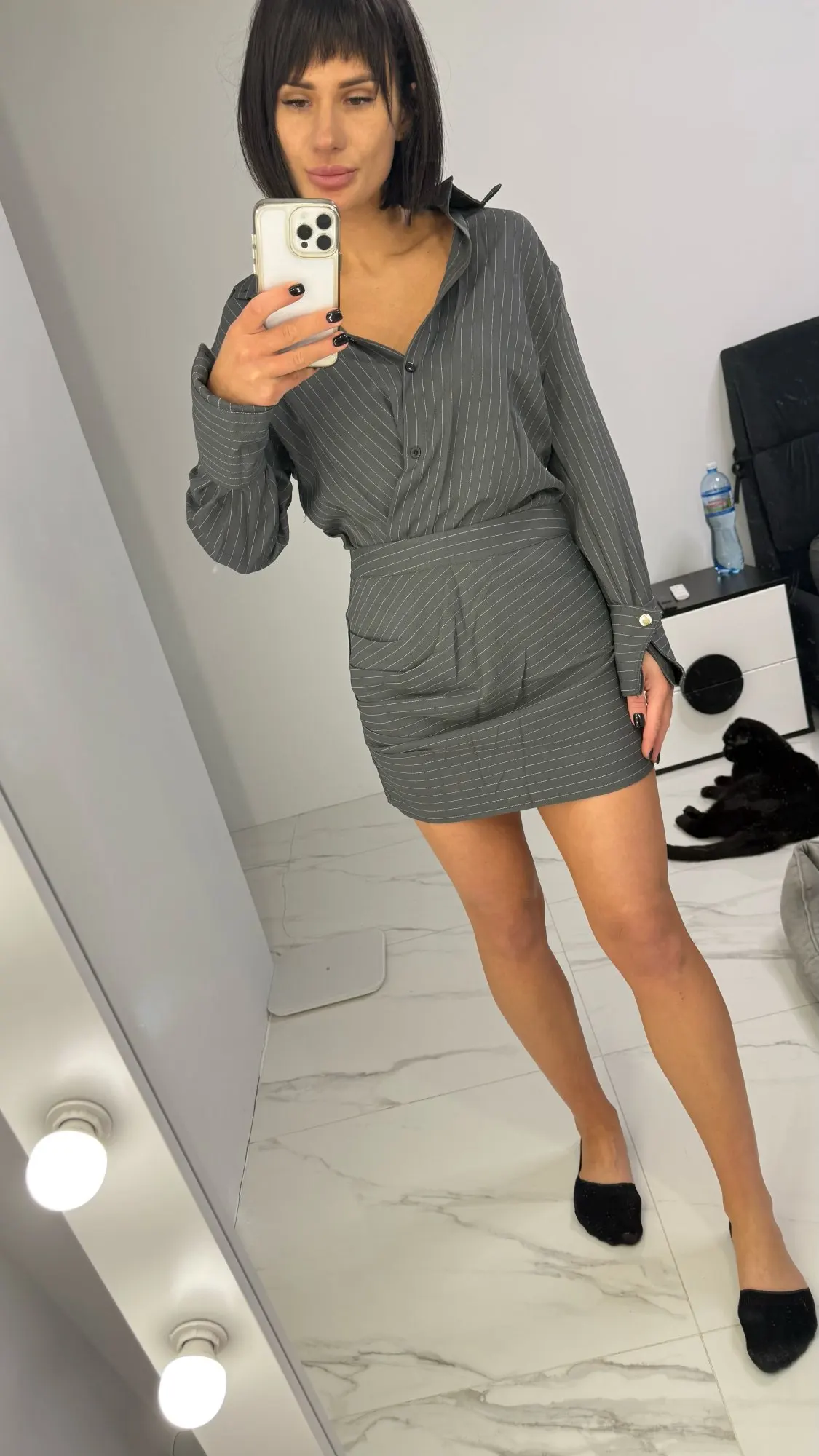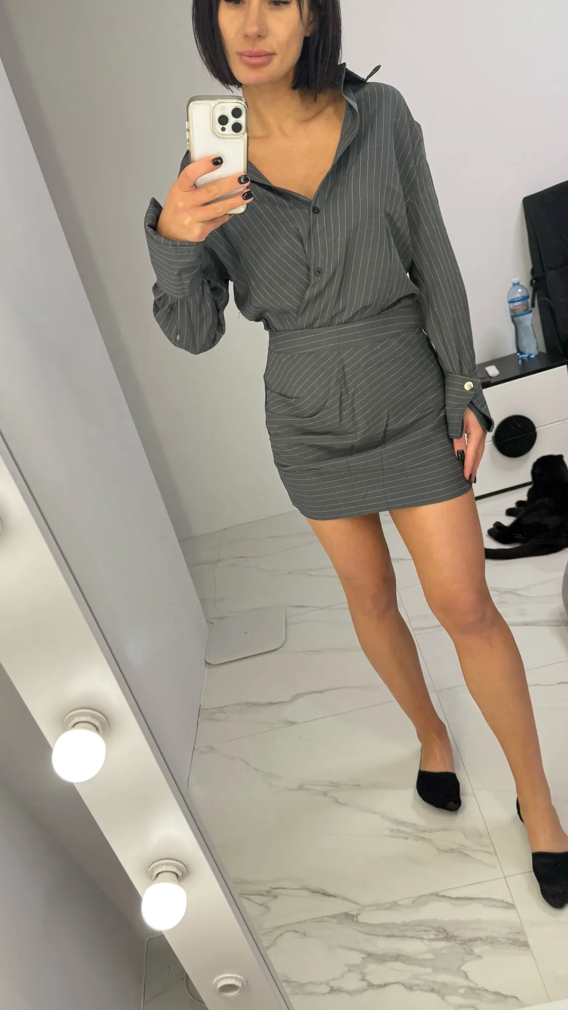 The quality is excellent, really. The fabric is thick, but still light, even in summer it won't be super hot. minus!! I ordered the smallest size that was available, it turned out to be big for me (my measurements are 172 cm 87-63-95), but if you hem the skirt a little, it will be perfect! In the photo, the sleeves are not pinned, when buttoned, they look unusual and beautiful! In general, I recommend it, but be careful with the sizes! the xs suit is too big for us in Russia.