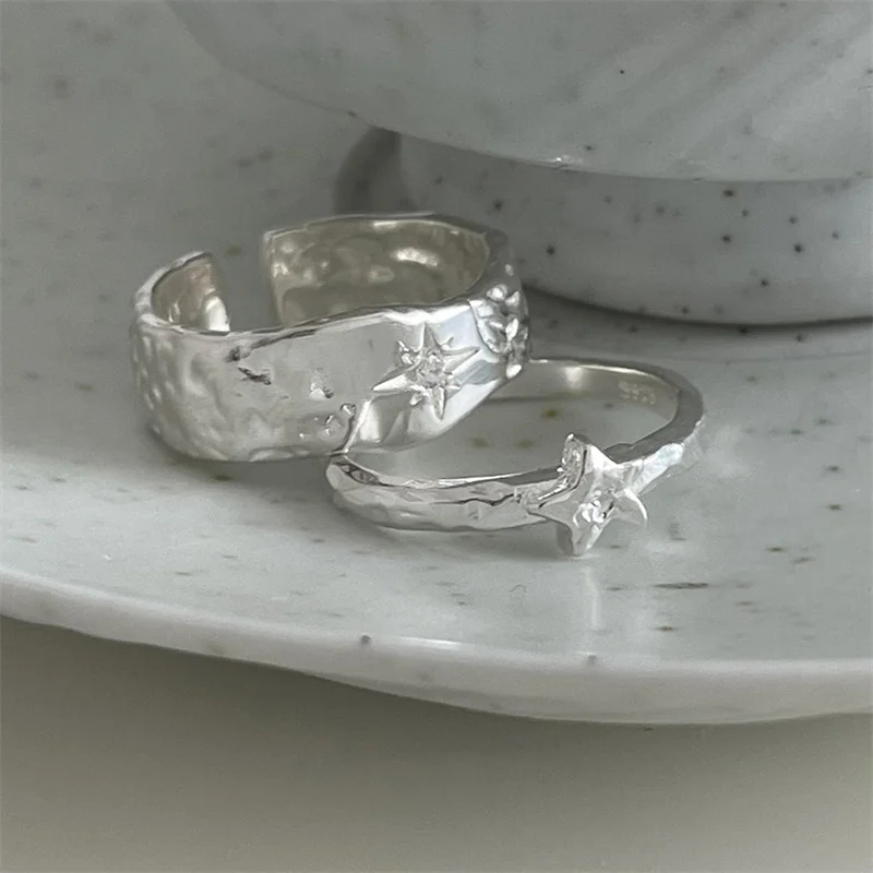 Silver Color Star Rings for Women men Fashion Geometric Handmade Irregular Vintage Ring Party Christmas Gift