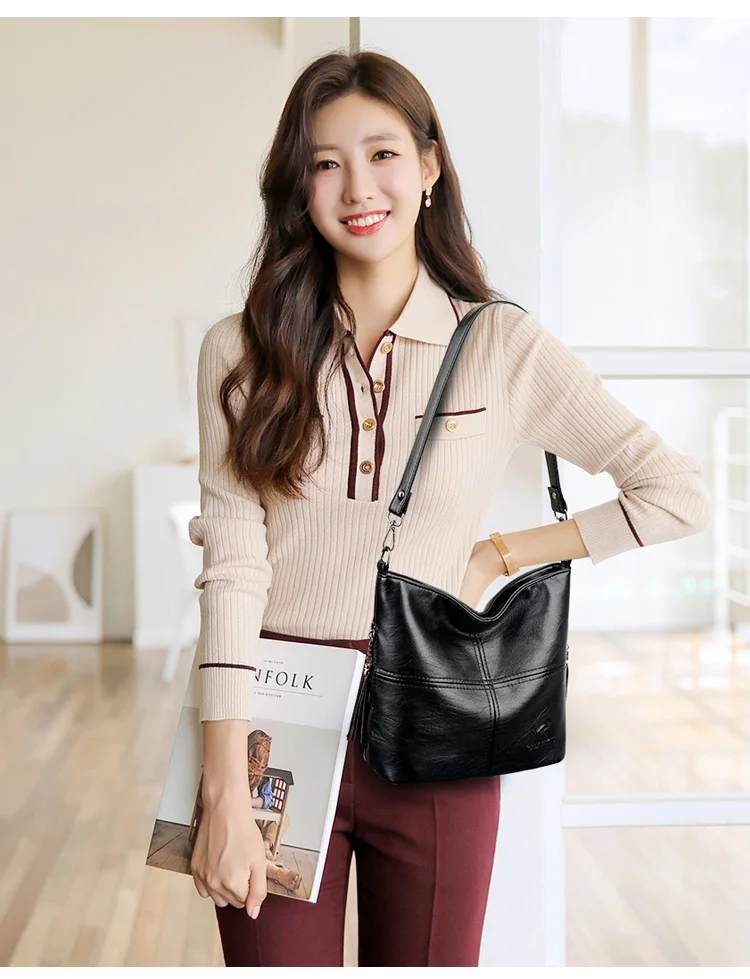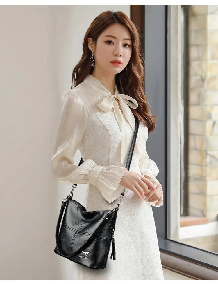 Simple Bucket Bag Pu Leather Shoulder Bag for Women 2024 Winter Purses and Handbags Luxury Designer Elegant Female Crossbody Bag