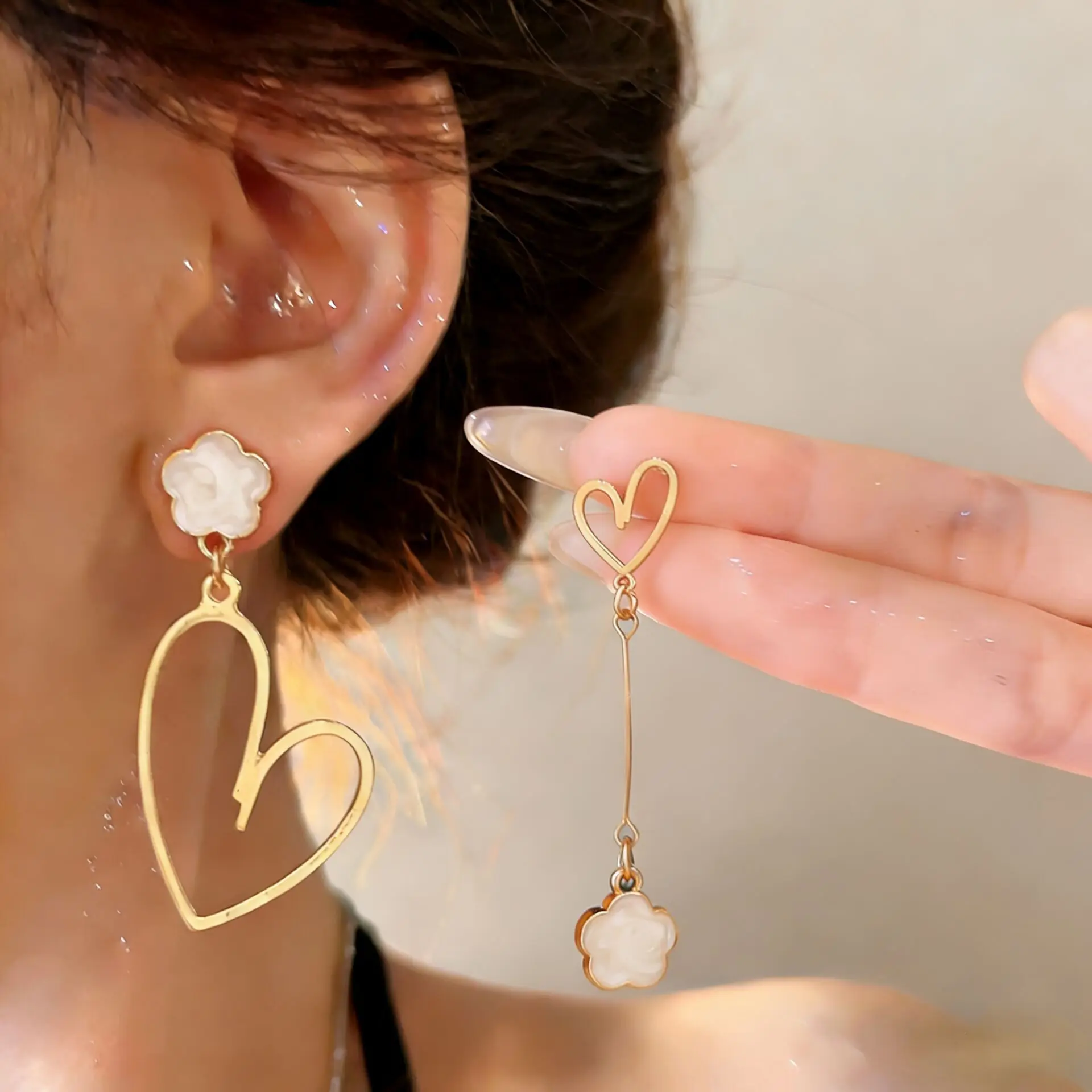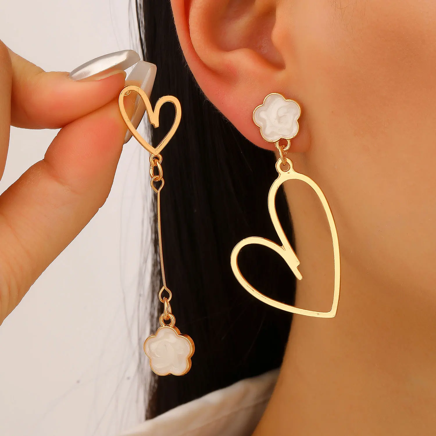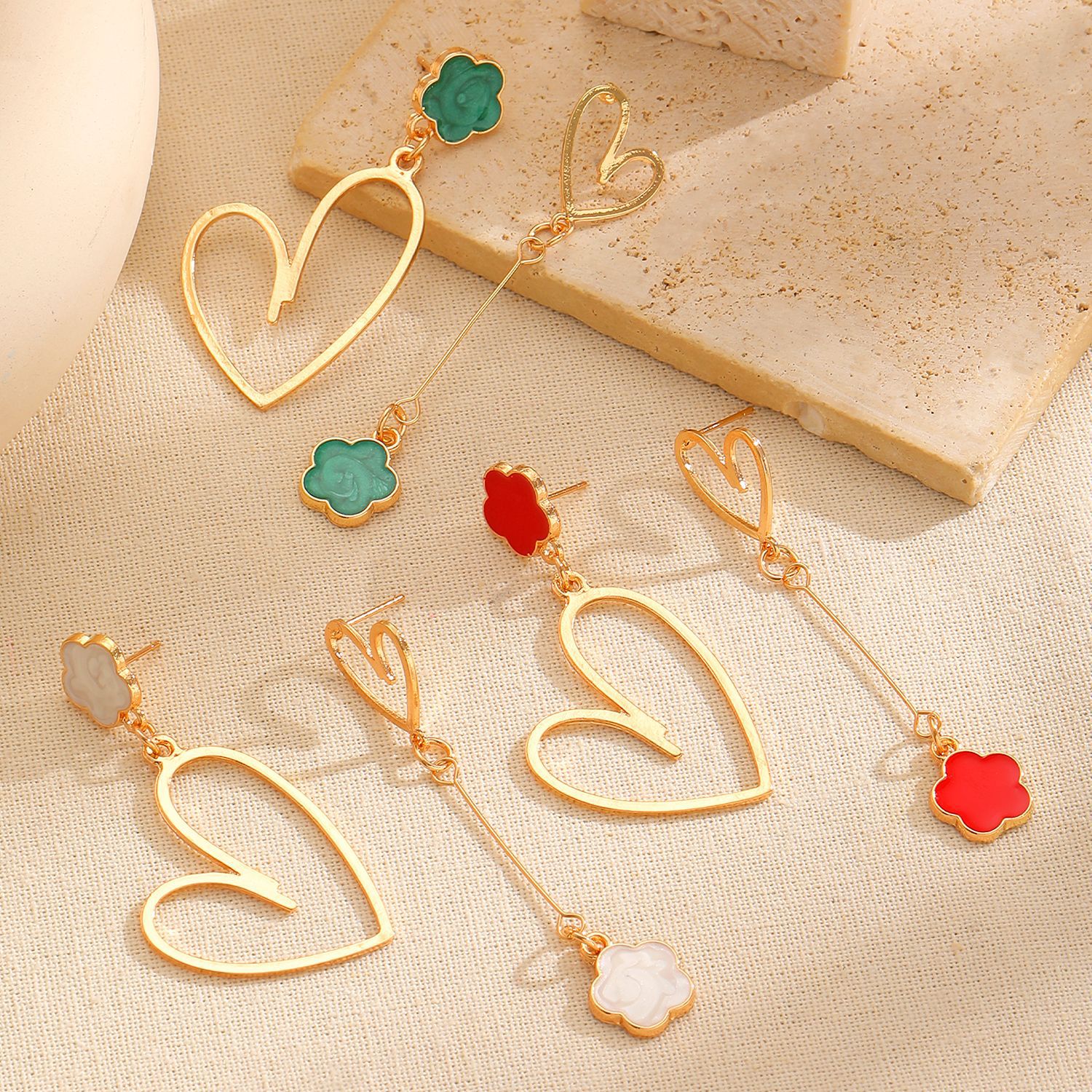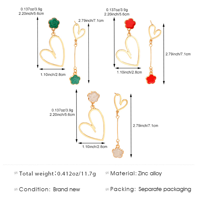 Simple Peach Heart Drop Oil Flower Pendant Stud Earrings for Women Personalized Cute Asymmetry Jewelry Fashion Accessories Gift