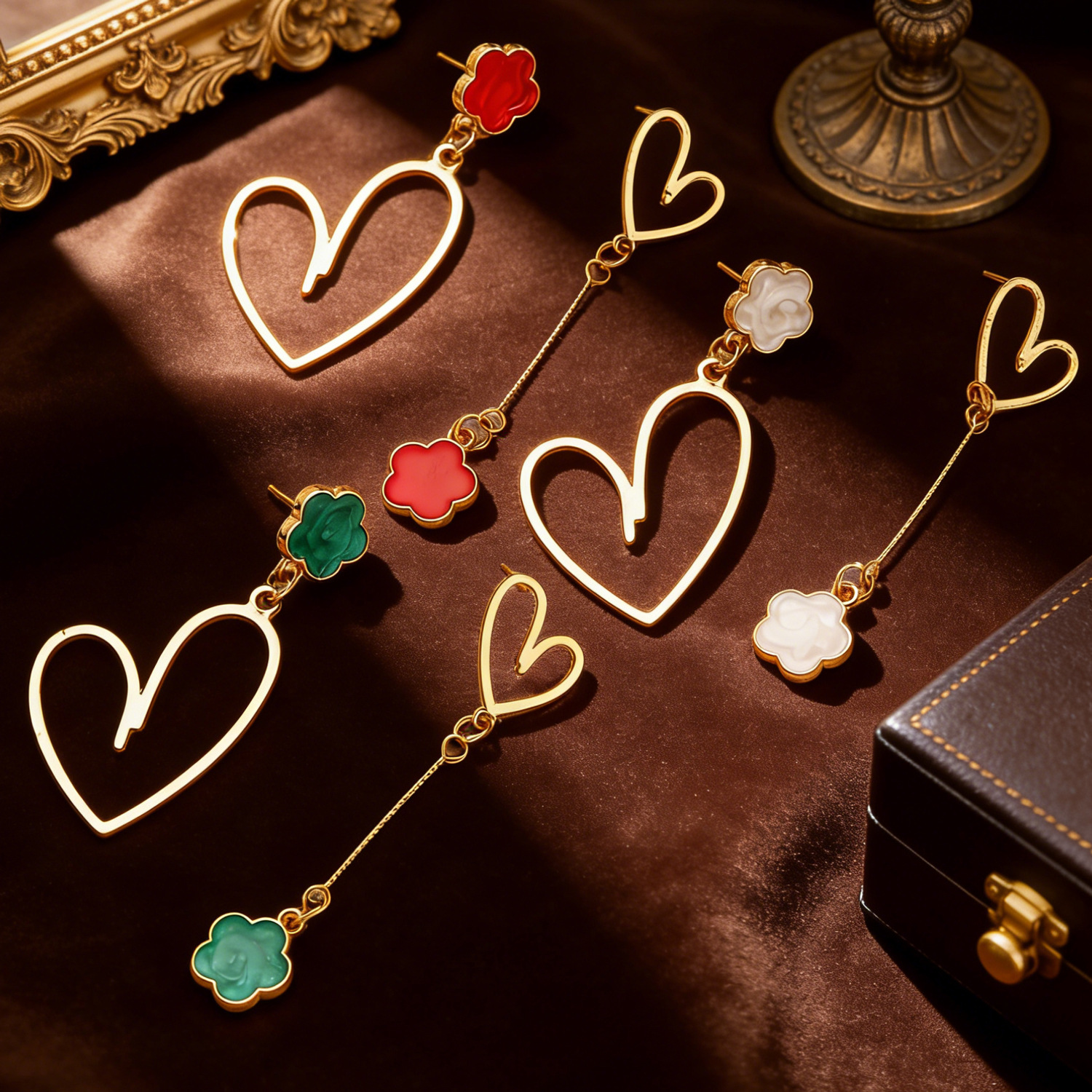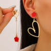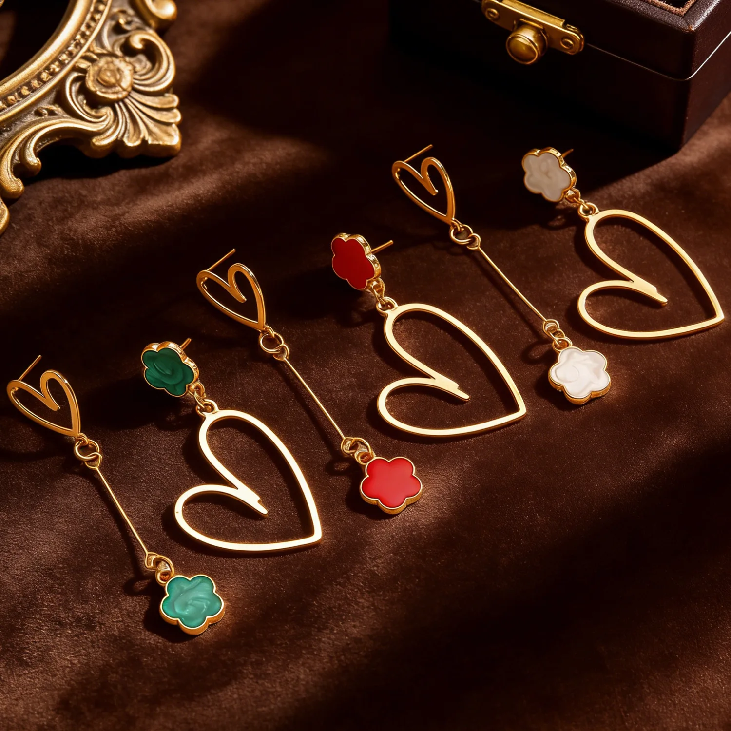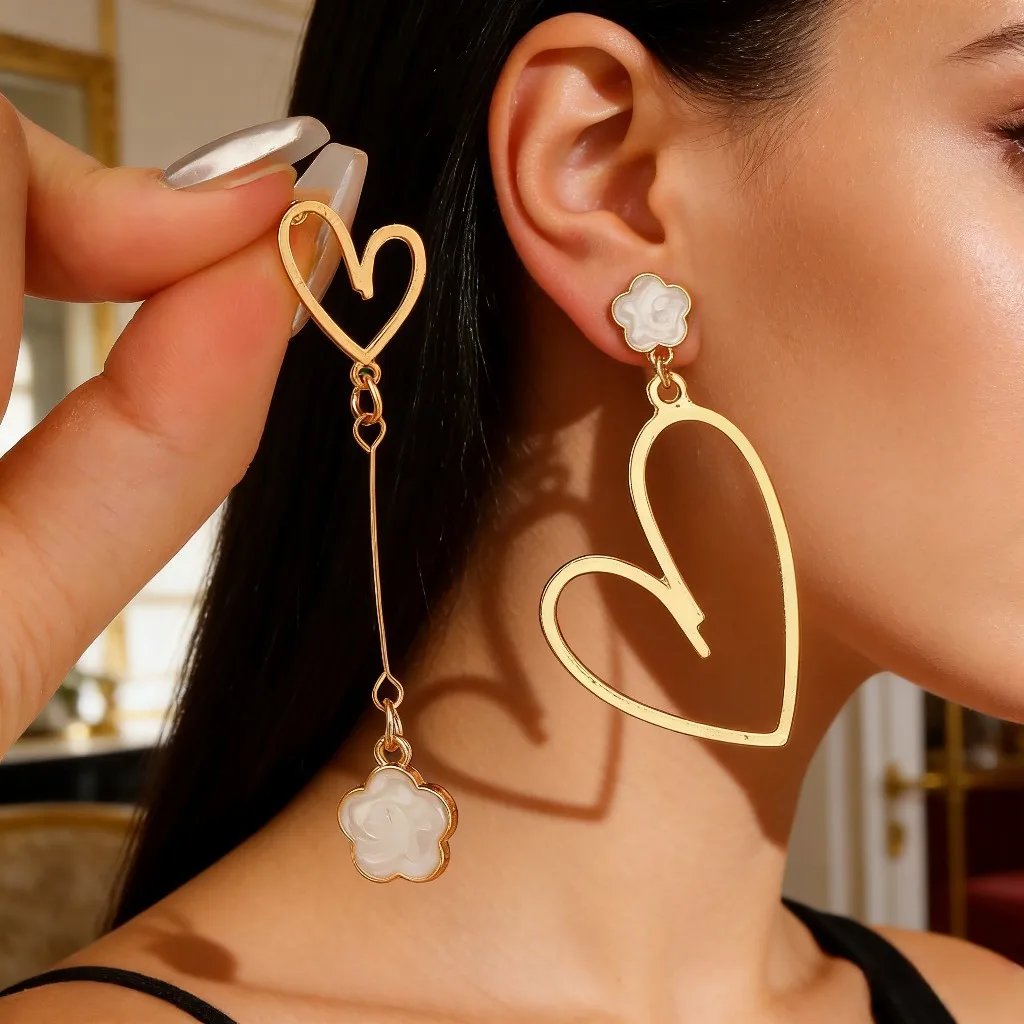 Simple Peach Heart Drop Oil Flower Pendant Stud Earrings for Women Personalized Cute Asymmetry Jewelry Fashion Accessories Gift