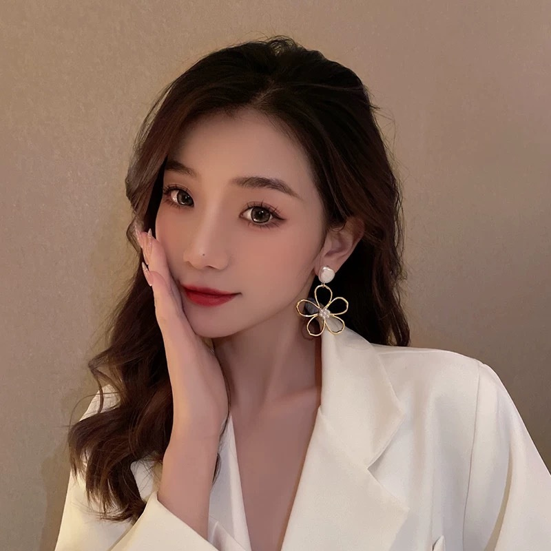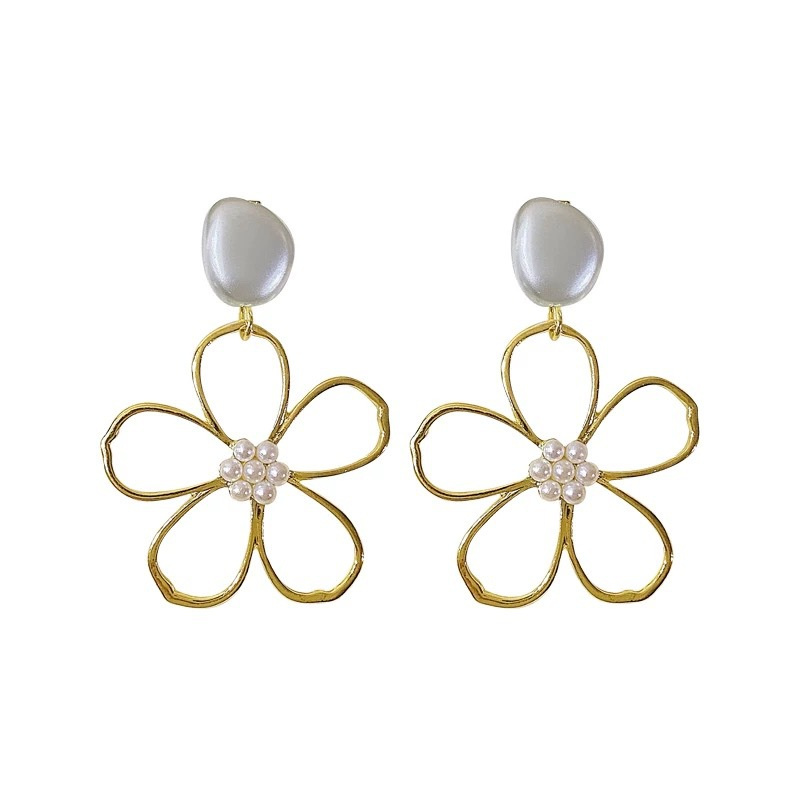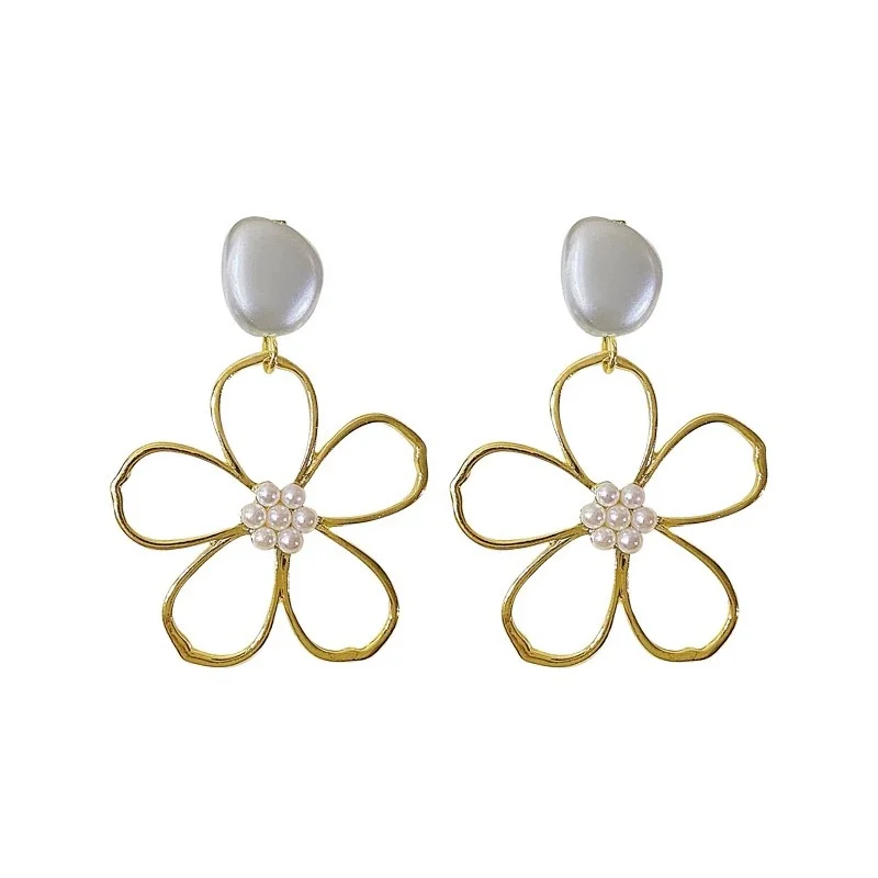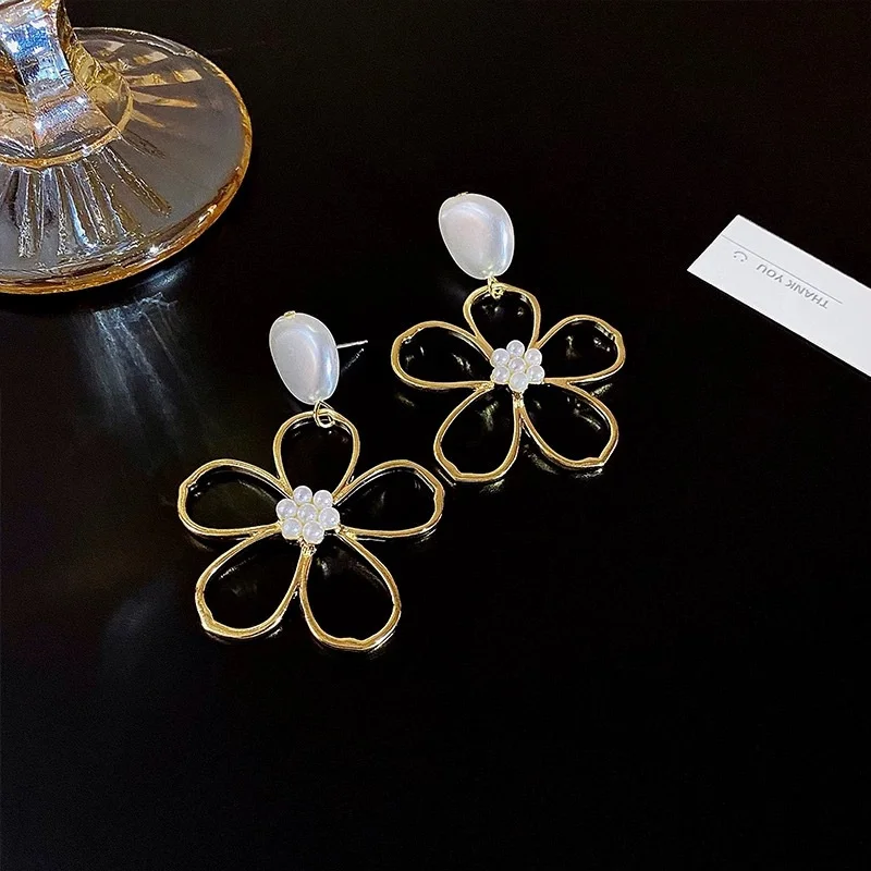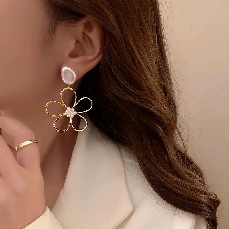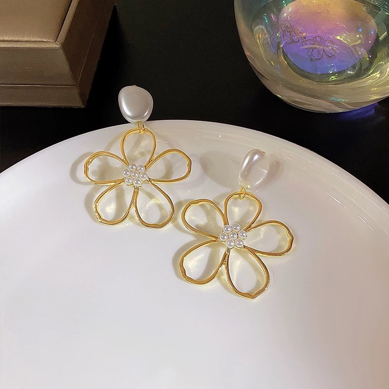 Simple Pearl Flower Earrings For Women Fashion High-End Metal Sense Temperament Earrings 2025 Trend