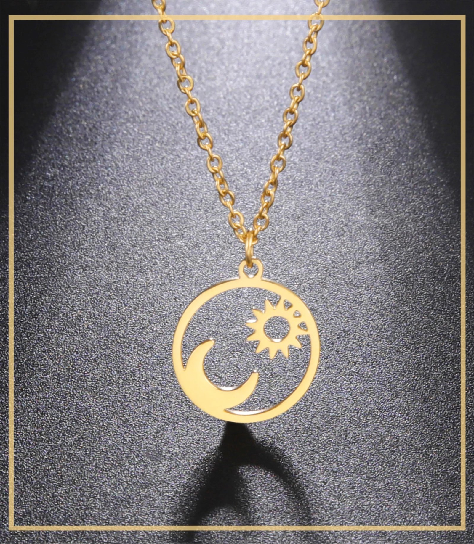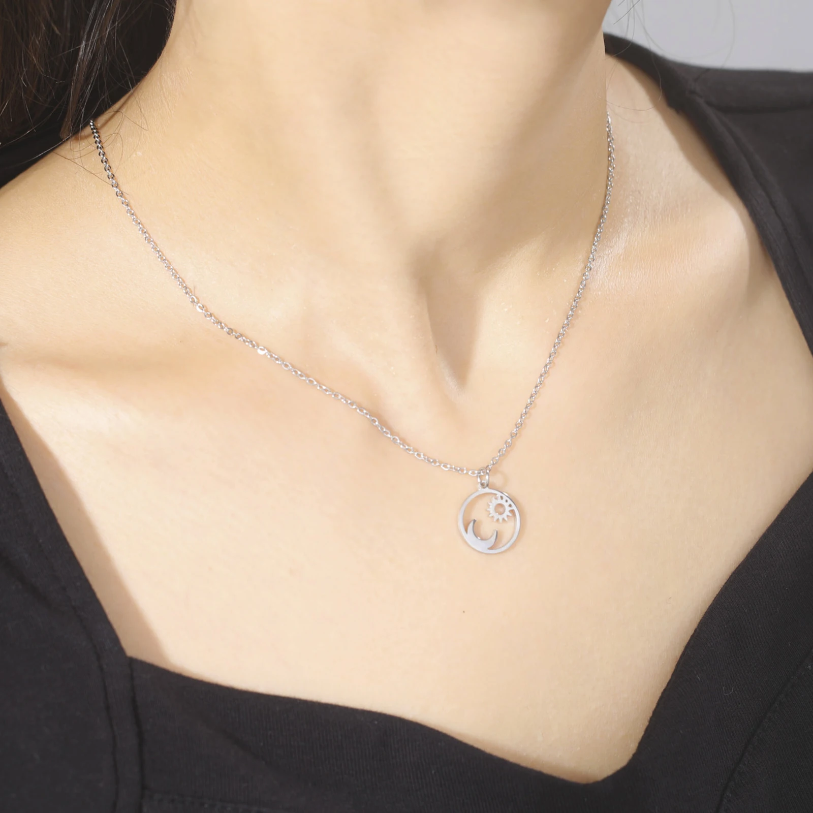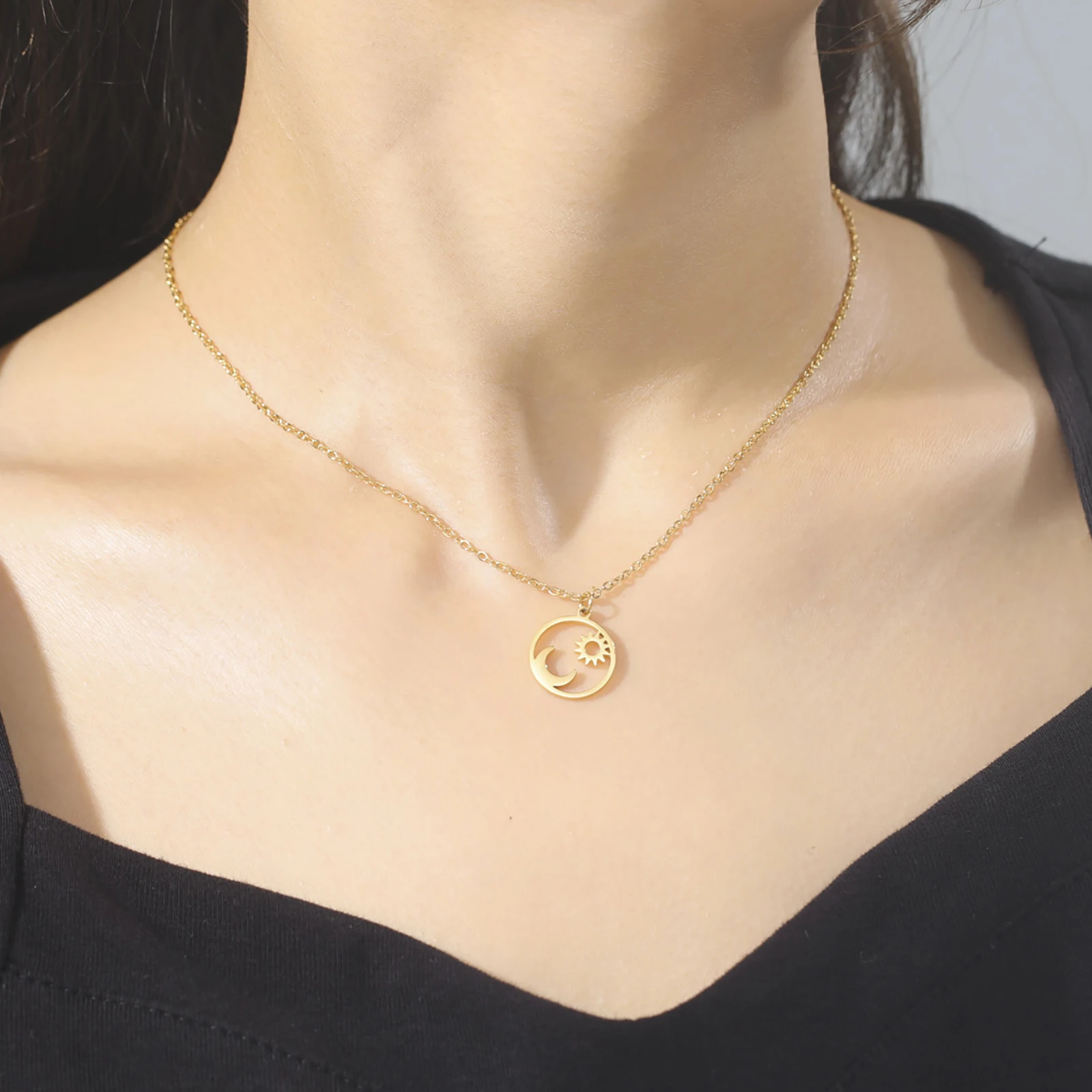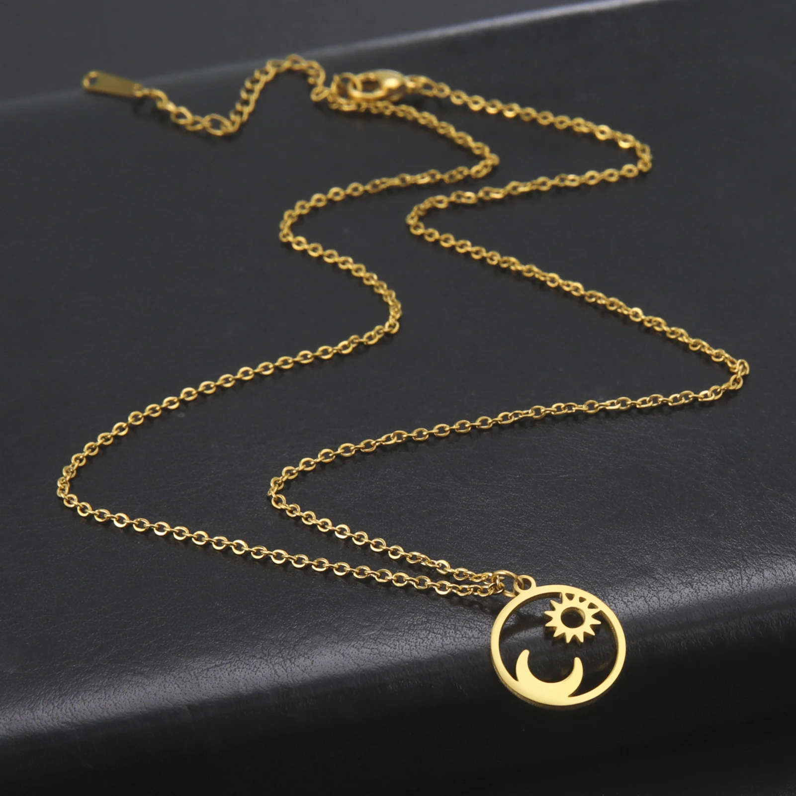Skyrim Moon and Sun Eternal Love Necklace for Women Stainless Steel Gold Color Choker Neck Chain Korean Romantic Jewelry Gift
