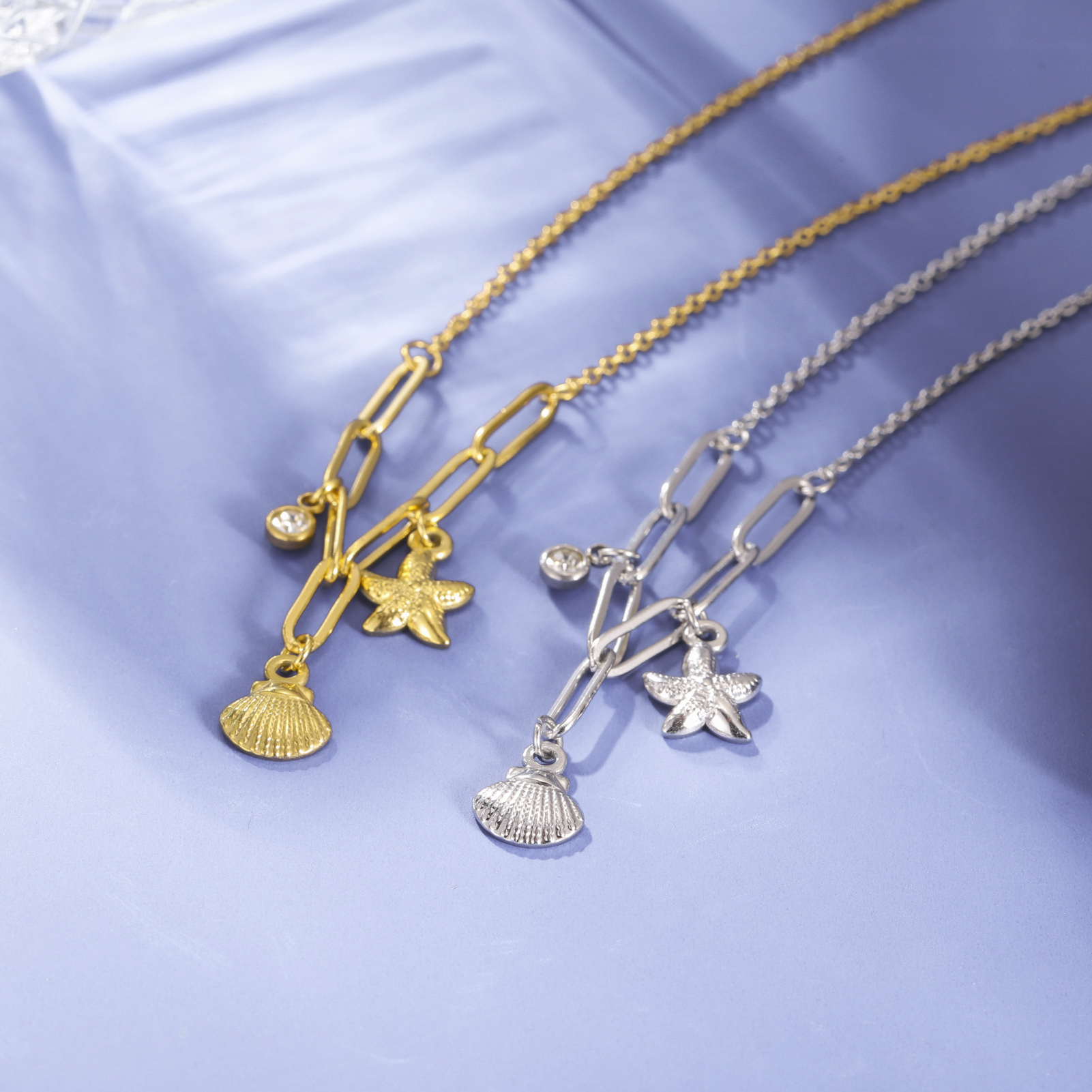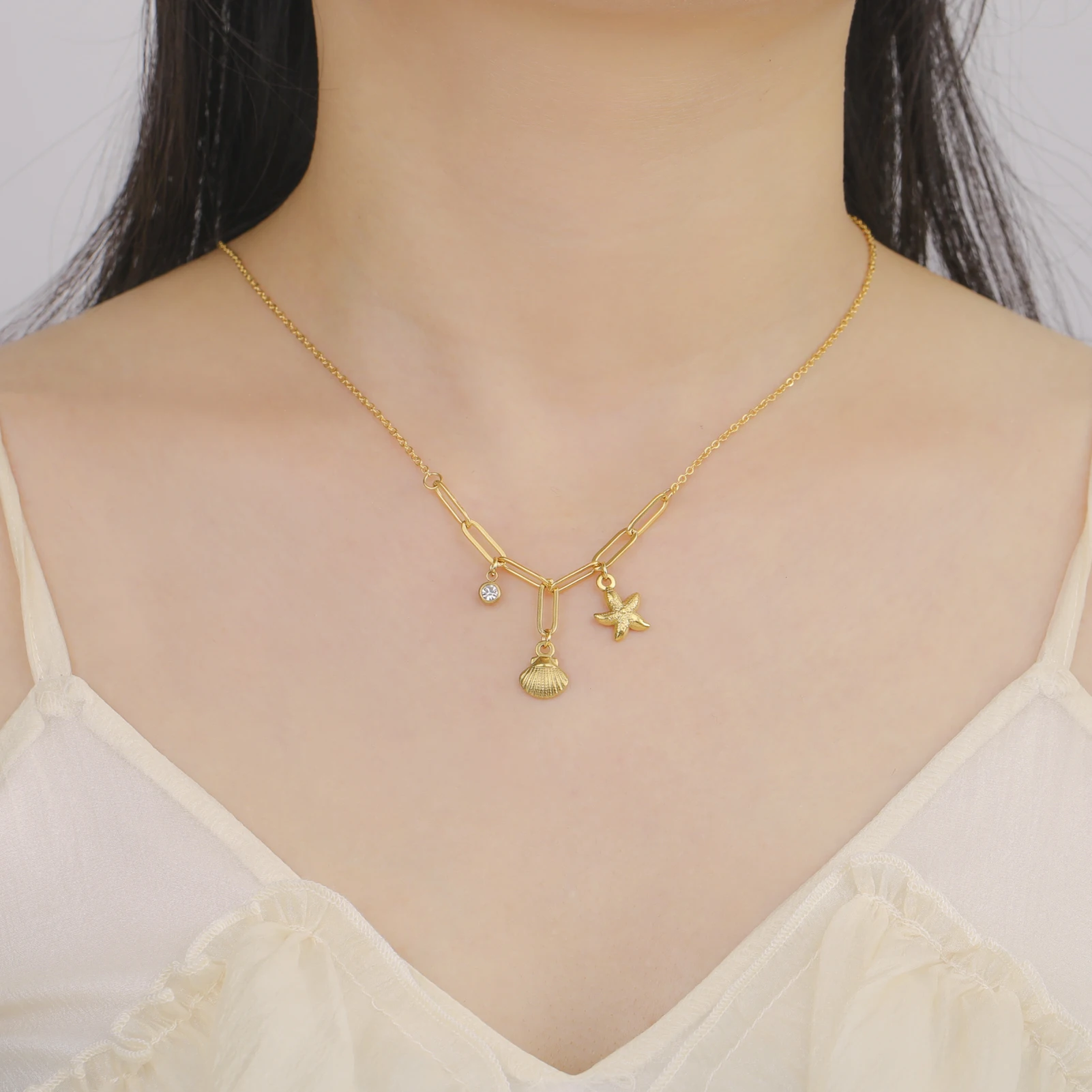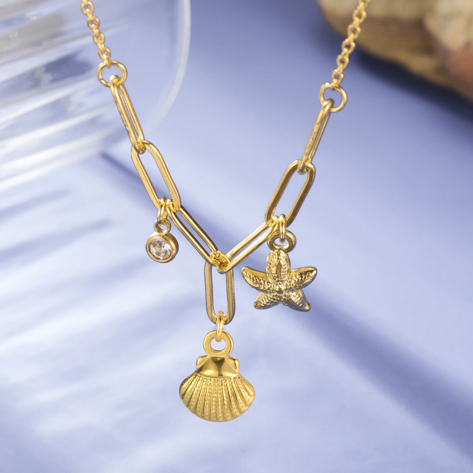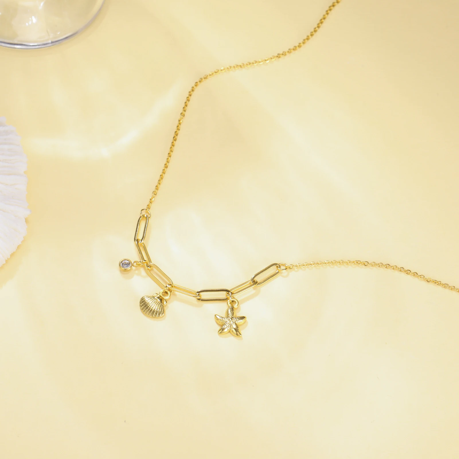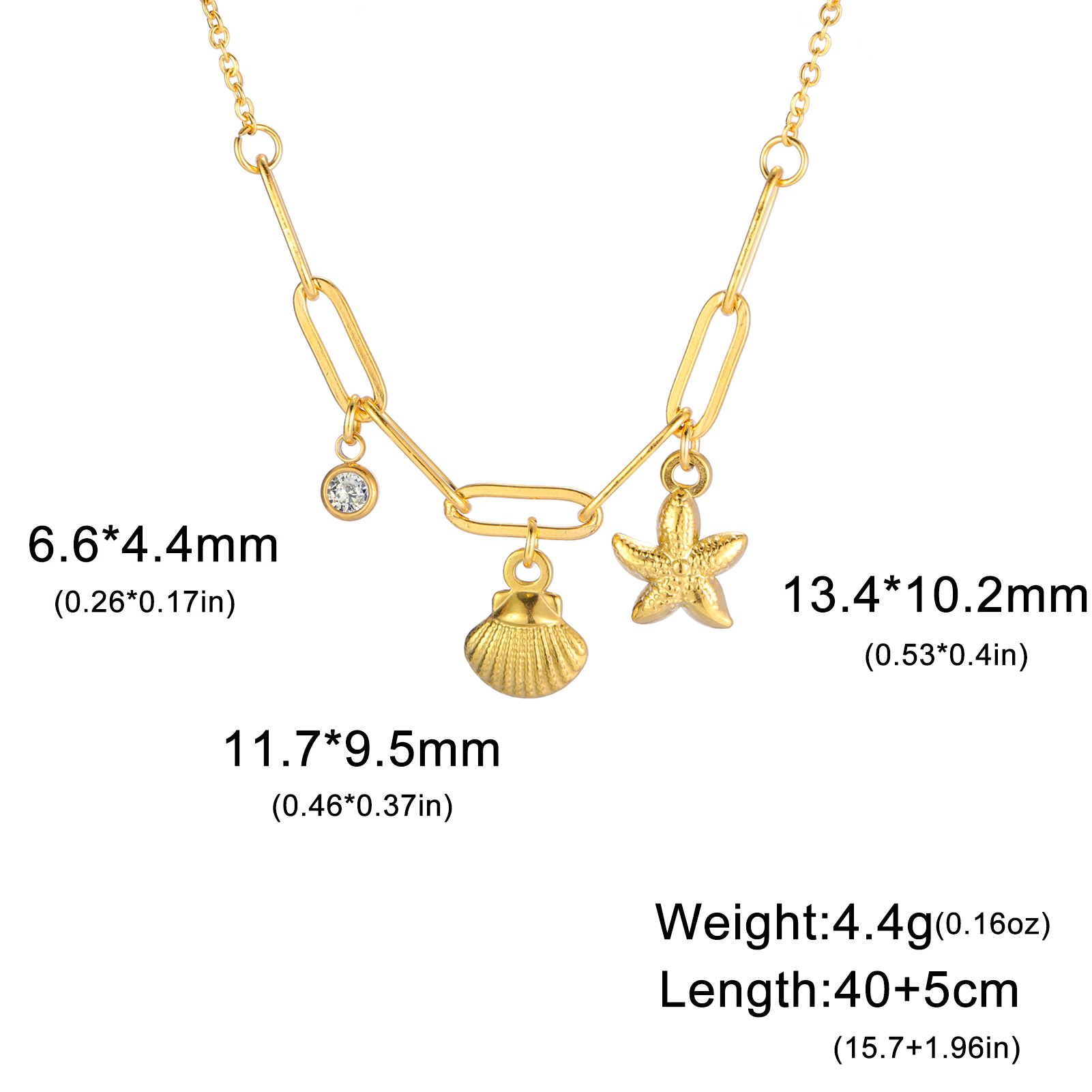Skyrim Starfish Shell Zircon Pendant Necklace Women Girls Stainless Steel Paperclip Chain Choker Beach Jewelry Gift Wholesale