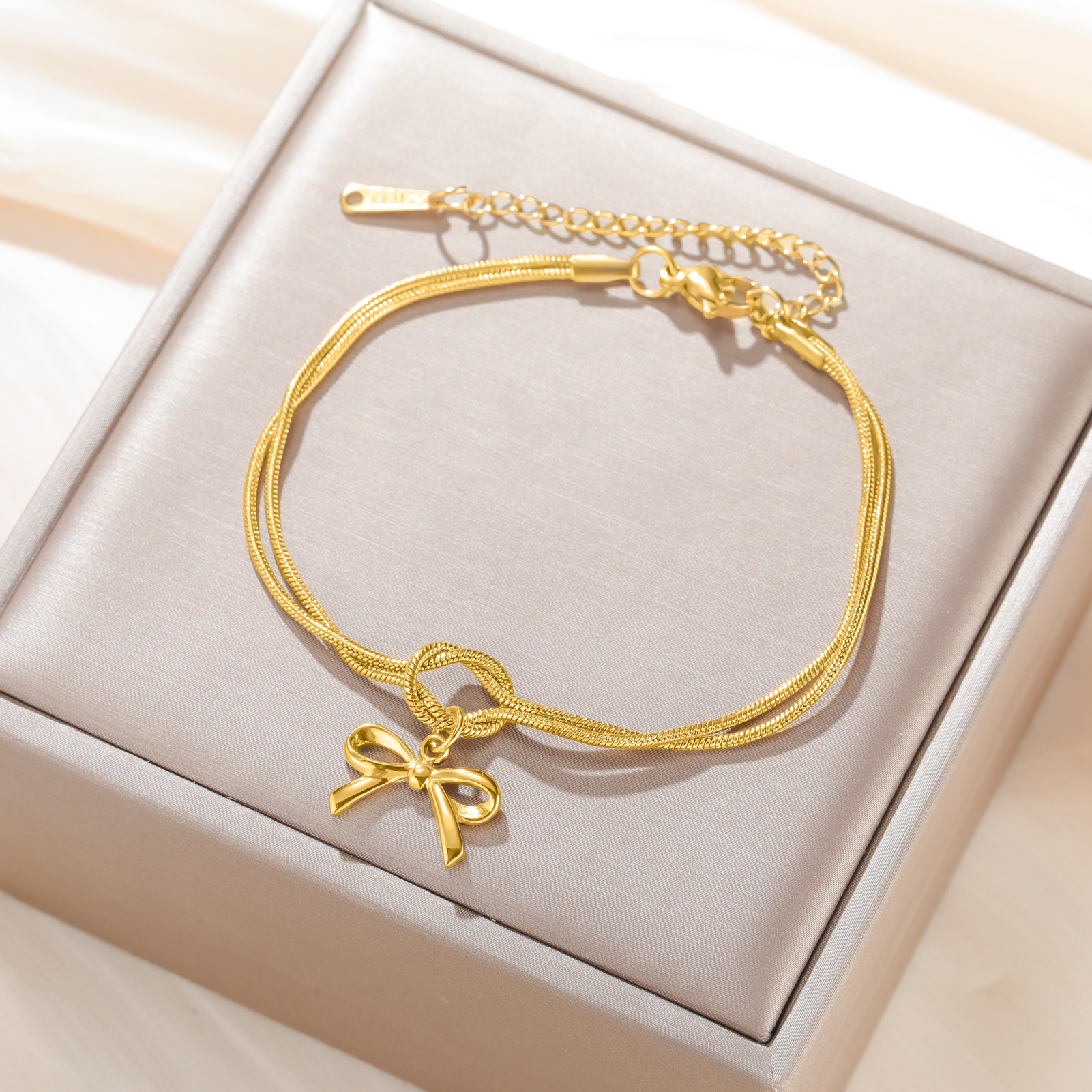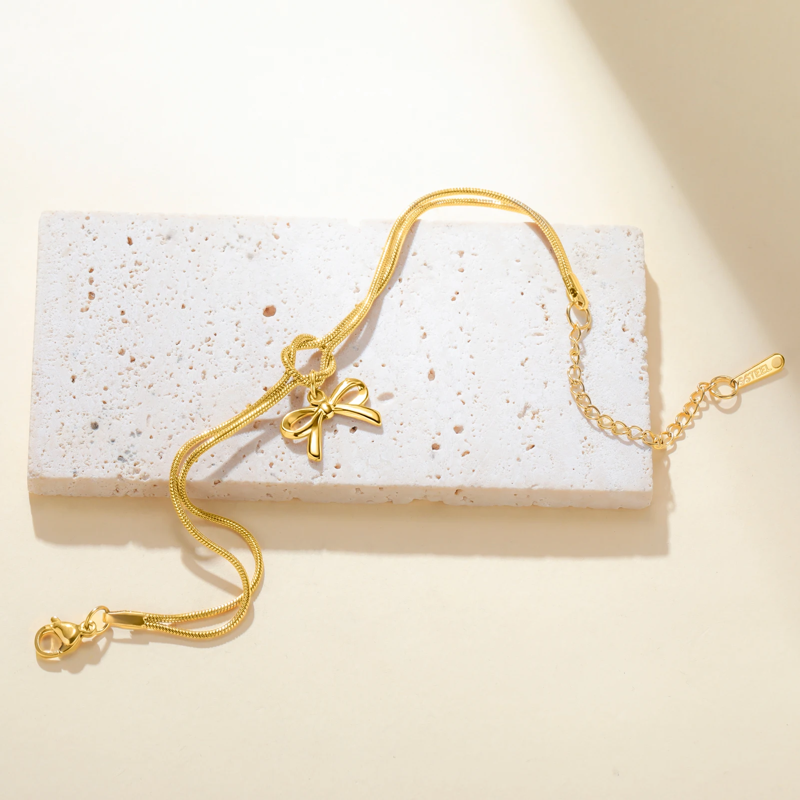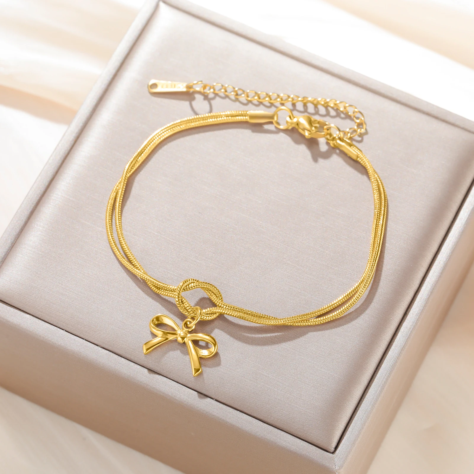 Skyrim Sweet Bowknot Charm Bracelet Women’s Stainless Steel Gold Color Love Knot Snake Chain Bracelets Fashion Jewelry Gift