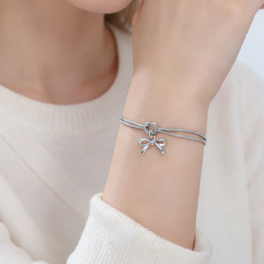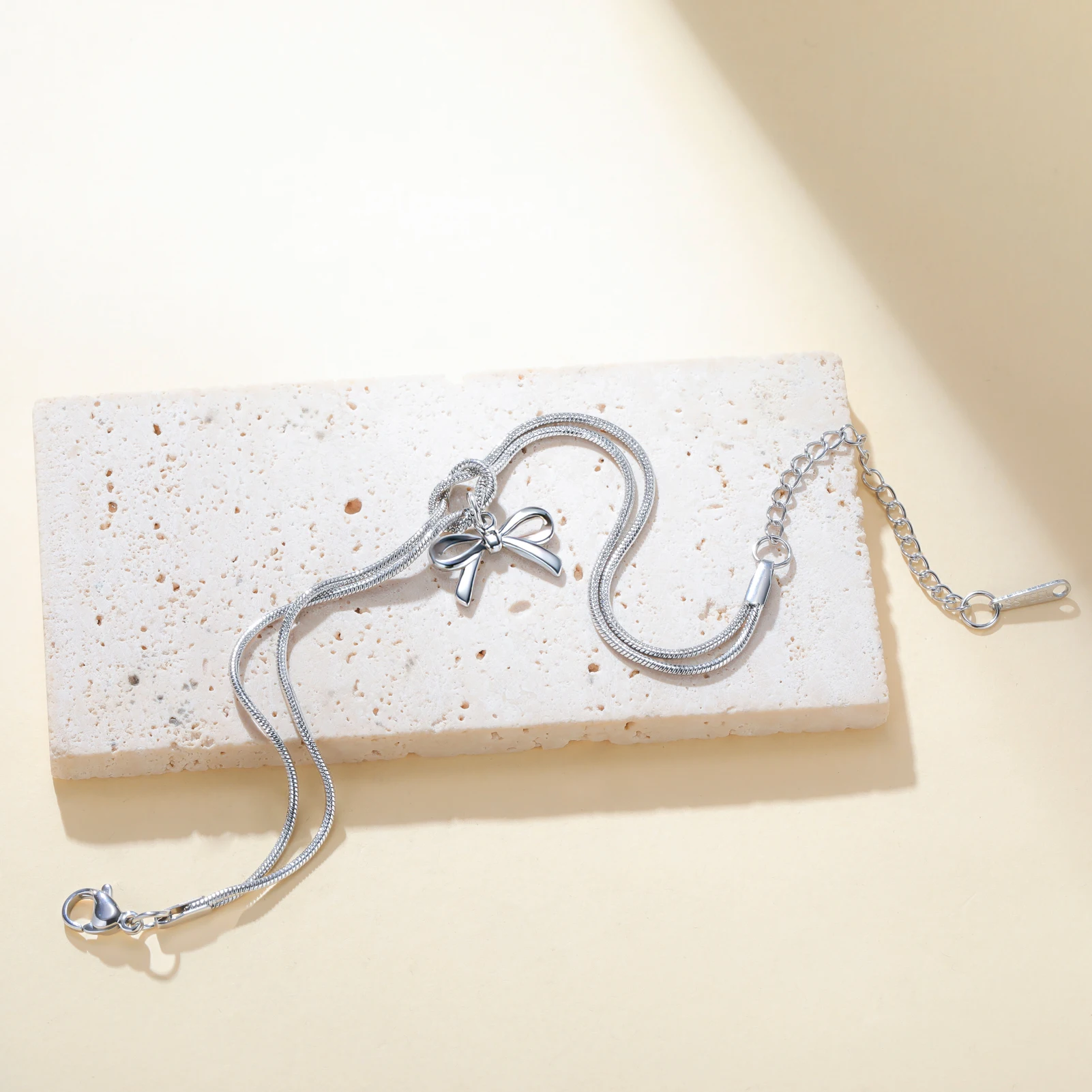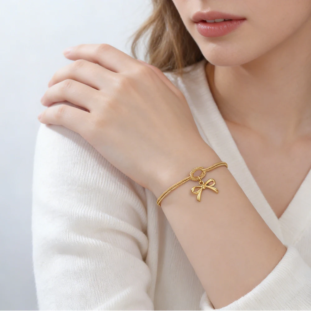 Skyrim Sweet Bowknot Charm Bracelet Women’s Stainless Steel Gold Color Love Knot Snake Chain Bracelets Fashion Jewelry Gift