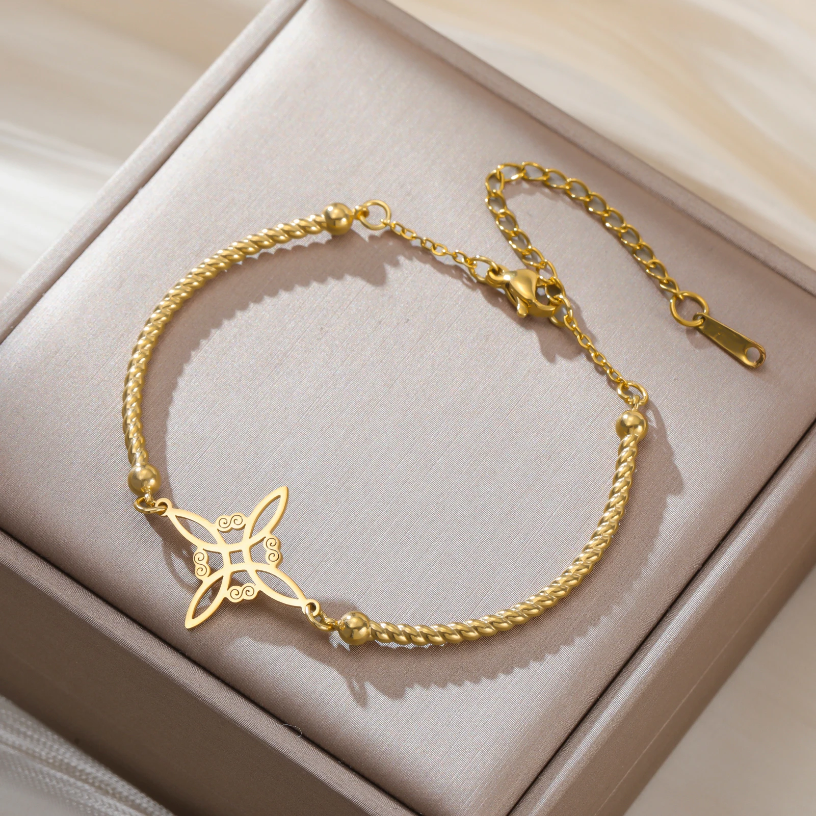 Skyrim Witch Knot Charm Bracelet for Women Stainless Steel Adjustable Bangle Amulet Witchcraft Jewelry Birthday Gift Wholesale