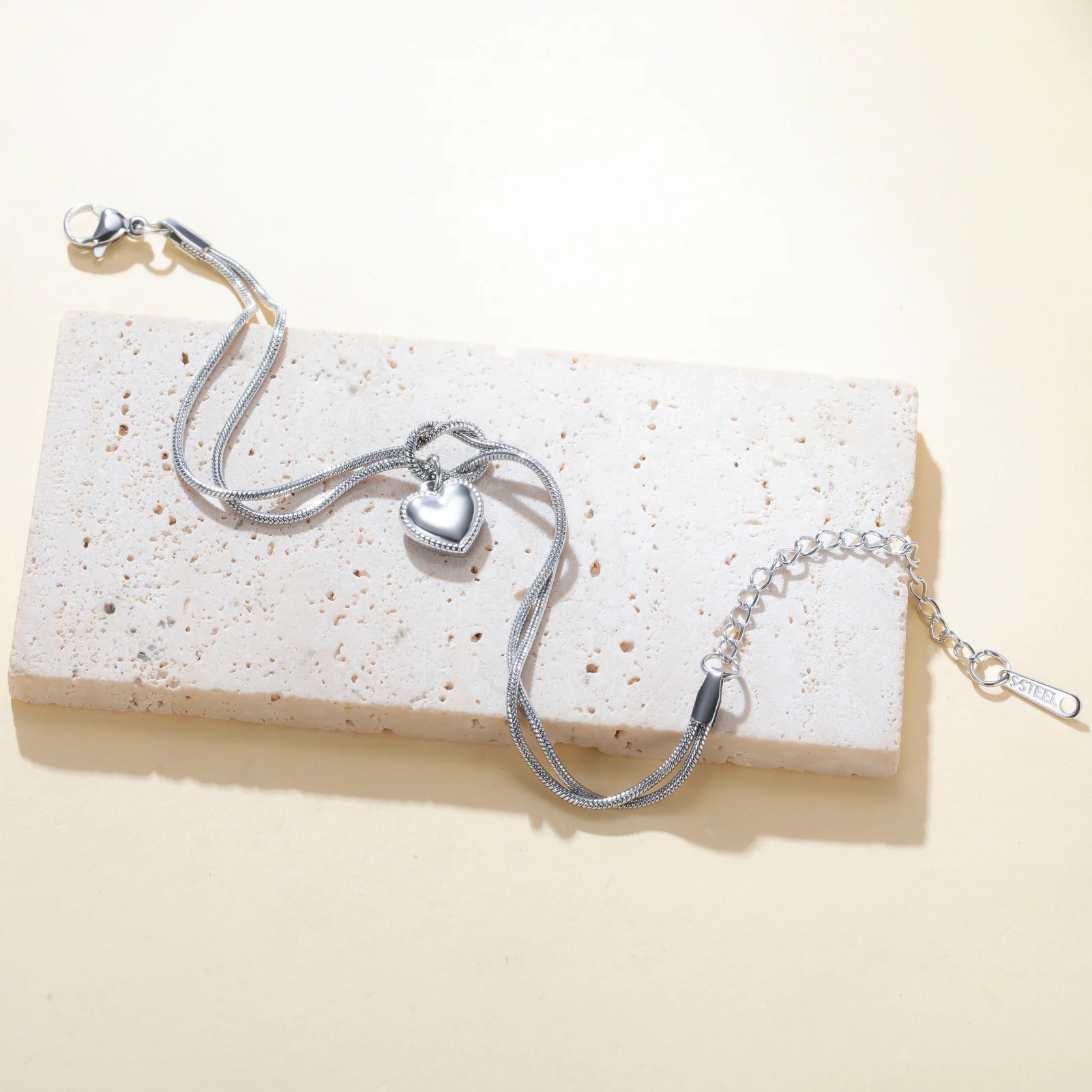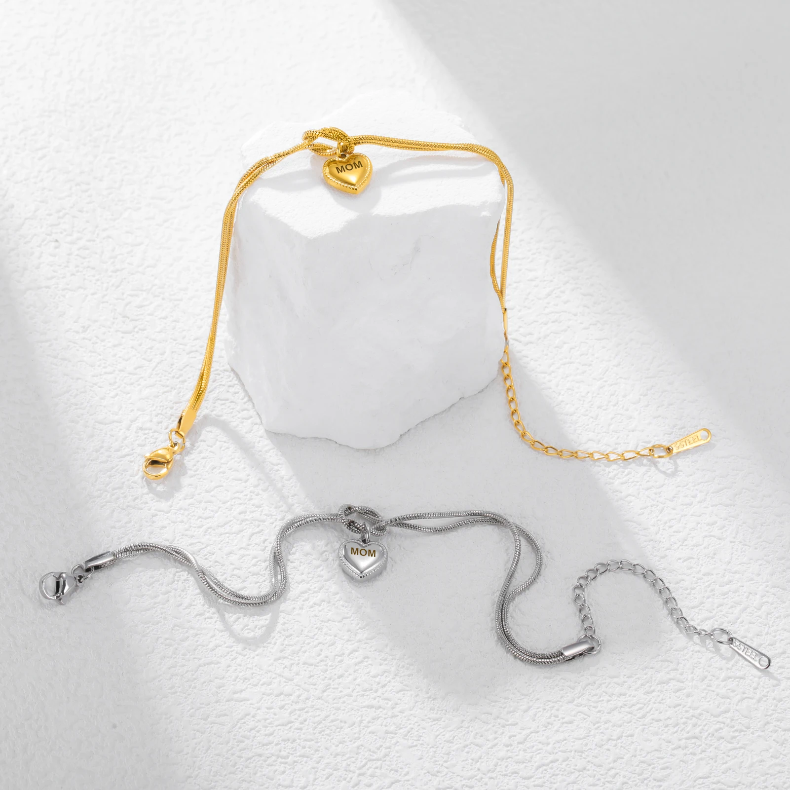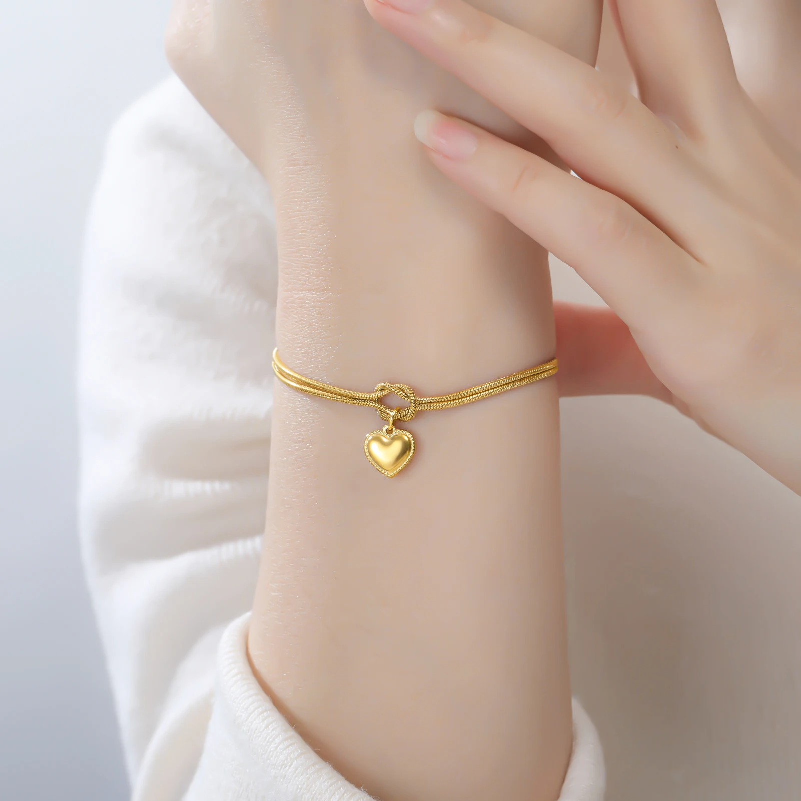 Skyrim Women’s Heart Charm Bracelet Stainless Steel Gold Color Love Knot Snake Chain Bracelets Fashion Jewelry Birthday Gift