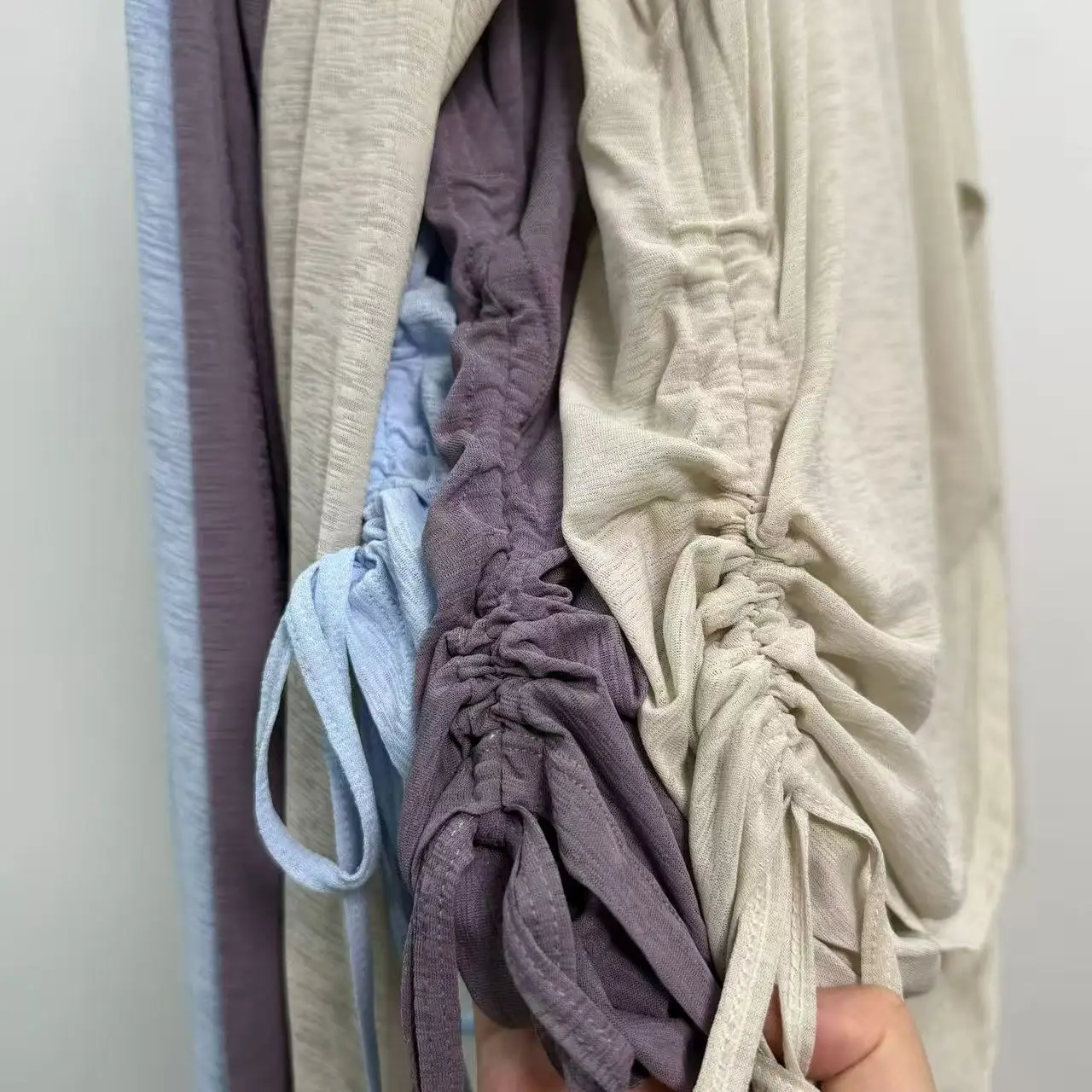 Slub Yarn Sports T-shirt Gym Fitness Drawstring Pleated Blouse Training Pilates Professional Fitness Clothing Yoga Long Sleeves