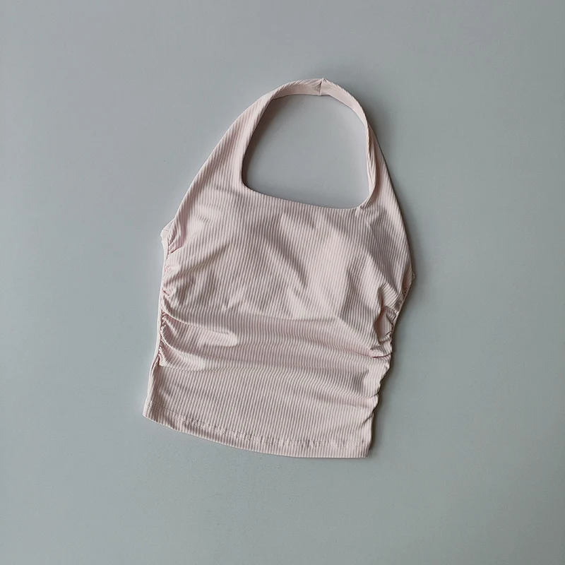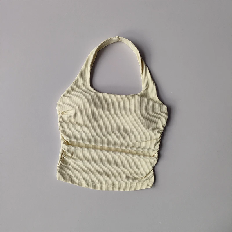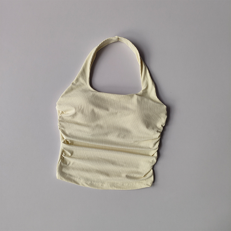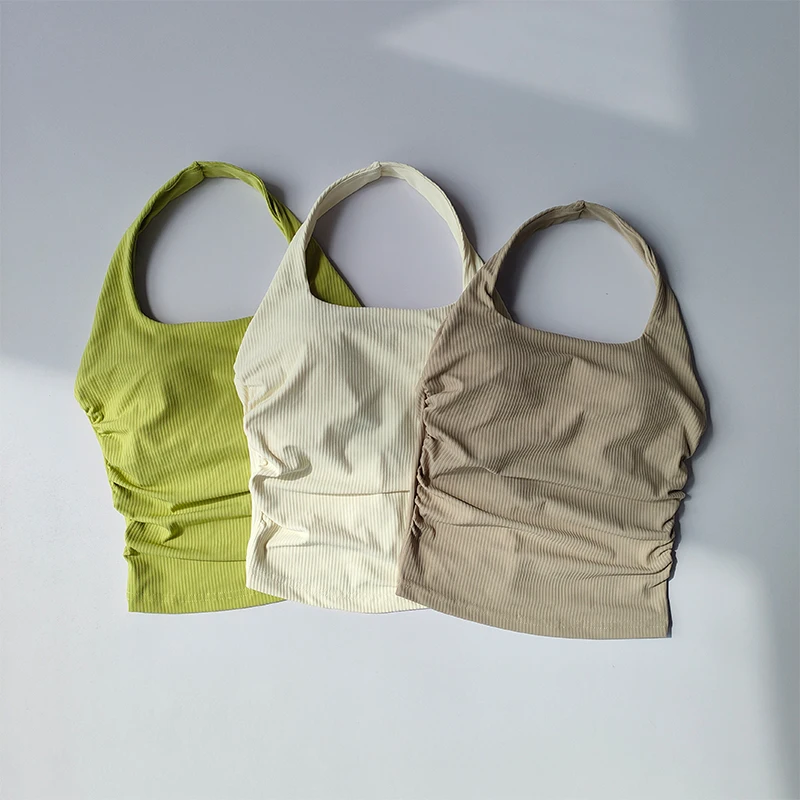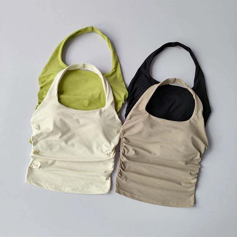 Small Suspender Halter Neck Vest Women’s Gathered Beautiful Back Sports Lingerie Integrated Yoga Clothing Top with Chest Pad