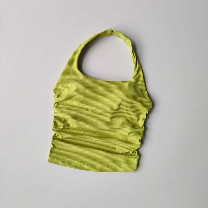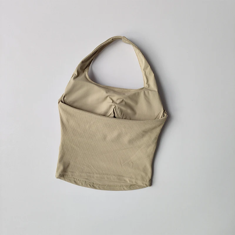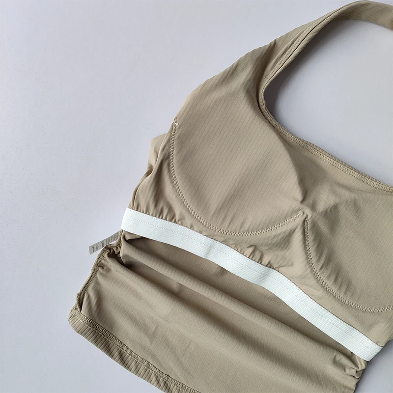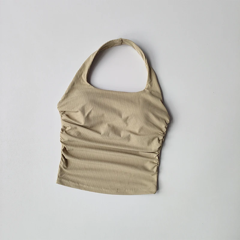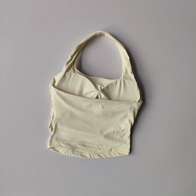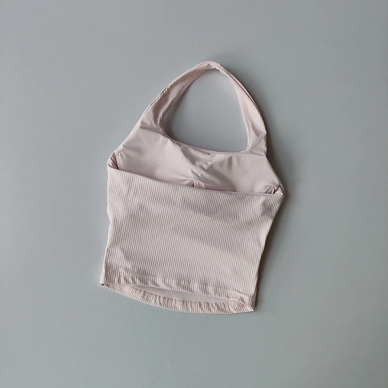 Small Suspender Halter Neck Vest Women’s Gathered Beautiful Back Sports Lingerie Integrated Yoga Clothing Top with Chest Pad
