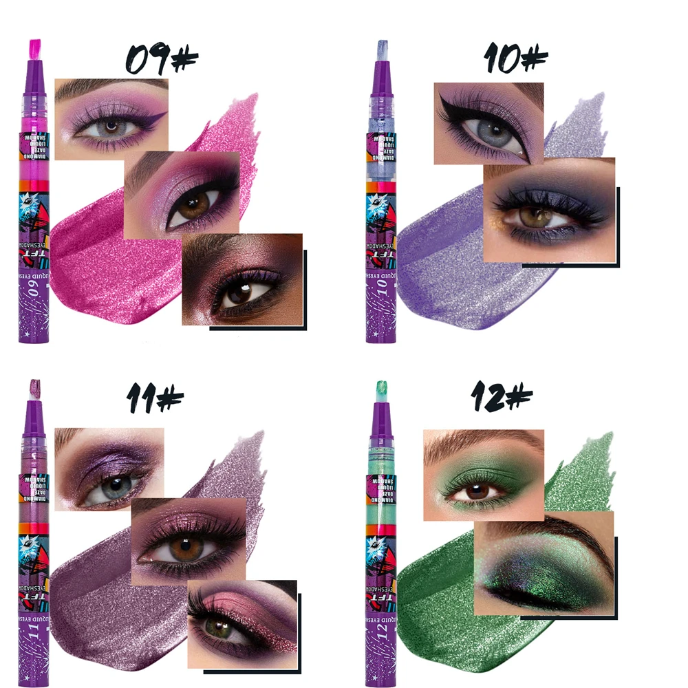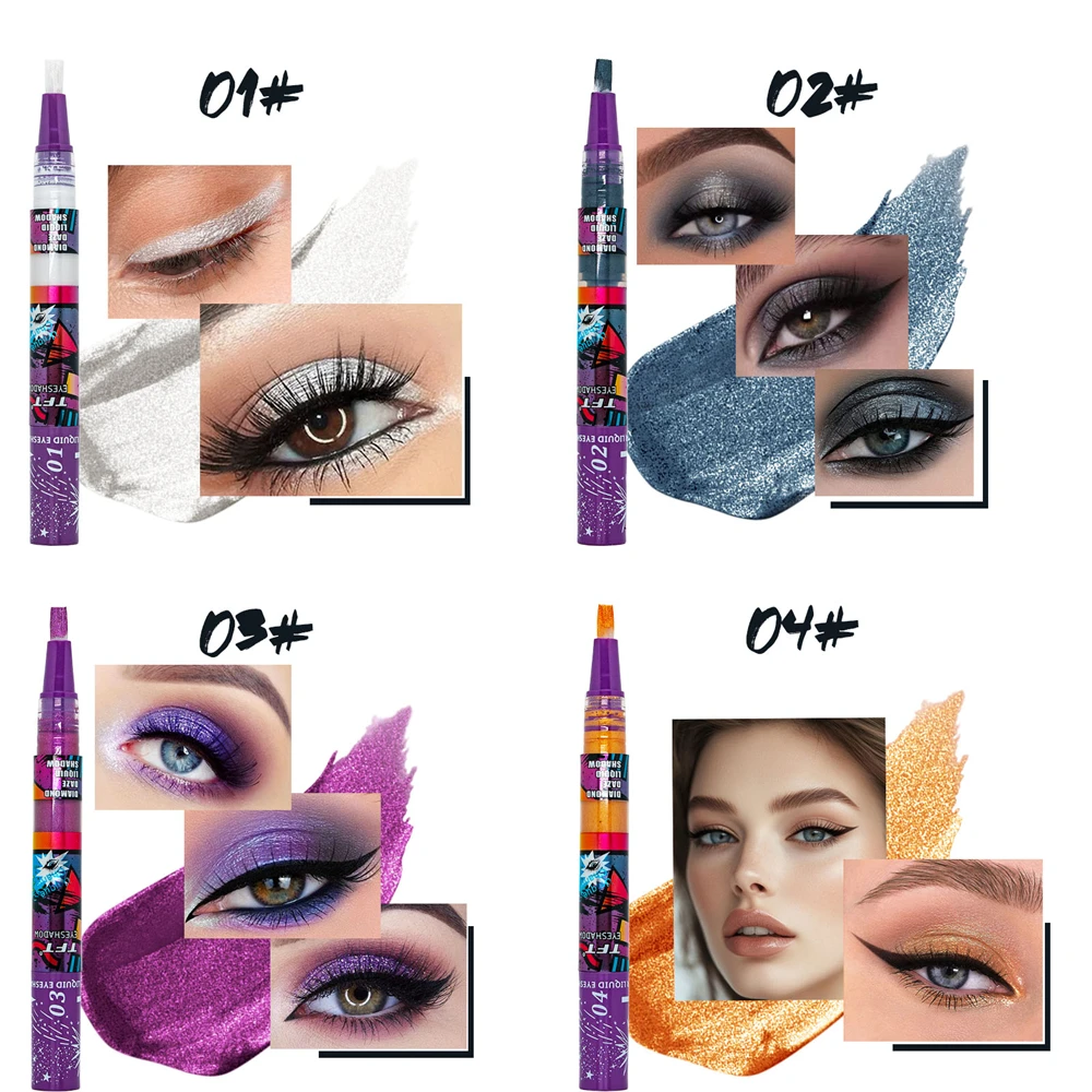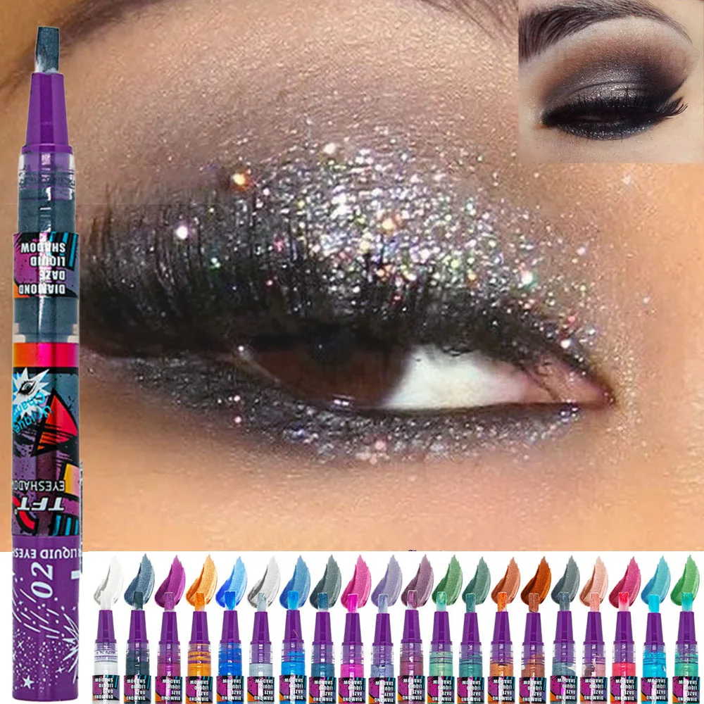 Smoked Diamond Glowing Glitter Liquid Eyeshadow Highlighter Pen Resists Smudging Sparkling Sequin Brighten Gloss Eye Makeup