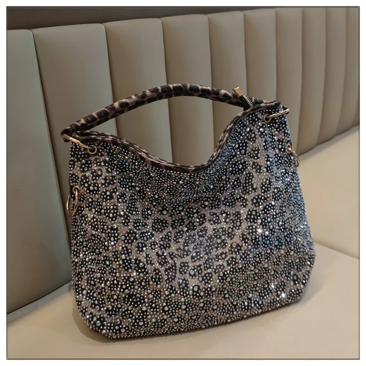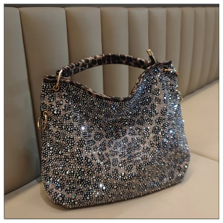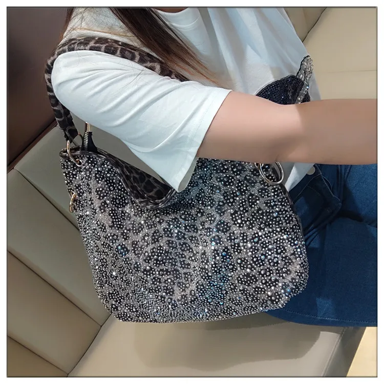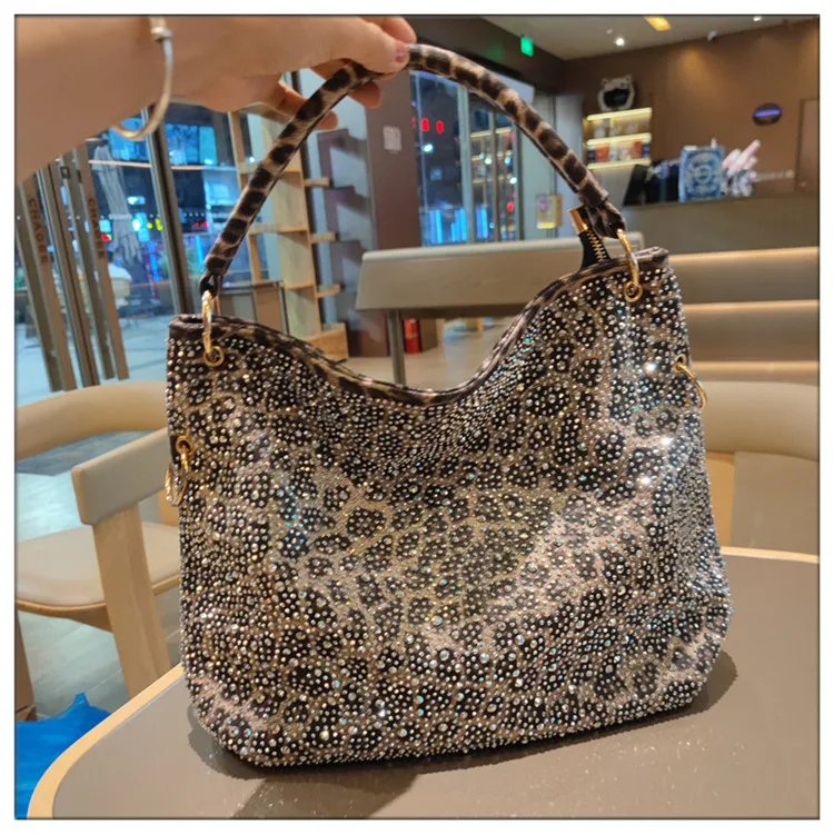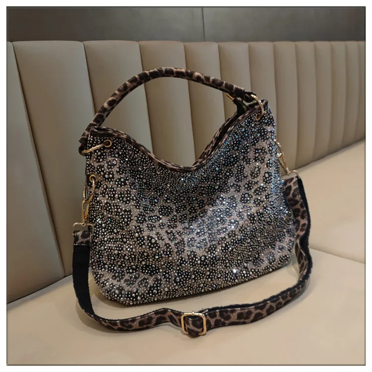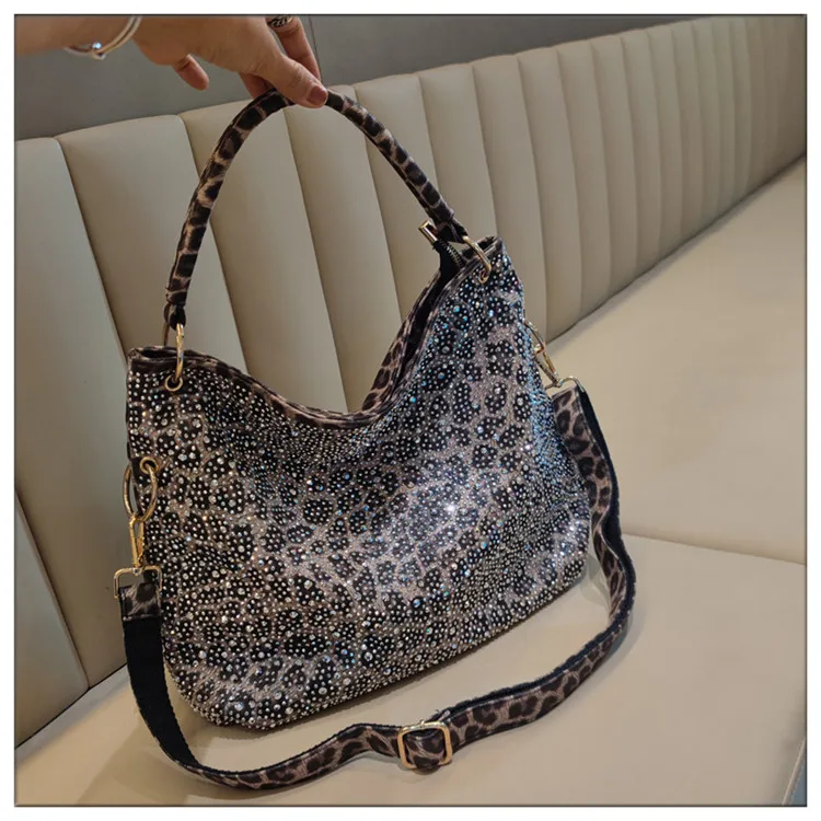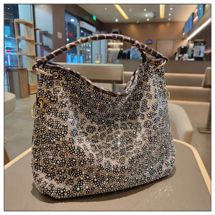 Soft Leather Women Handbags 2024 New Casual Large Capacity Diamonds Tote Bag Popular Leopard Print Single Shoulder Commuter Bags