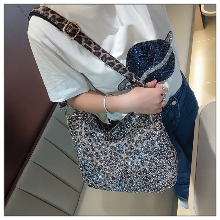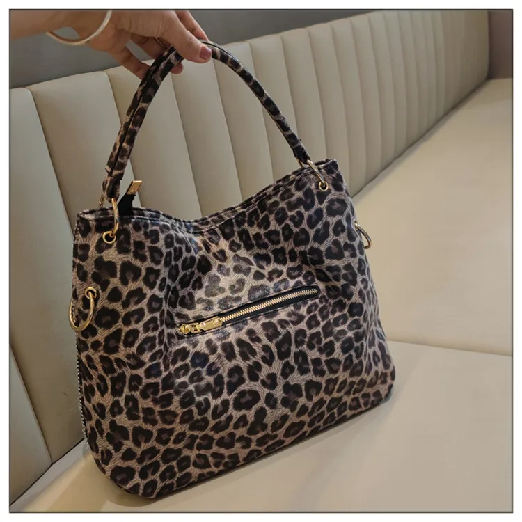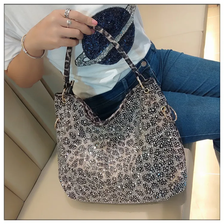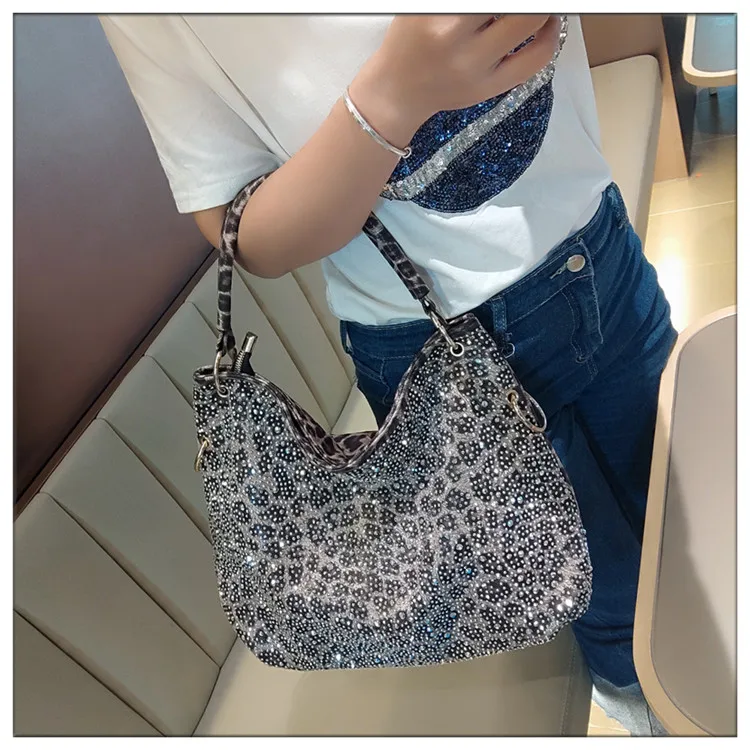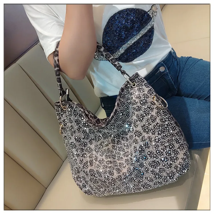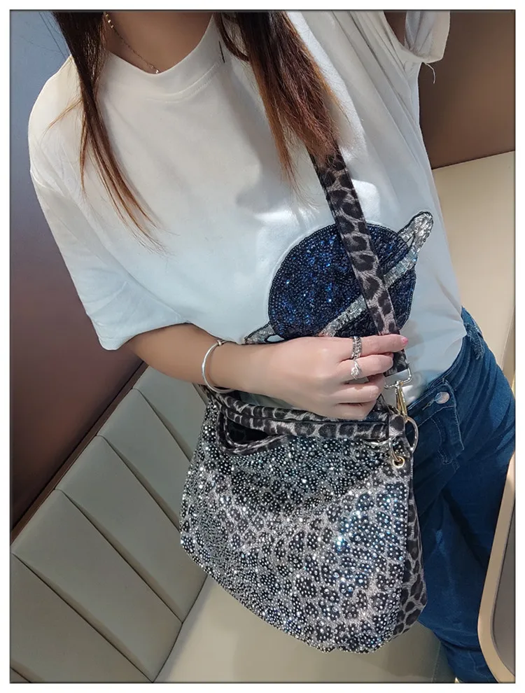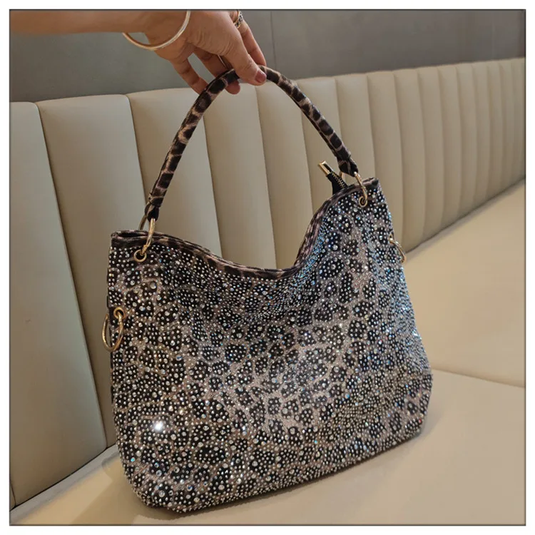 Soft Leather Women Handbags 2024 New Casual Large Capacity Diamonds Tote Bag Popular Leopard Print Single Shoulder Commuter Bags