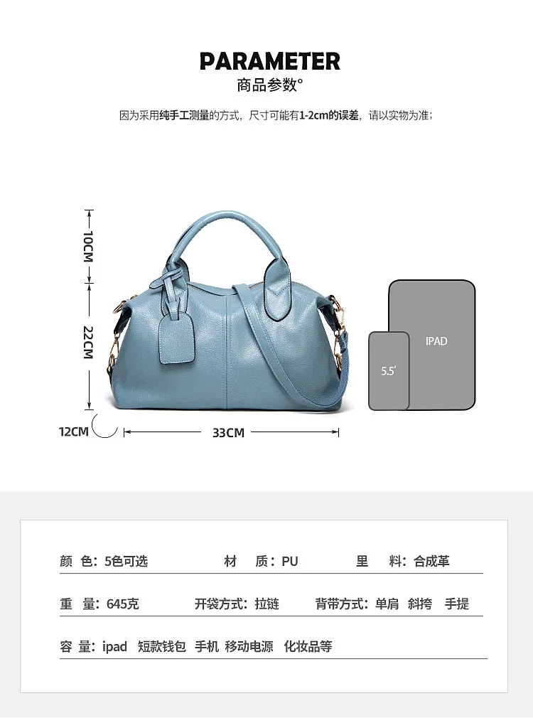 Soft Leather Women’s Bag Fashion Boston Bag Ladies Large capacity shoulder crossbody Tote Bag for Commuter shopping