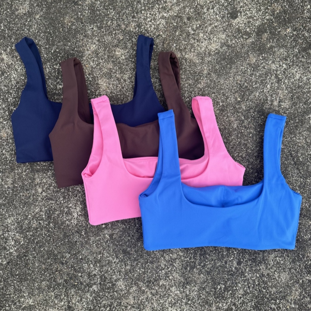 Solid Color Butter Square collar Soft Gym Yoga Underwear Women Hollow back shoulder strap Fitness Tight sport Bra Top With pad
