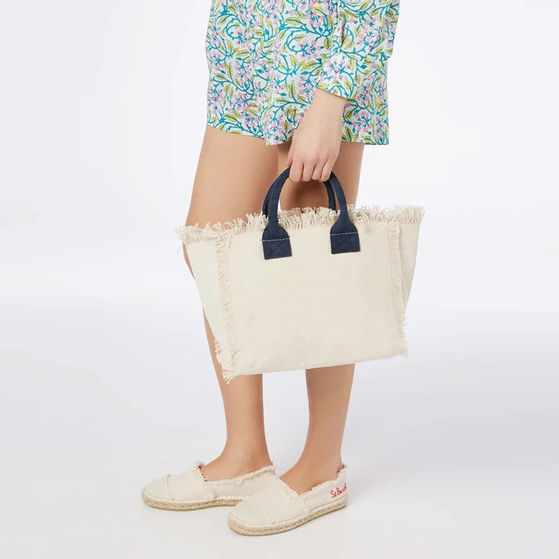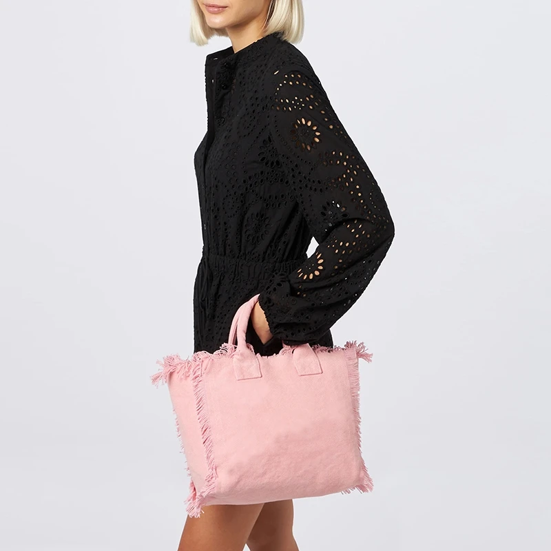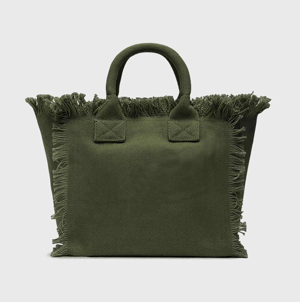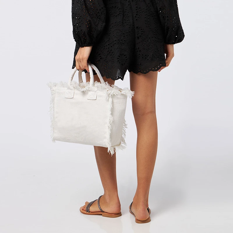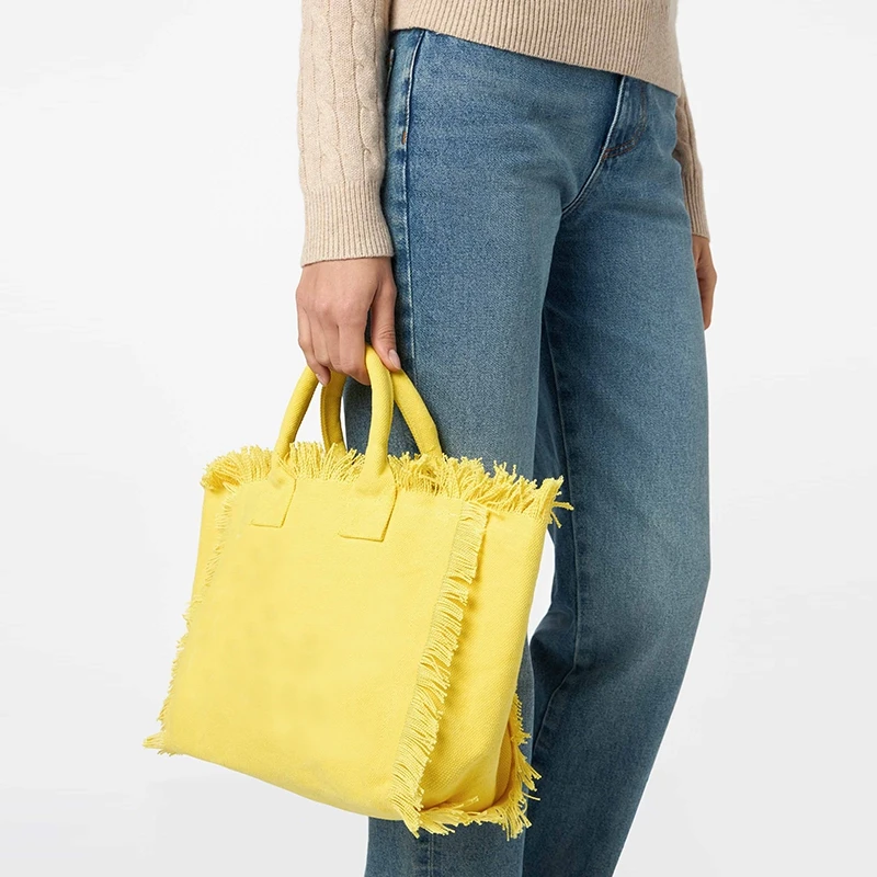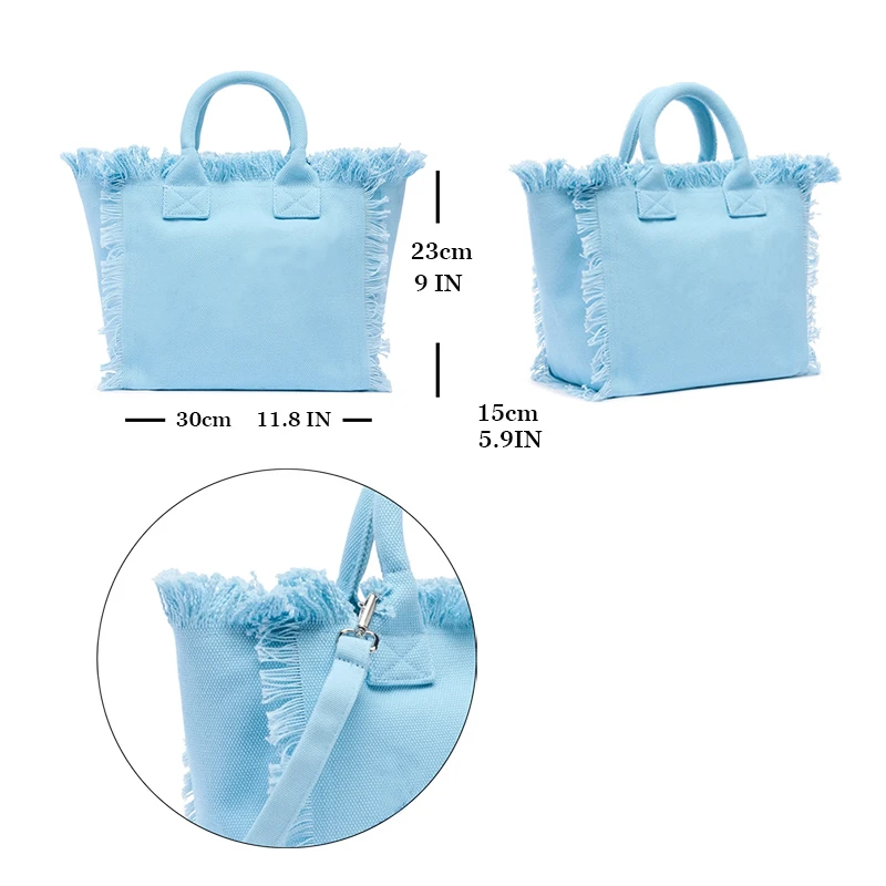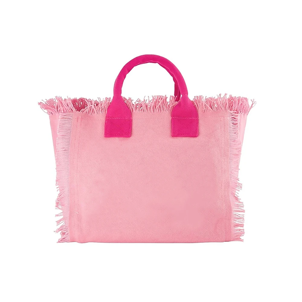 Solid Color Simple Fashion Design Women’s Tassels Handbag Large Capacity Canvas Bag Beach Bag Luxury Brand Medium Size Tote Bag