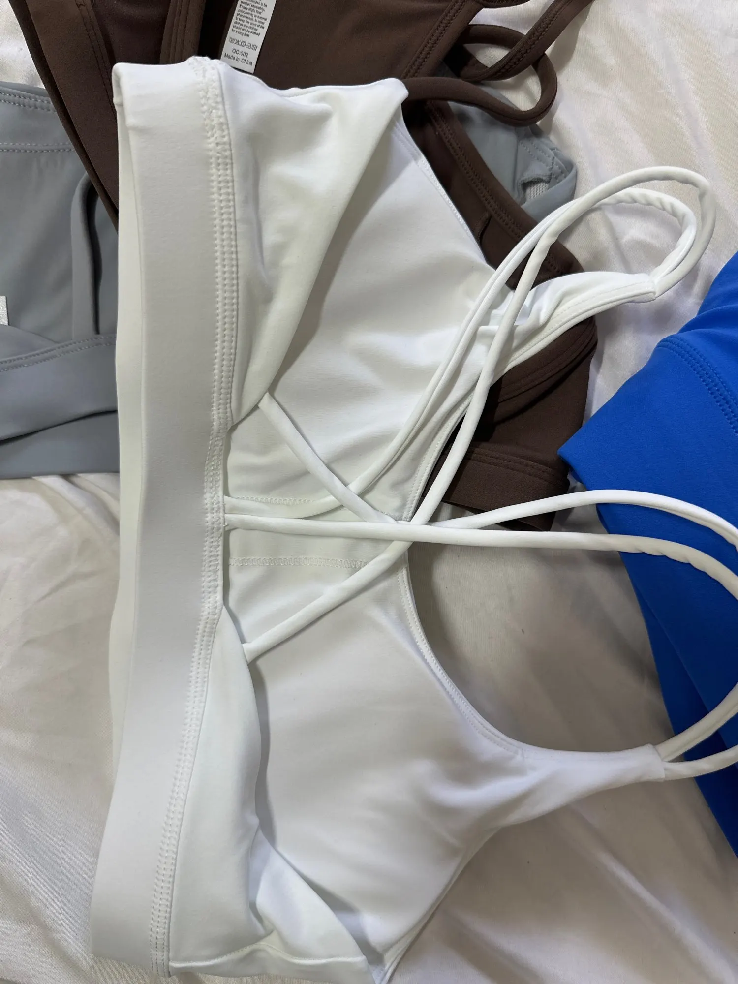 beautiful top in a soft flexible fabric! fits well and the straps don't cut into your skin because the fabric is so soft! the pads can be removed if you wish.🫶🏼🤍