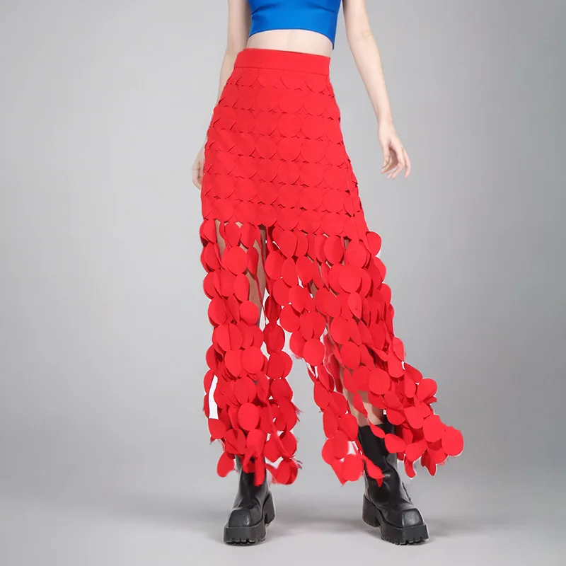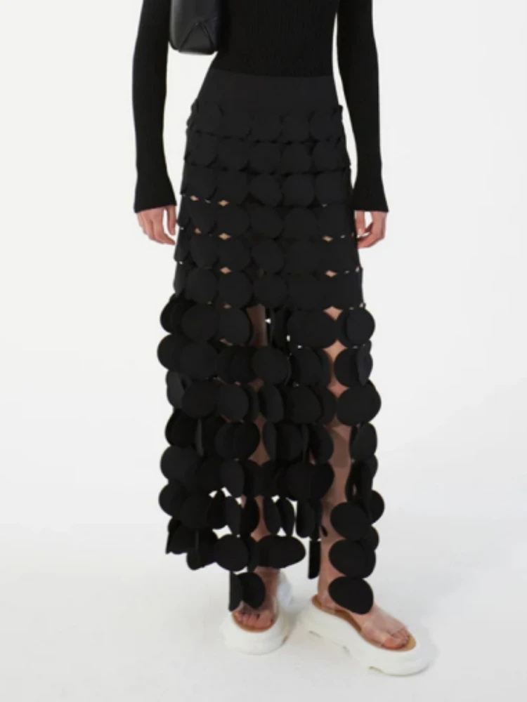 Solid Elegant Skirt For Women High Waist Patchwork Zipper Irregular Hollow Out Minimalist A Line Skirts Female Fashion New