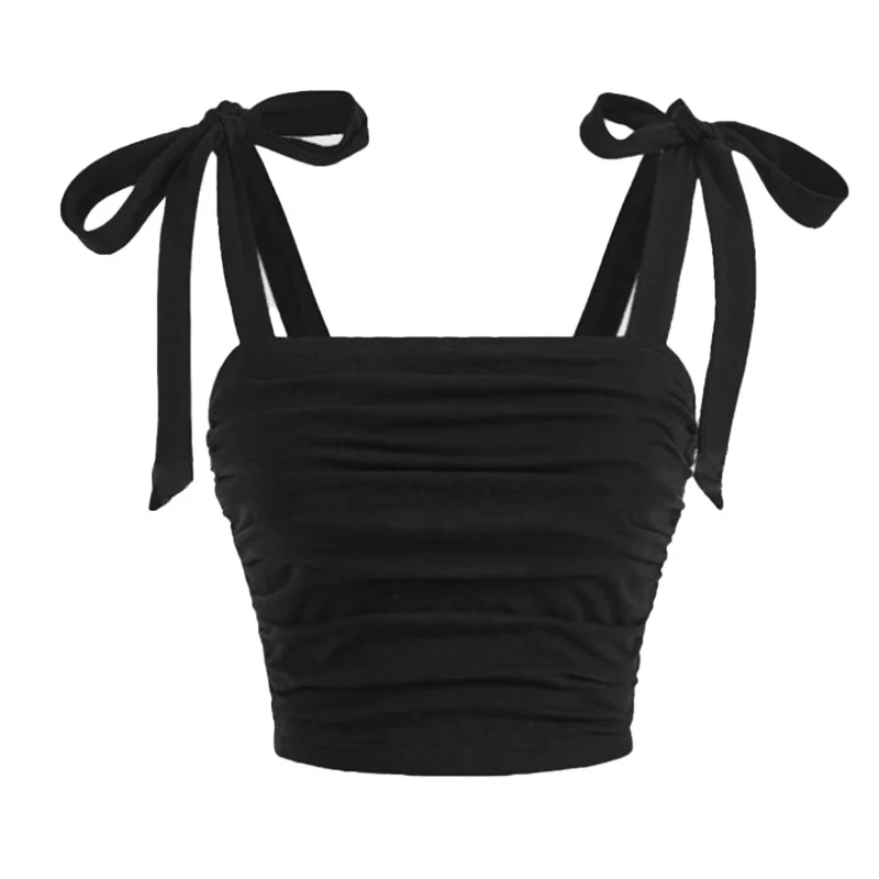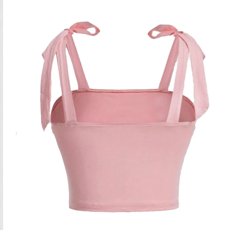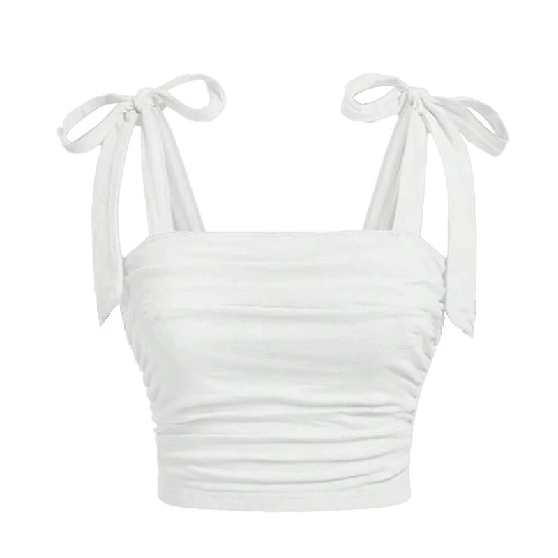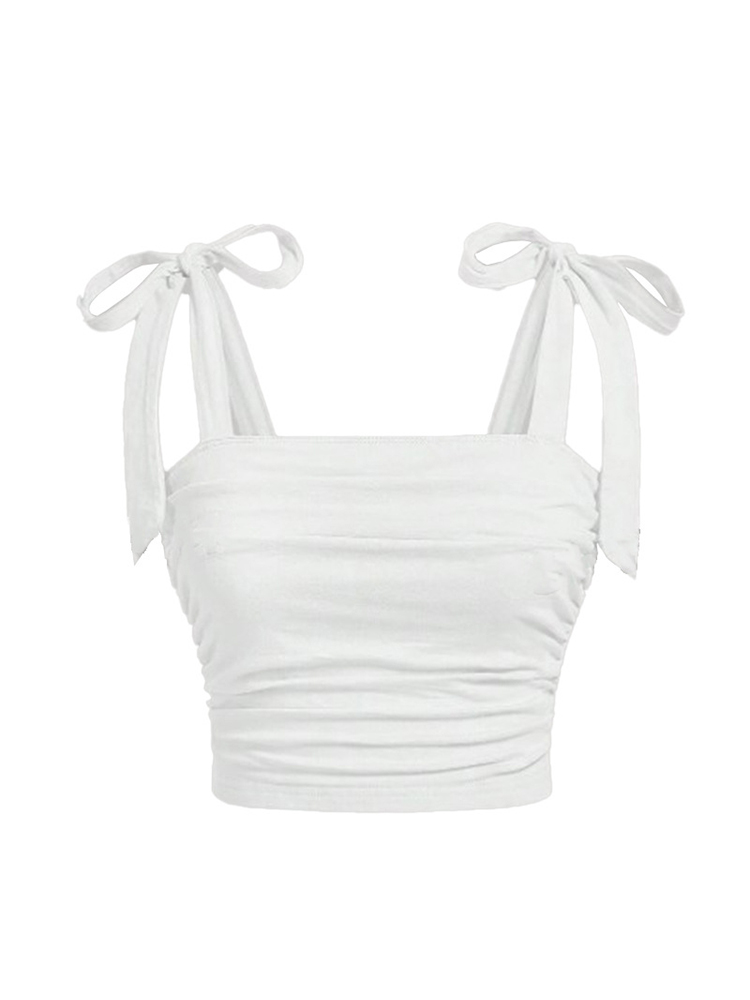Solid Tie Shoulder Ruched Wide Strap Slim Fit Crop Top for Women Summer 2025 Y2K Clothes Pink Backless Cami Top Streetwear