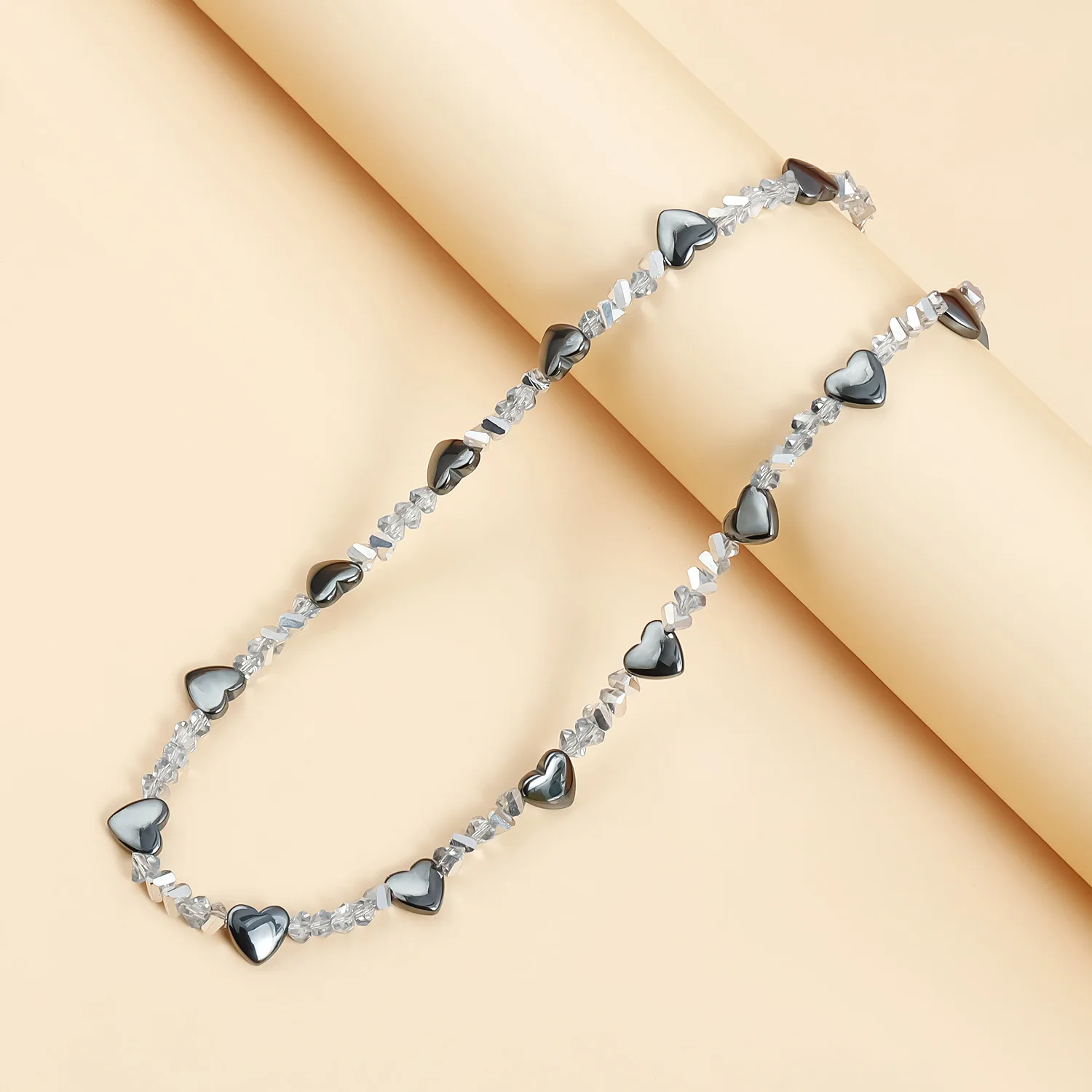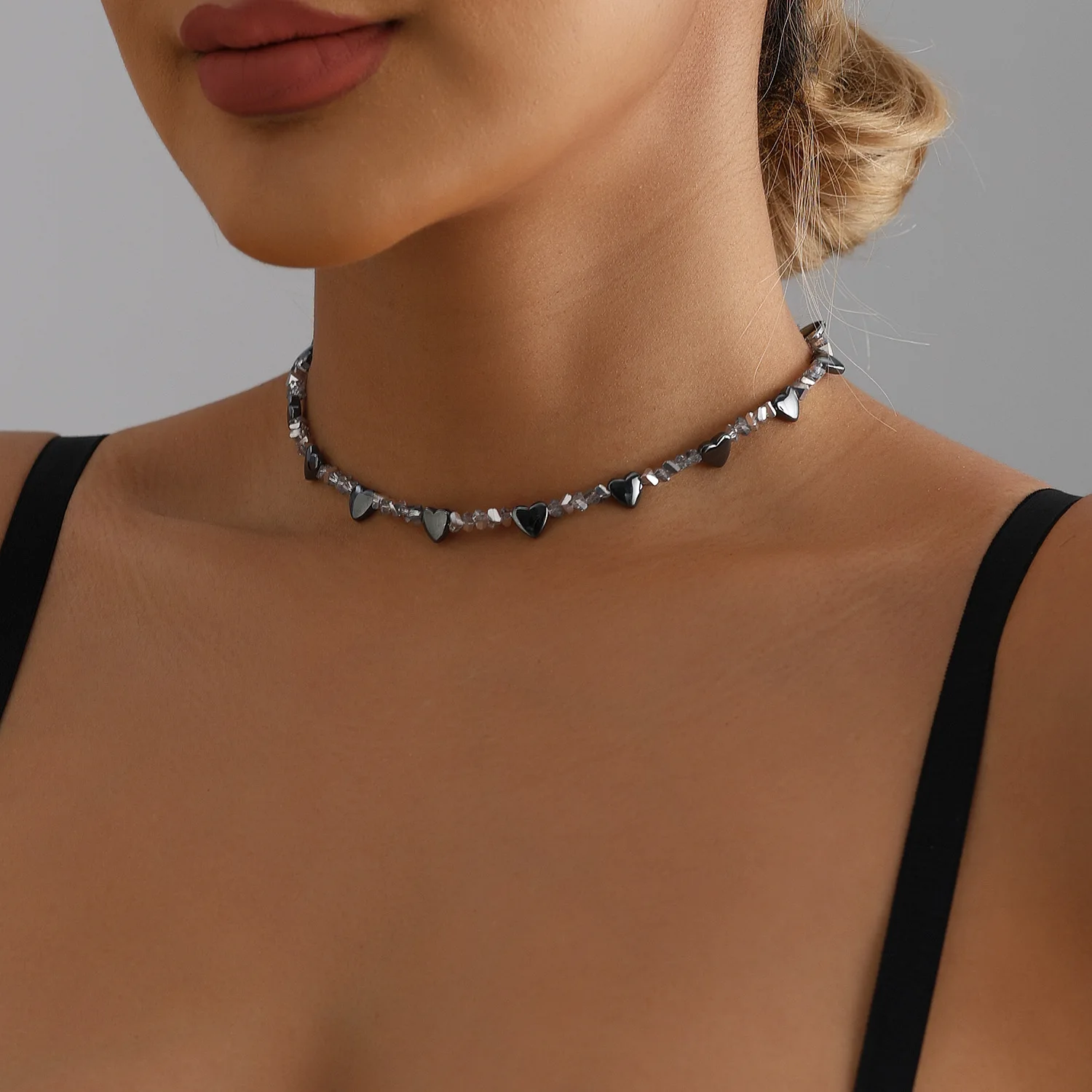 Sparkle Irregular Glass Crystal Necklace for Women Girls Heart Obsidian Pendant Short Choker Trendy Elegant Jewelry Accessories