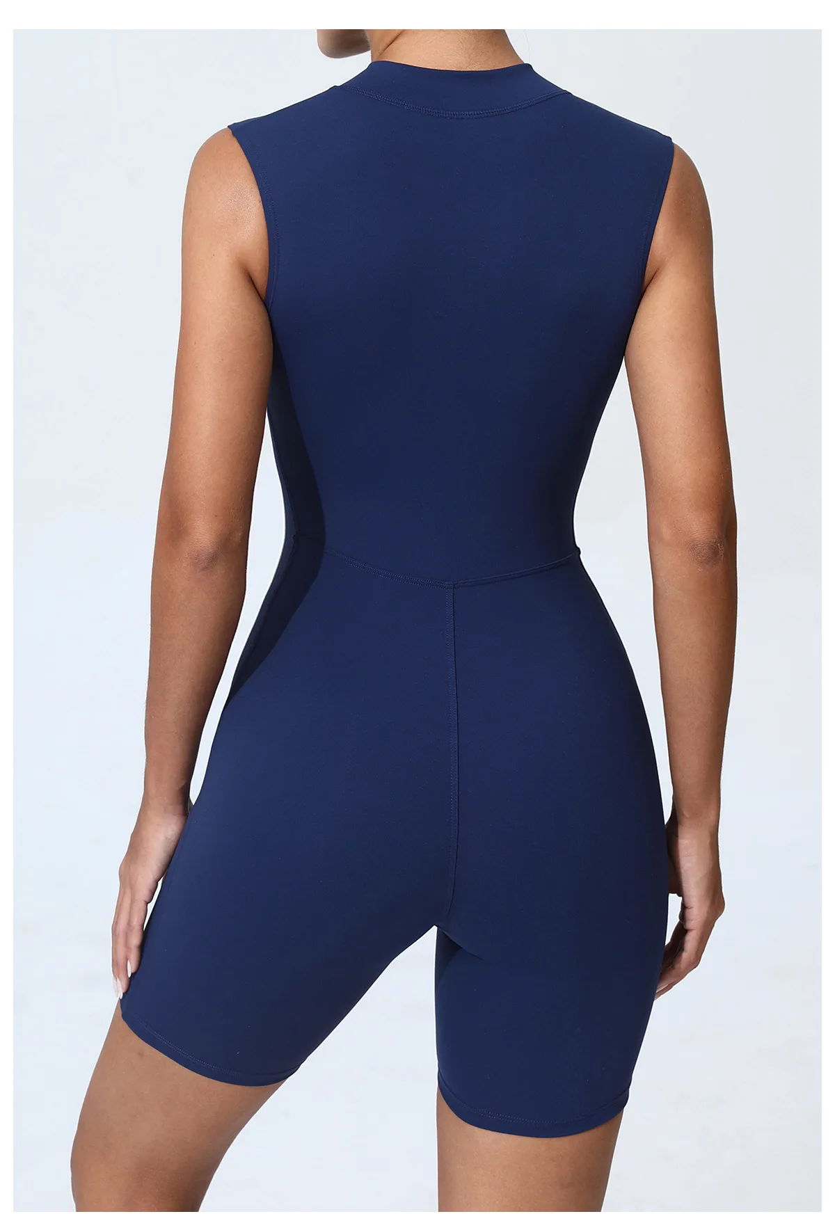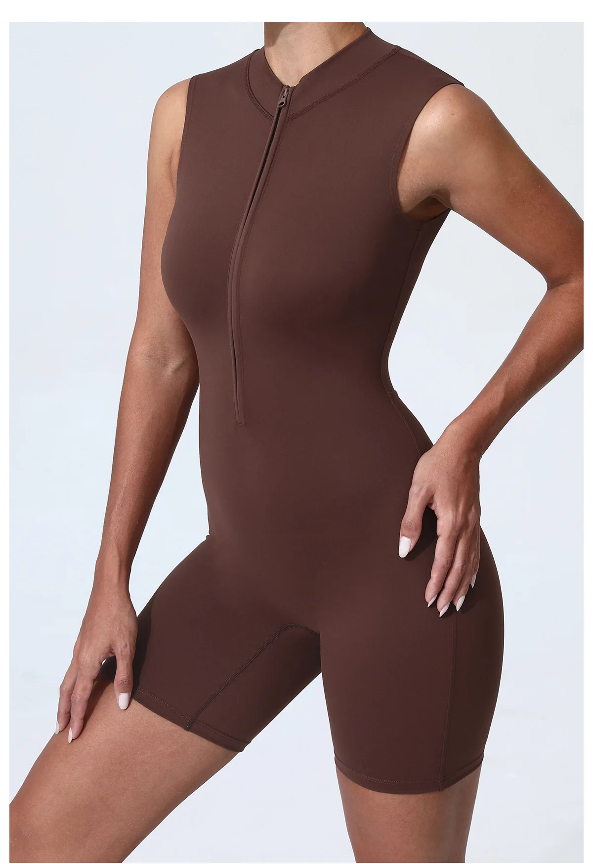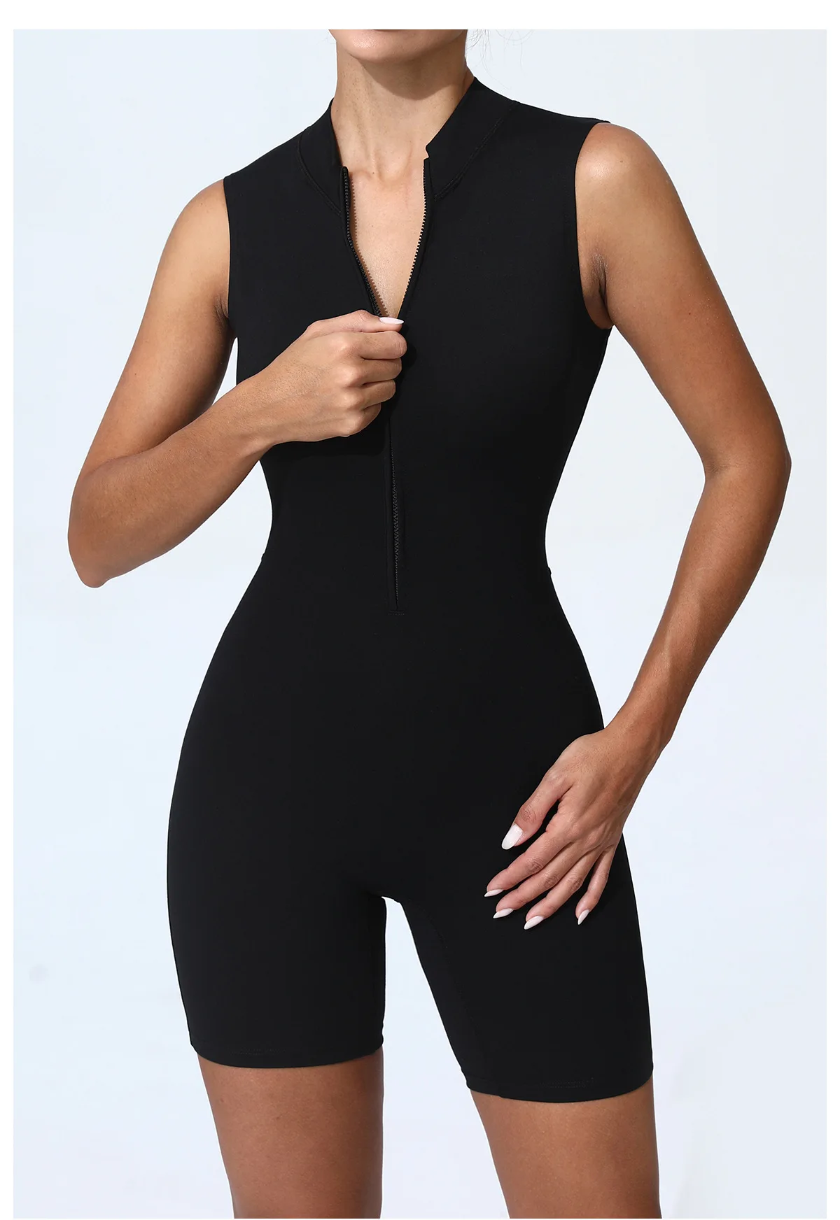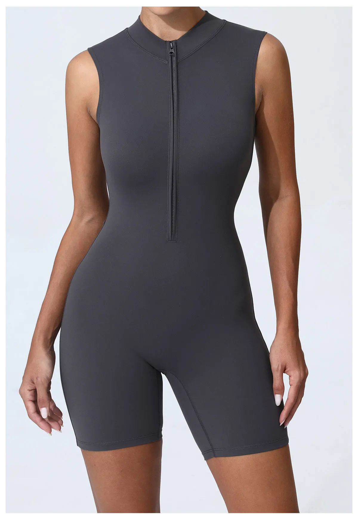 Sport Bodysuit Half Zipper One-Piece Suit Women Tracksuit Workout Jumpsuit Sportswear Gym Set Sleeveless Yoga Fitness Rompers