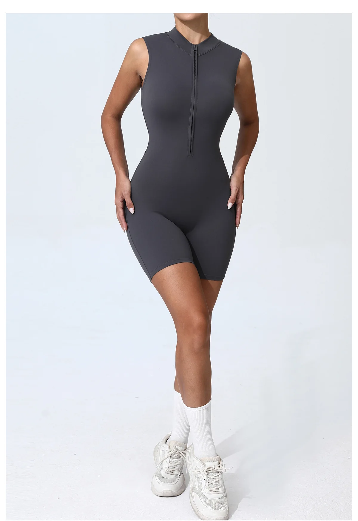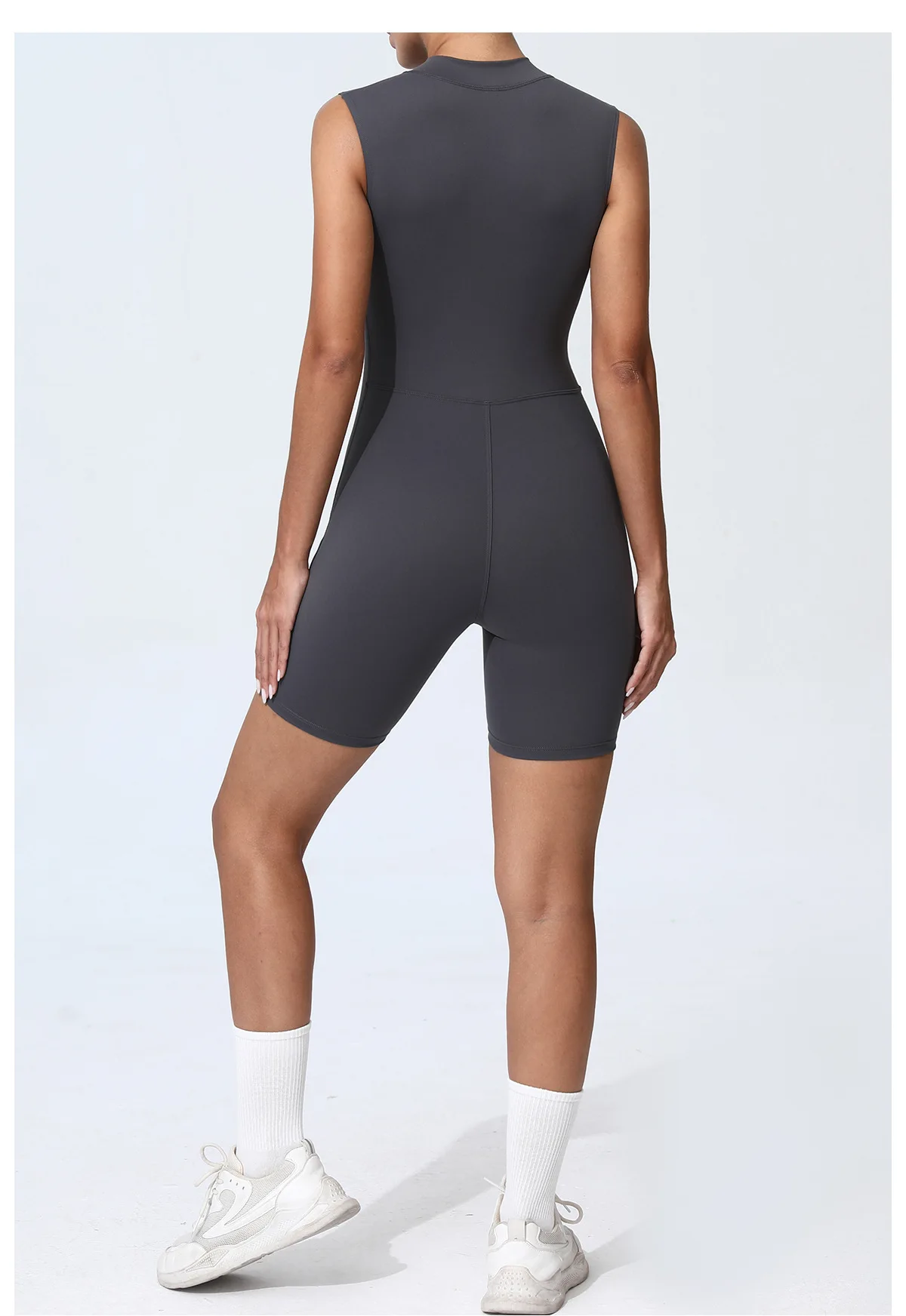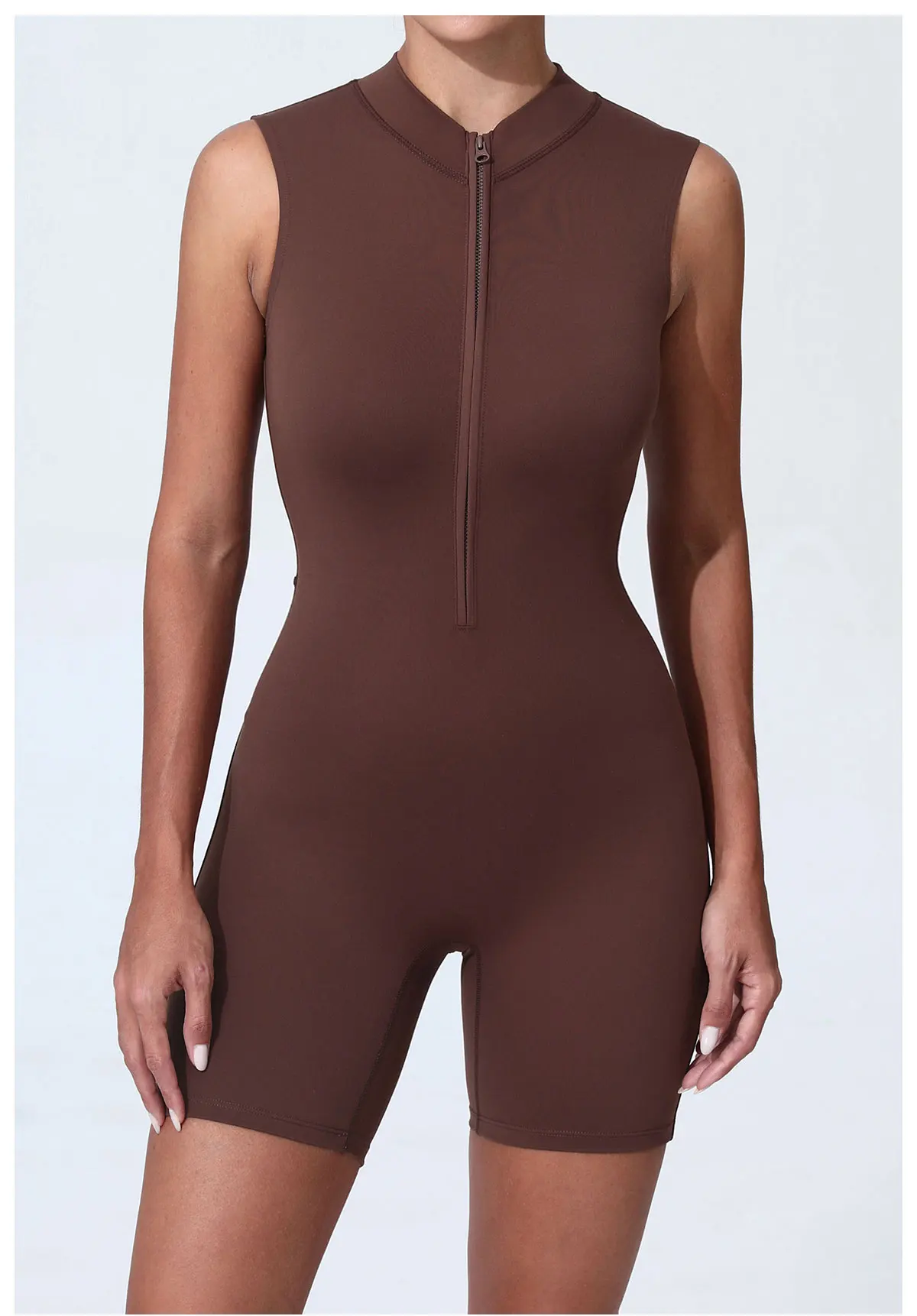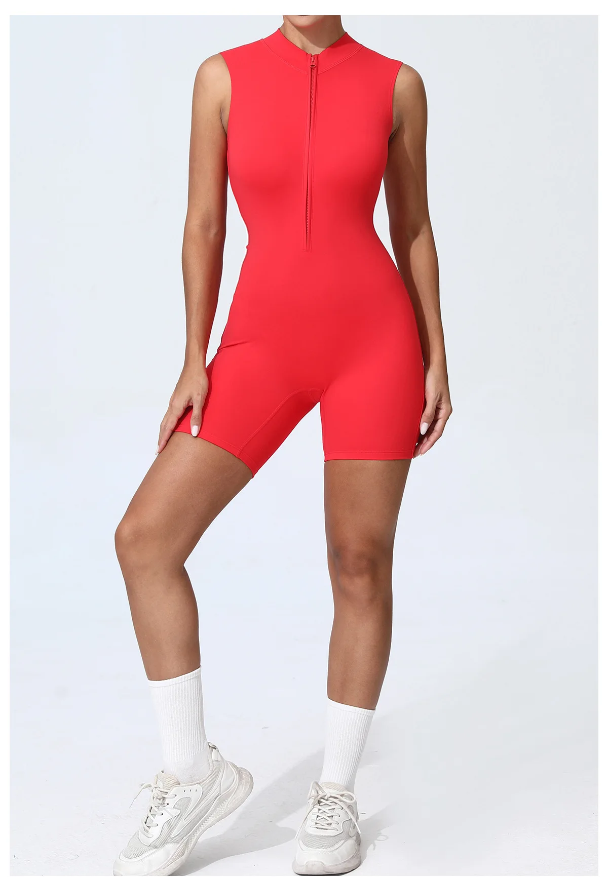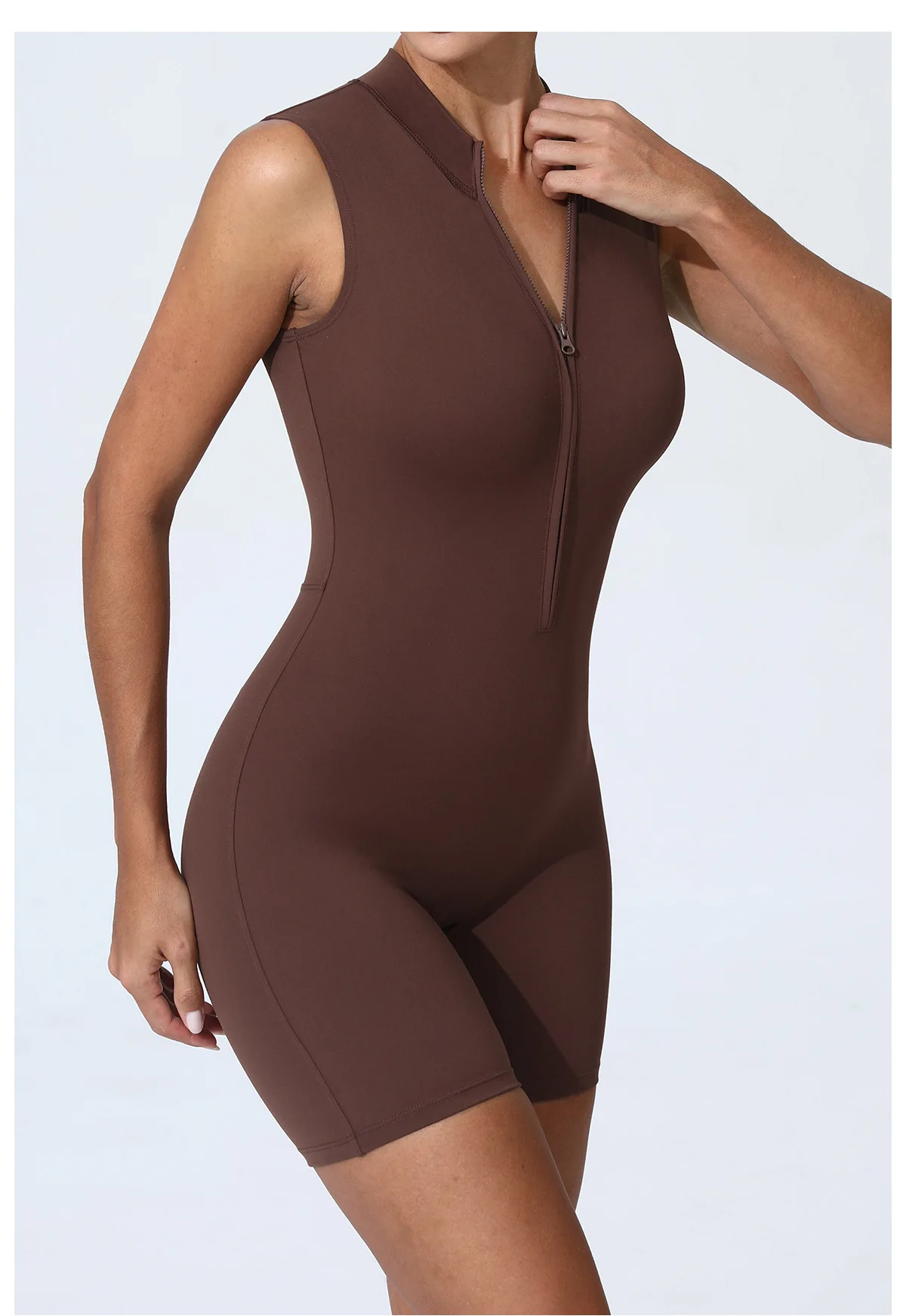 Sport Bodysuit Half Zipper One-Piece Suit Women Tracksuit Workout Jumpsuit Sportswear Gym Set Sleeveless Yoga Fitness Rompers
