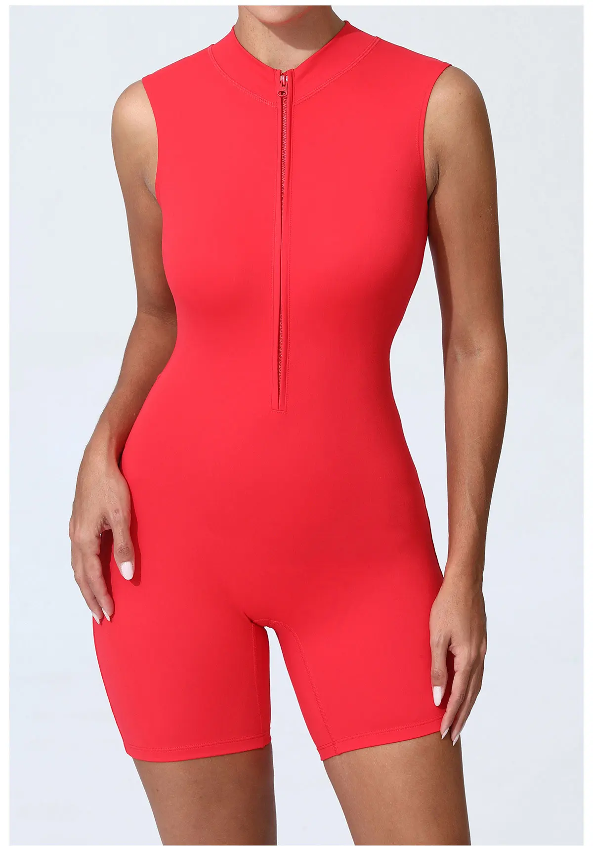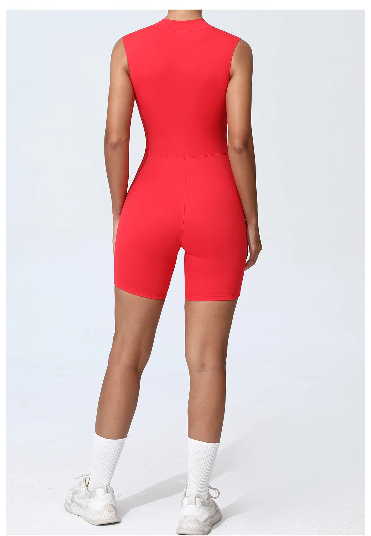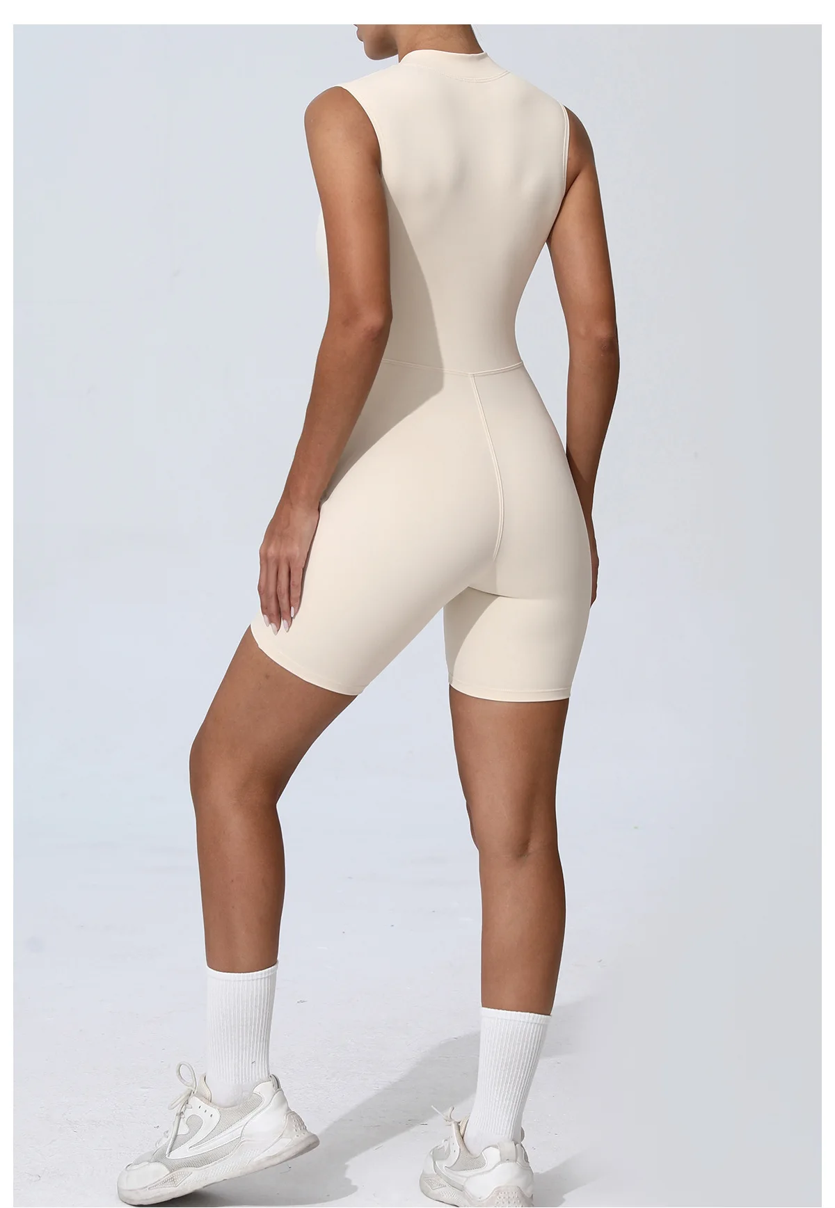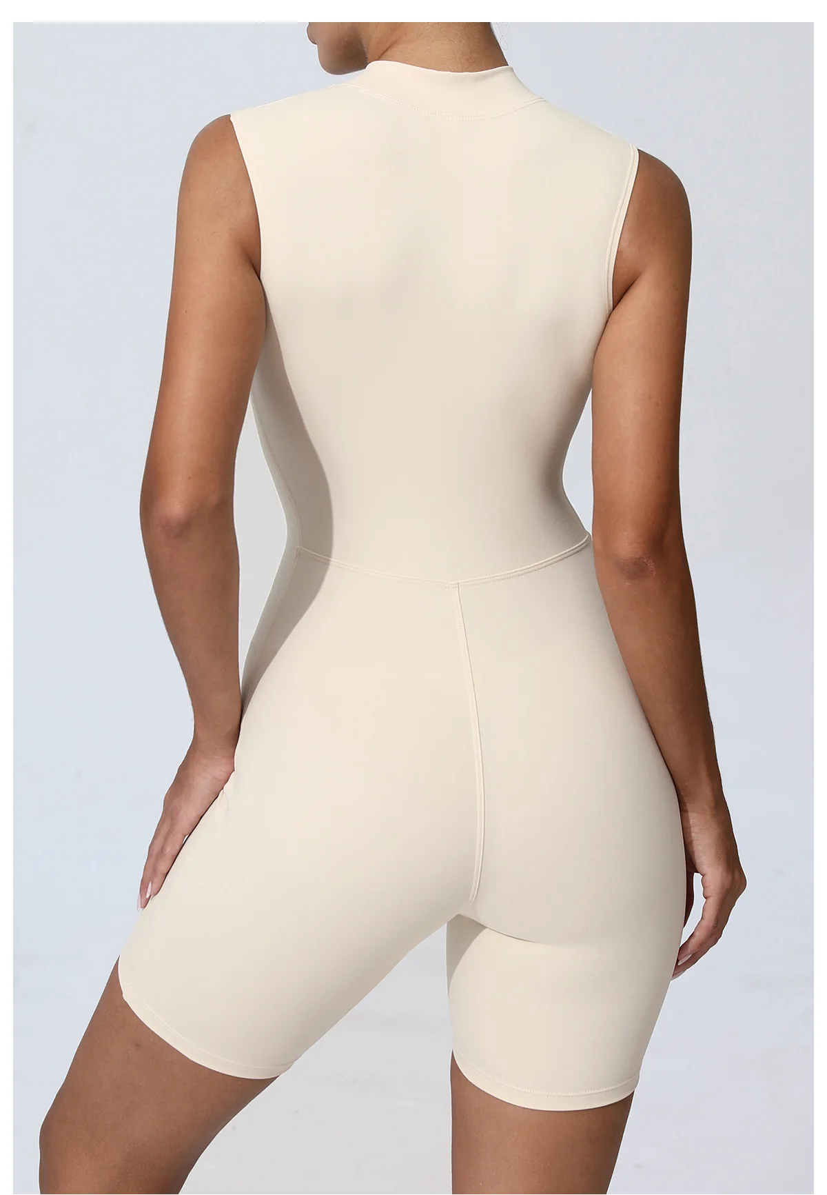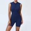 Sport Bodysuit Half Zipper One-Piece Suit Women Tracksuit Workout Jumpsuit Sportswear Gym Set Sleeveless Yoga Fitness Rompers