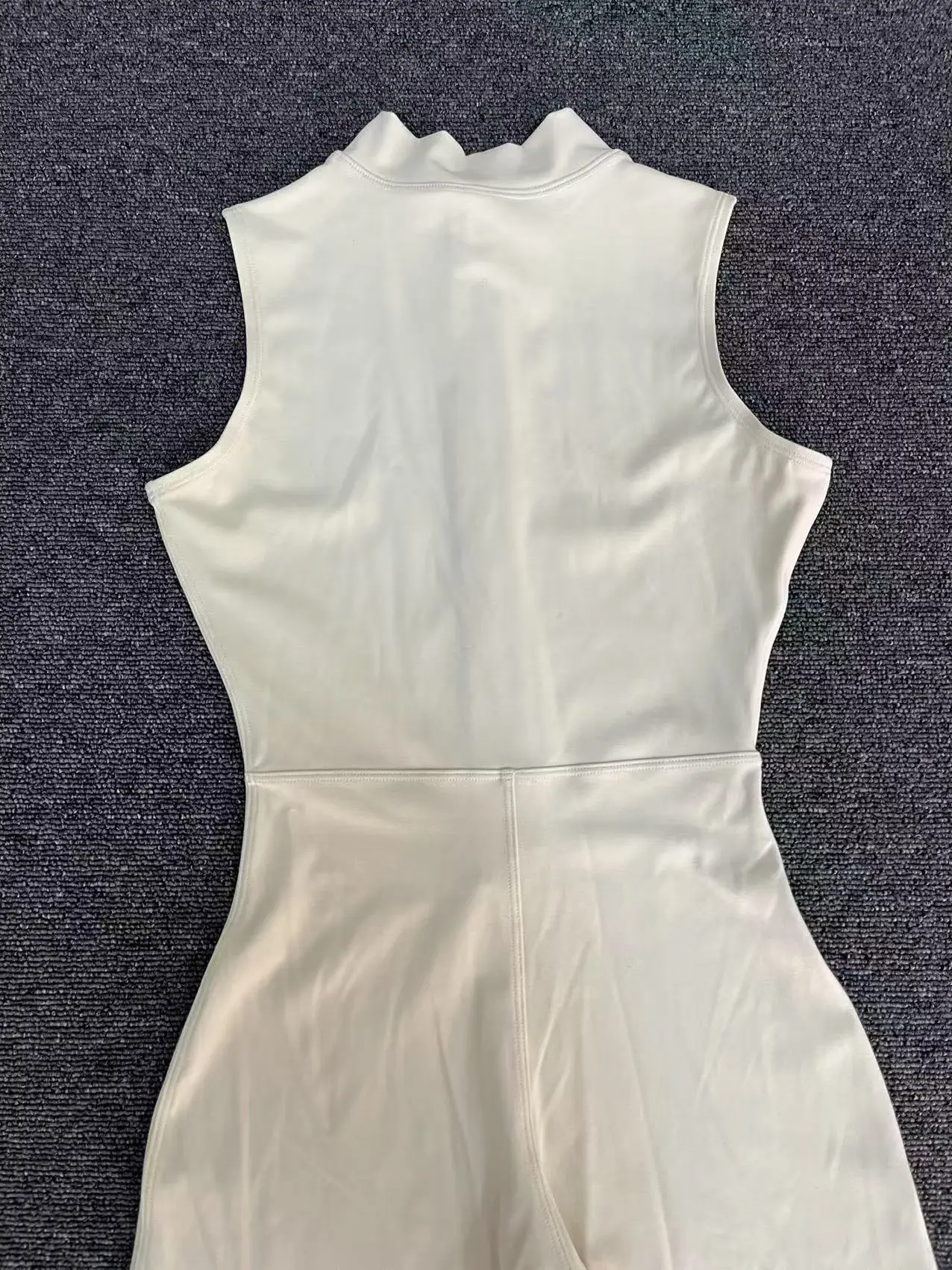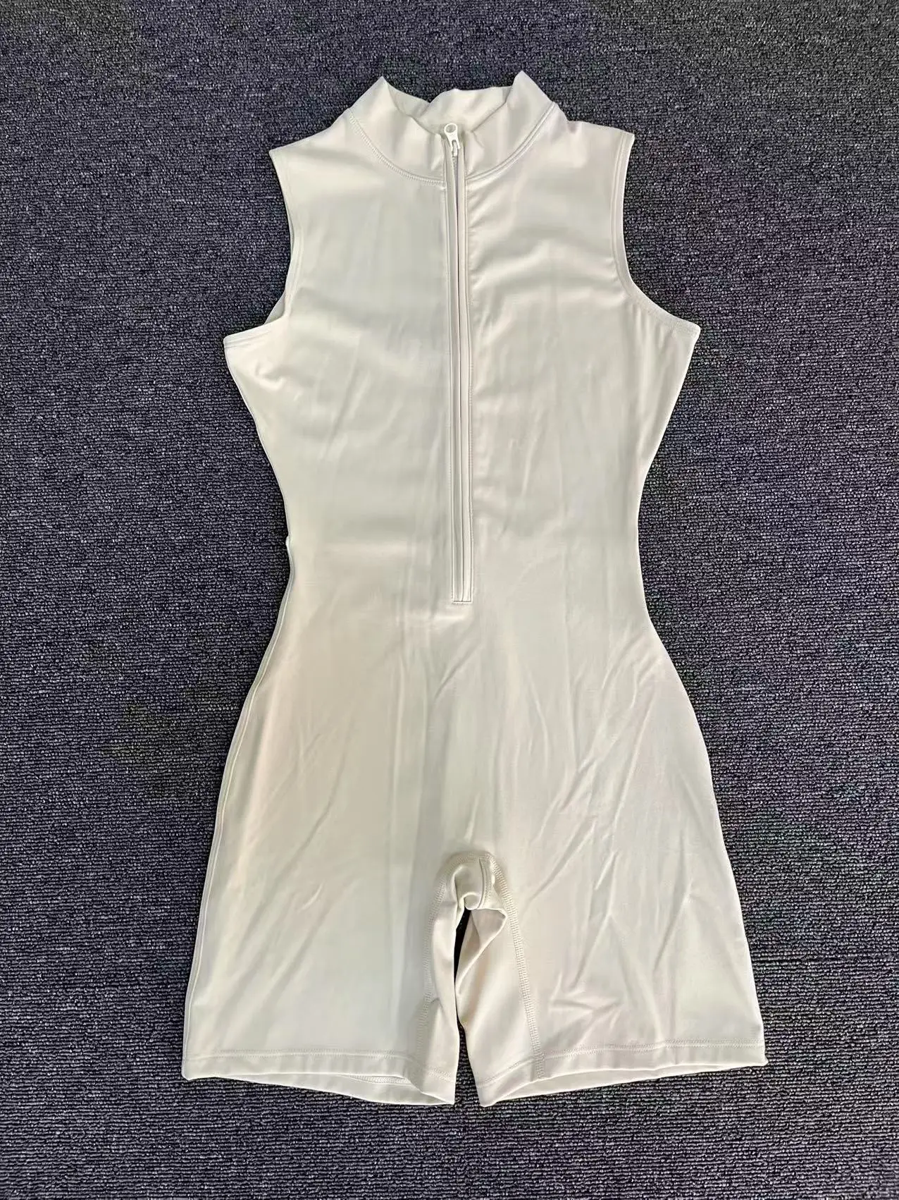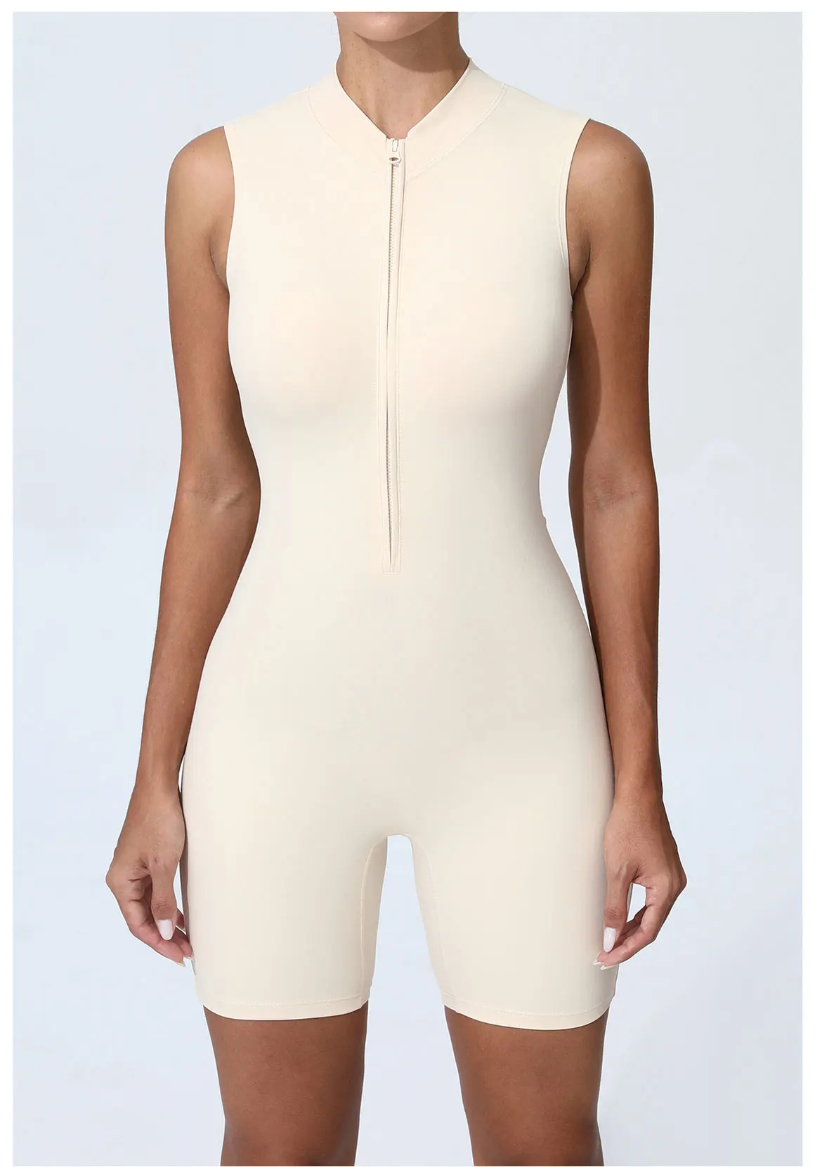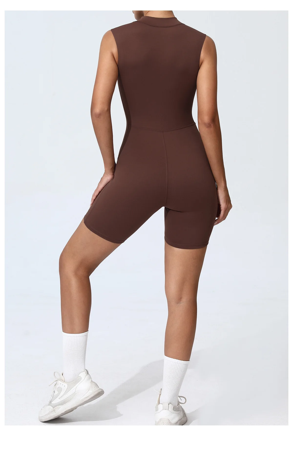 Sport Bodysuit Half Zipper One-Piece Suit Women Tracksuit Workout Jumpsuit Sportswear Gym Set Sleeveless Yoga Fitness Rompers
