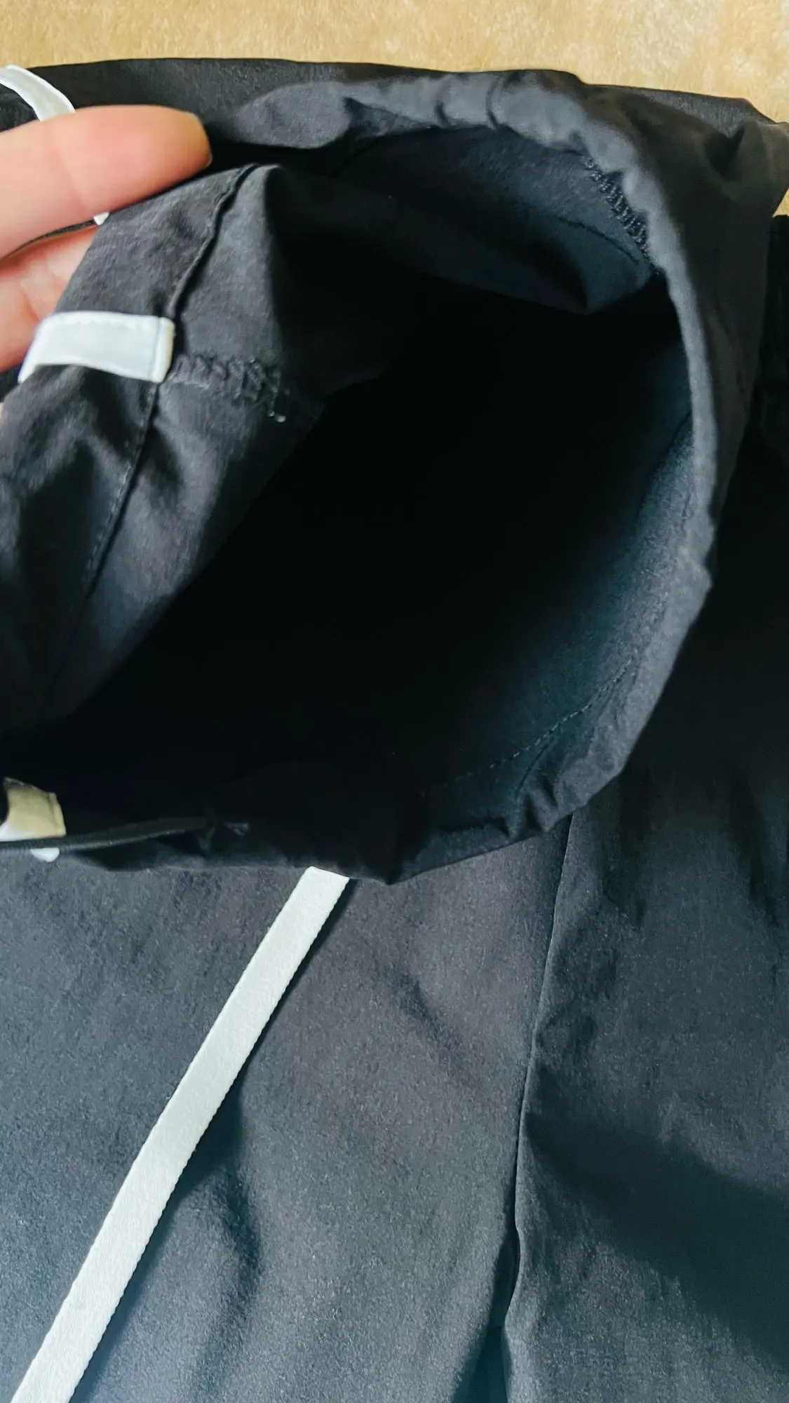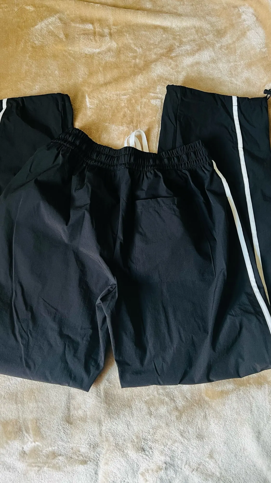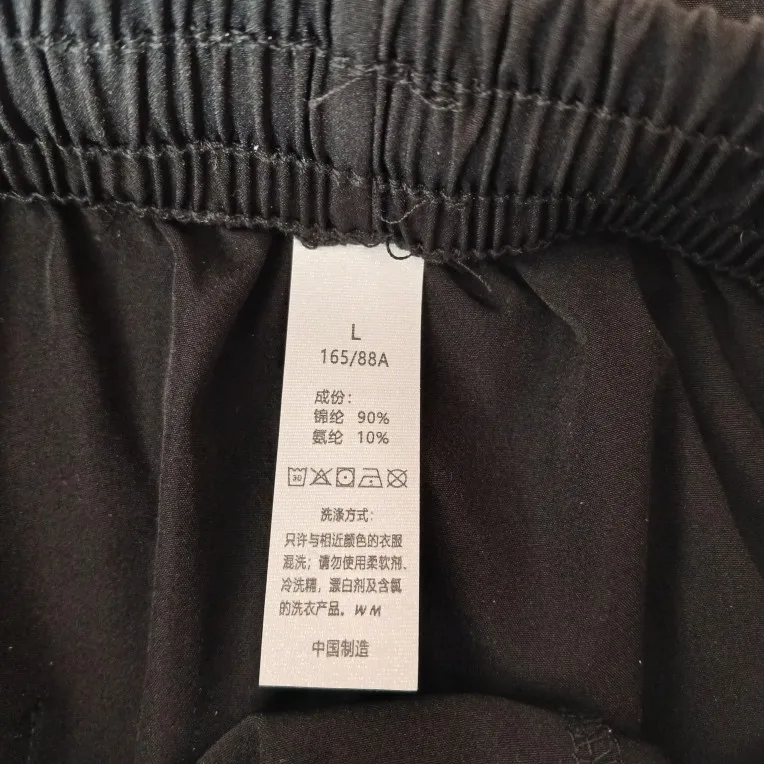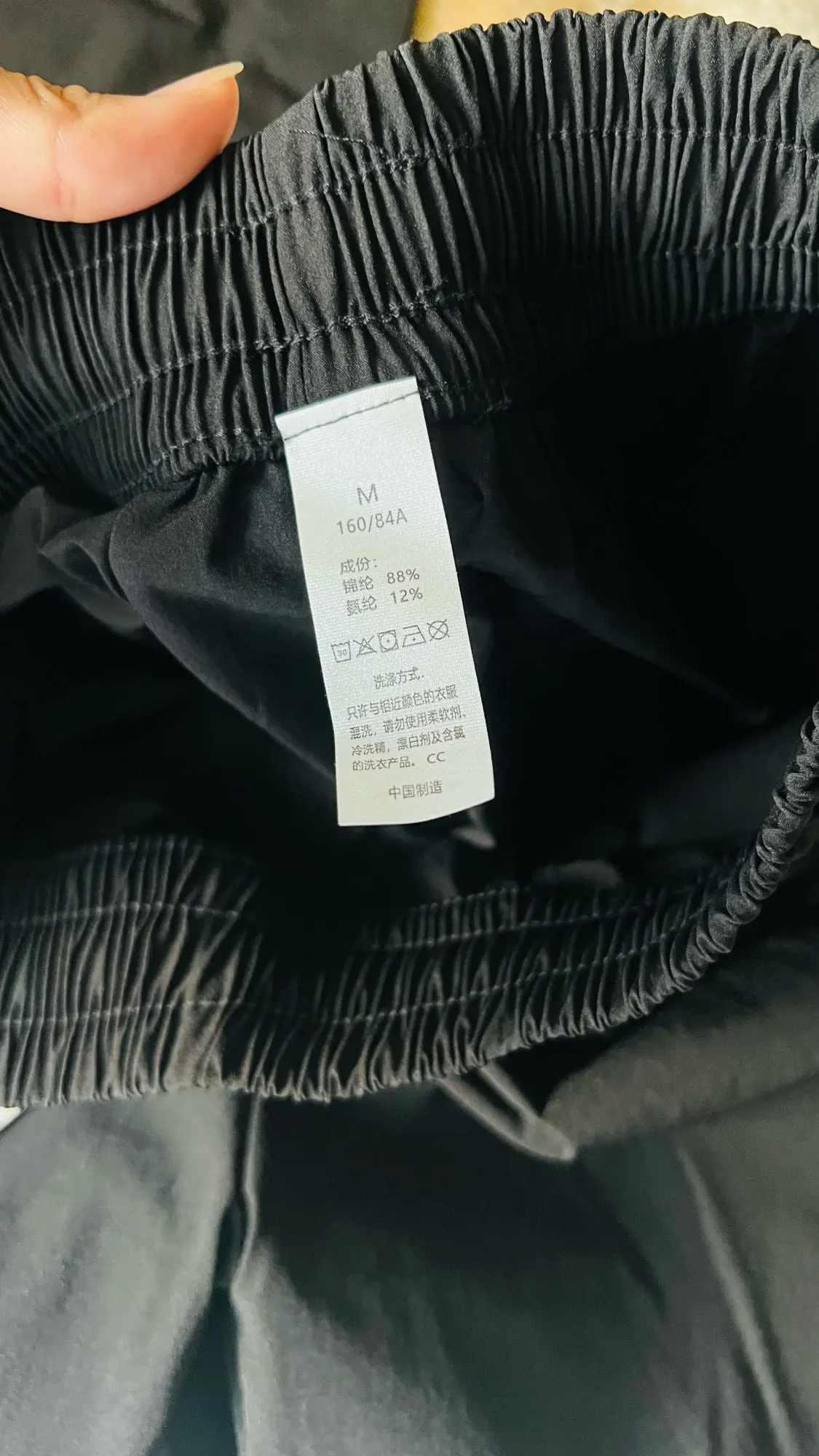 Size L is suitable for a height of 165cm. Composition: 90% nylon, 10% spandex. They tend to become slightly staticky and wrinkle easily. They have a back pocket.