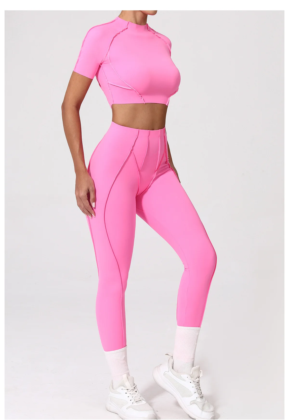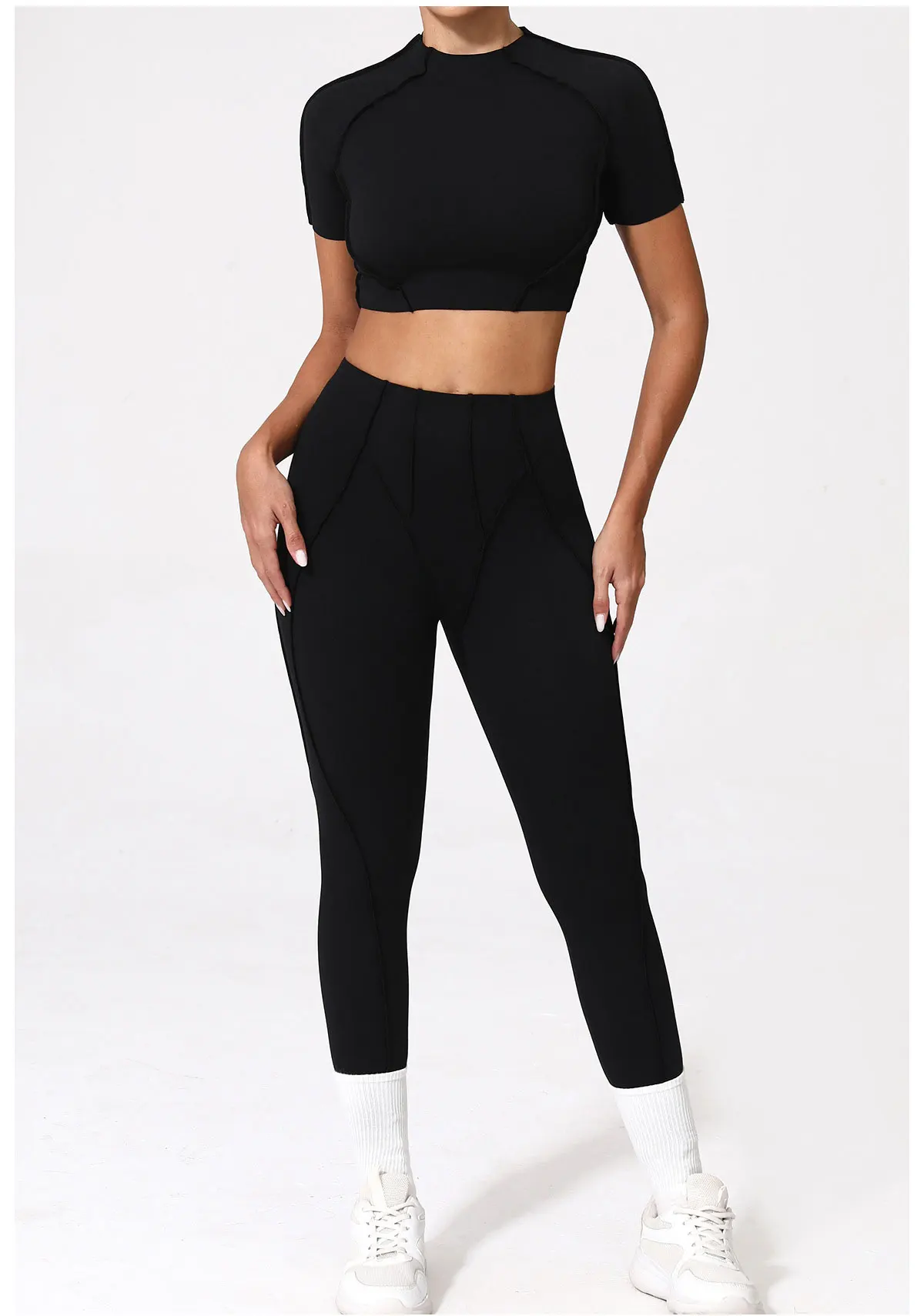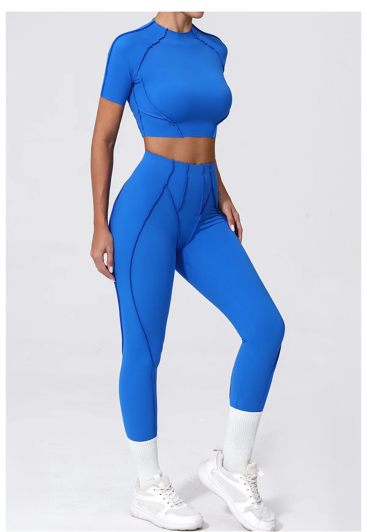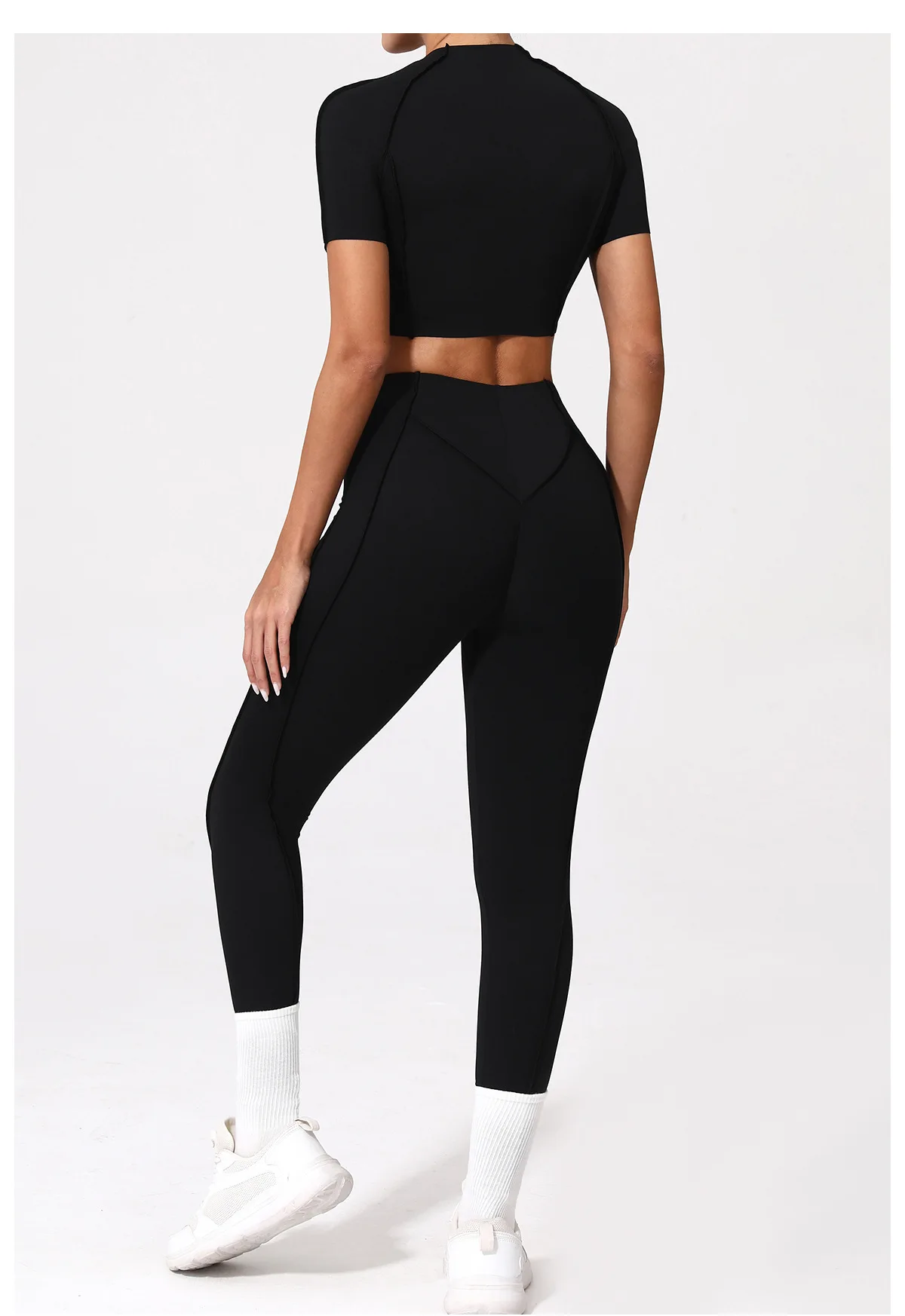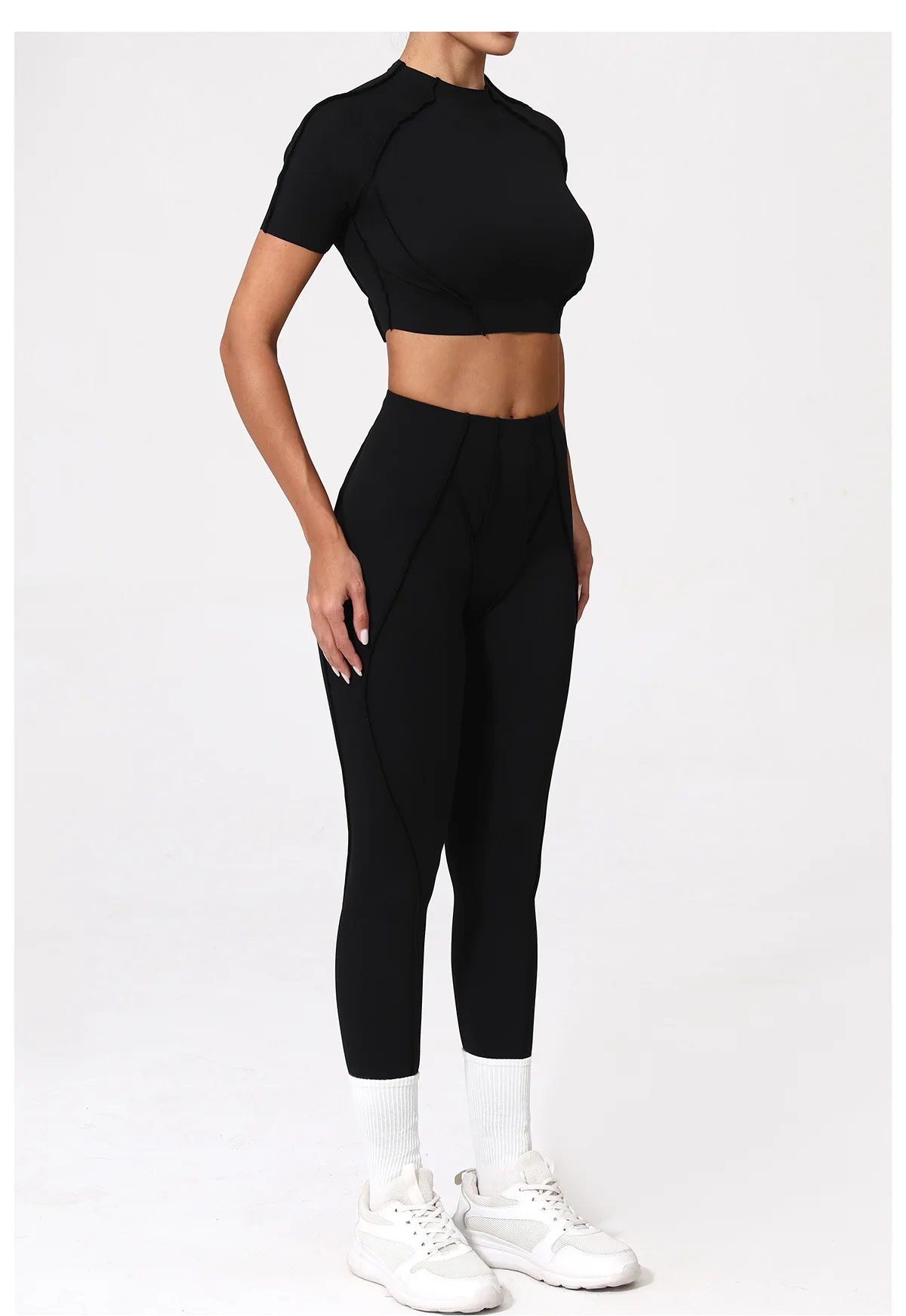 Sports Short Sleeves Yoga Set Women Tracksuits Yoga Clothes Fast Dry Running Shirts Push Up Gym Set Workout Leggings Female