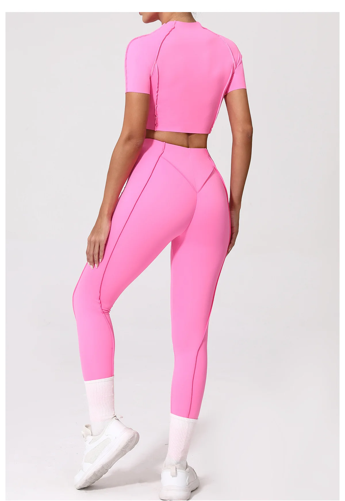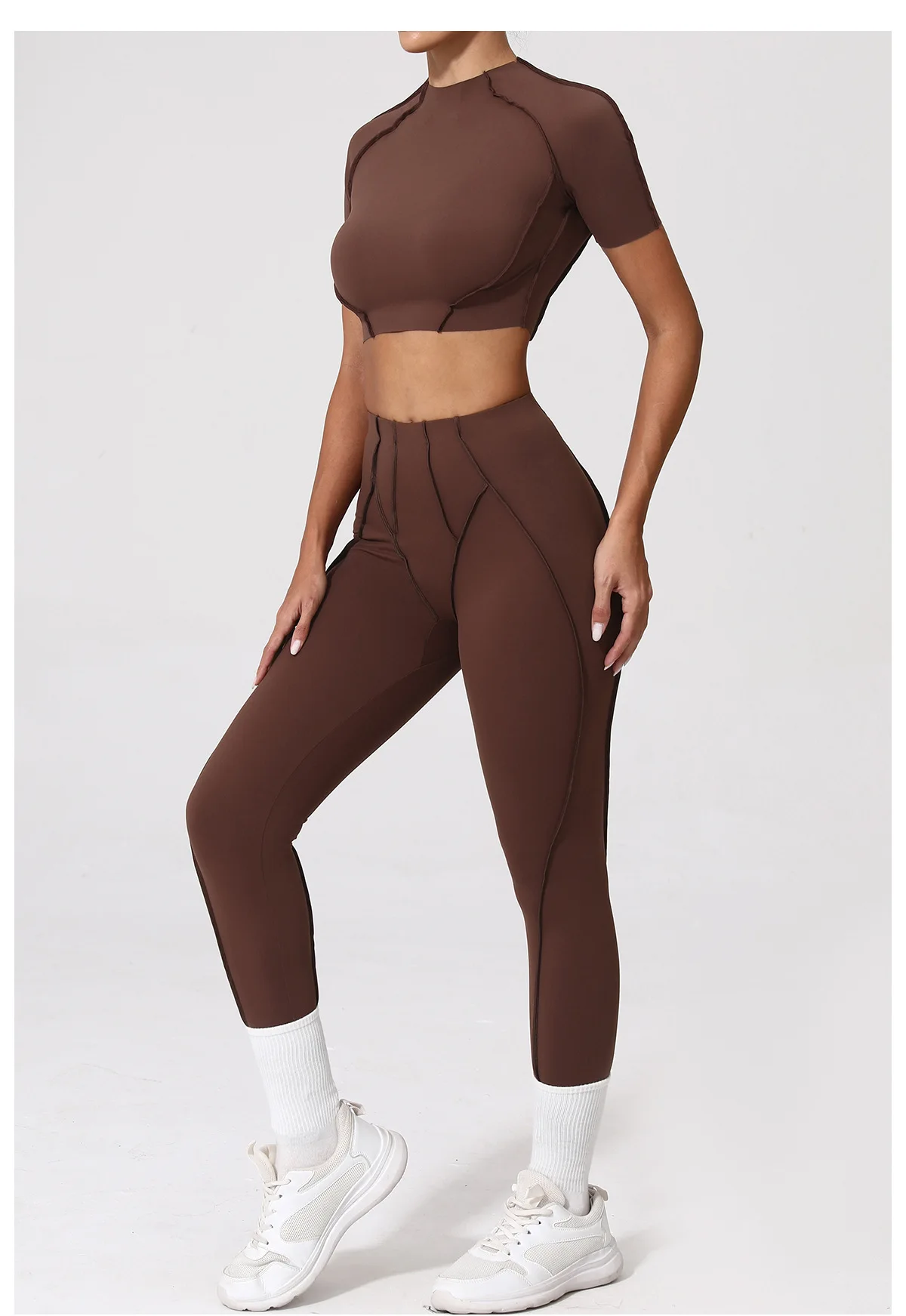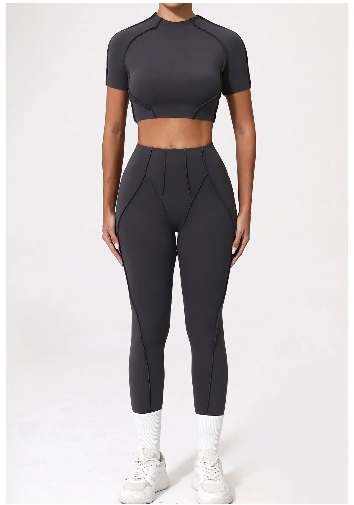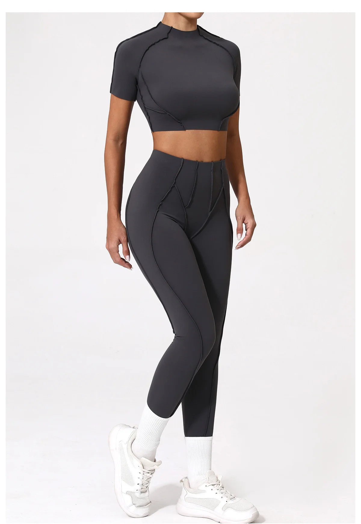 Sports Short Sleeves Yoga Set Women Tracksuits Yoga Clothes Fast Dry Running Shirts Push Up Gym Set Workout Leggings Female