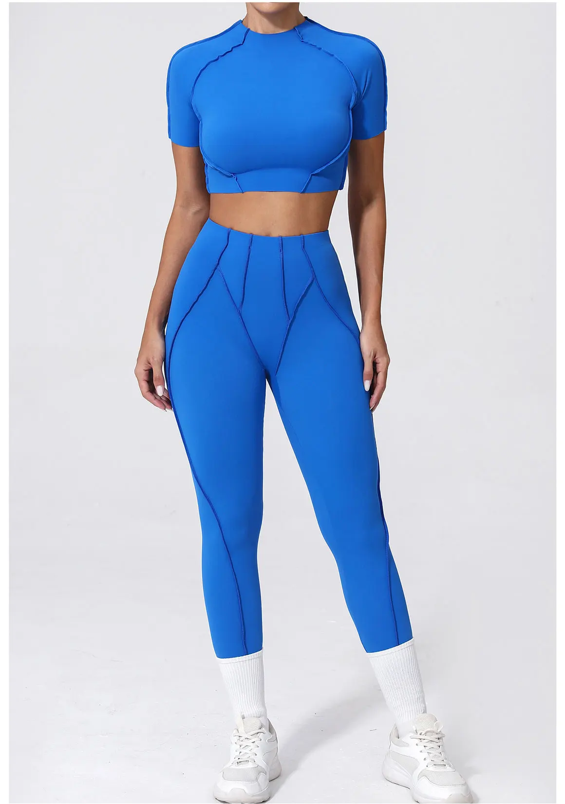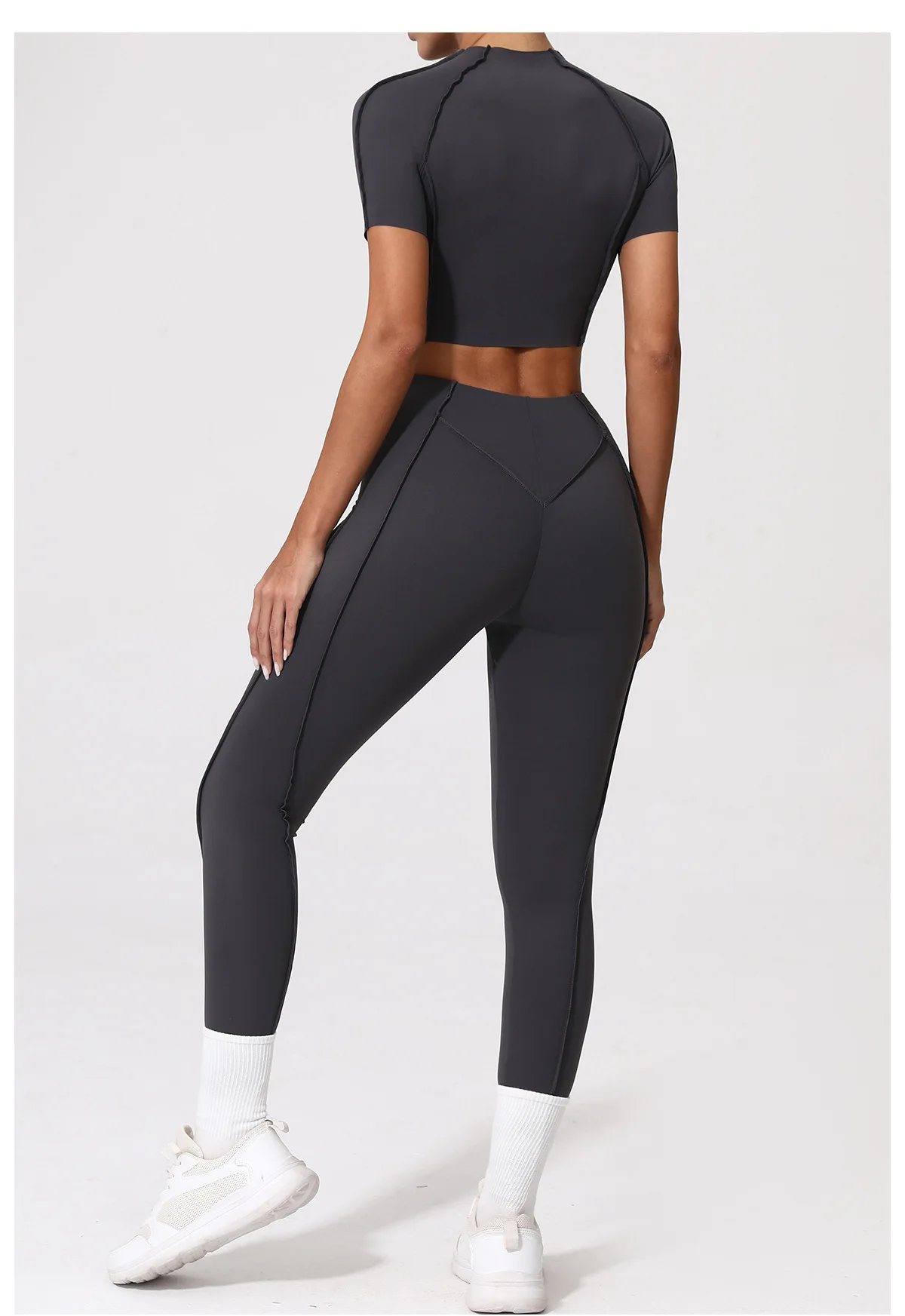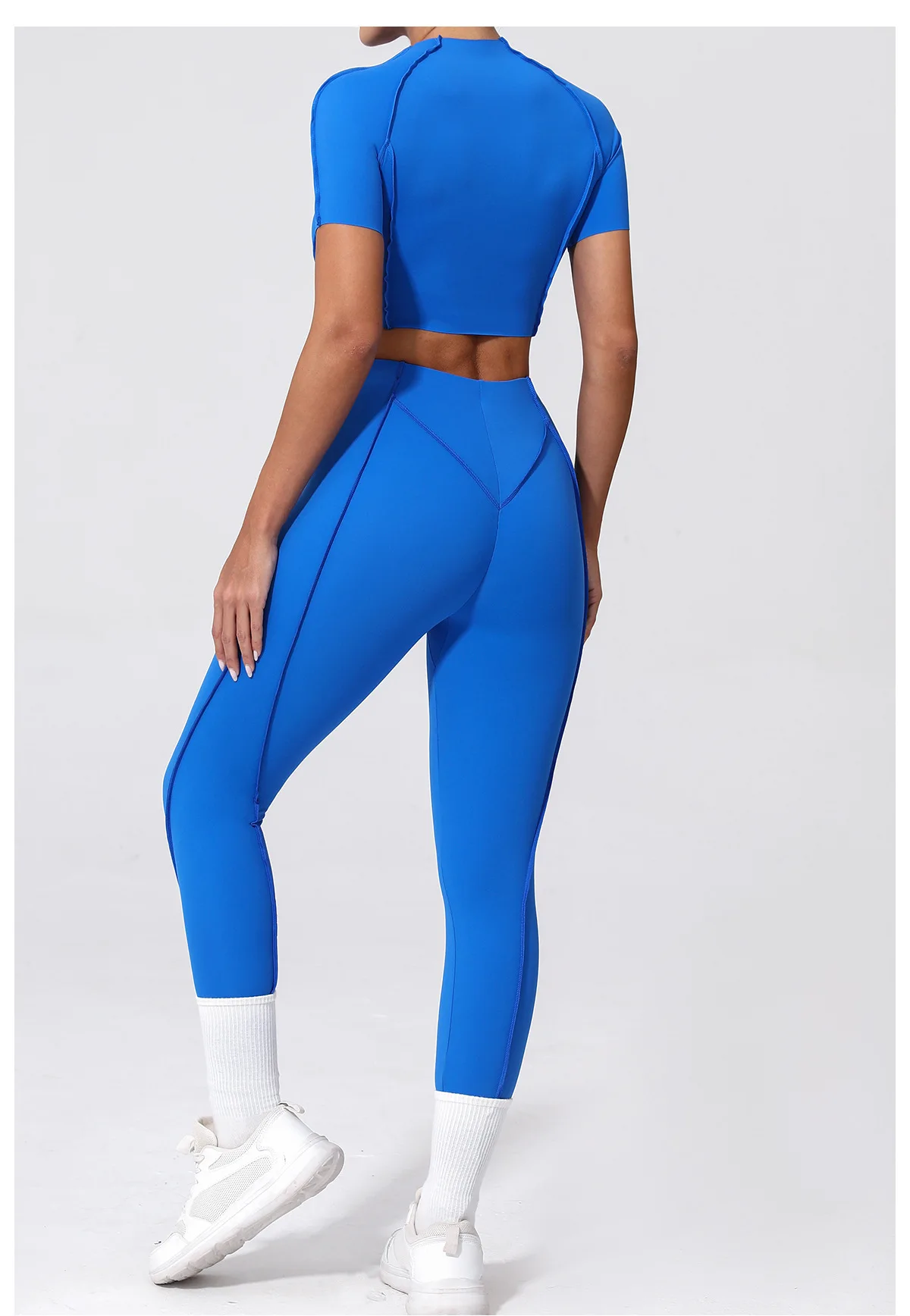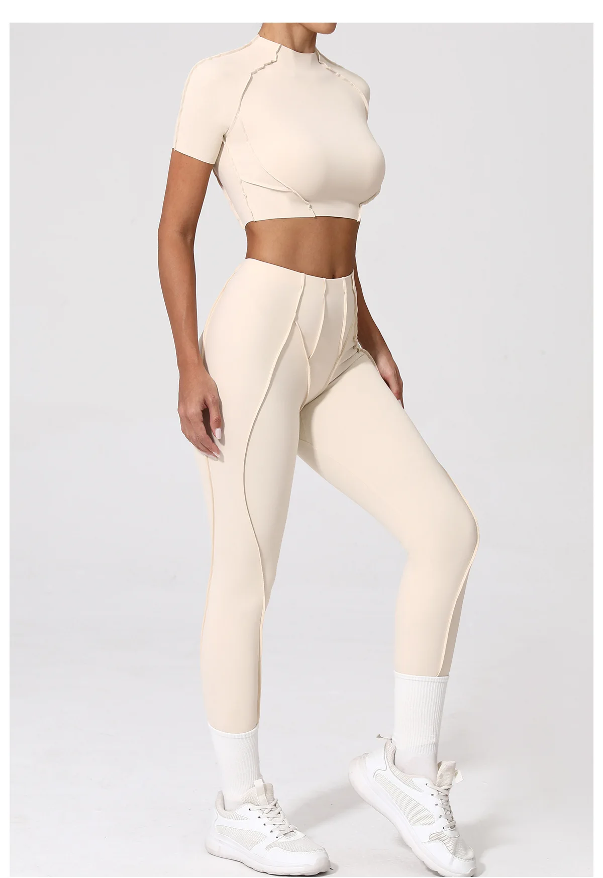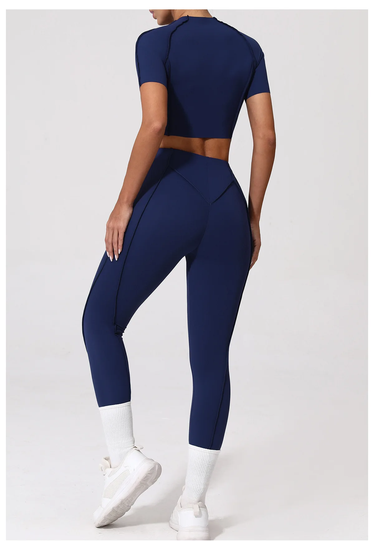 Sports Short Sleeves Yoga Set Women Tracksuits Yoga Clothes Fast Dry Running Shirts Push Up Gym Set Workout Leggings Female