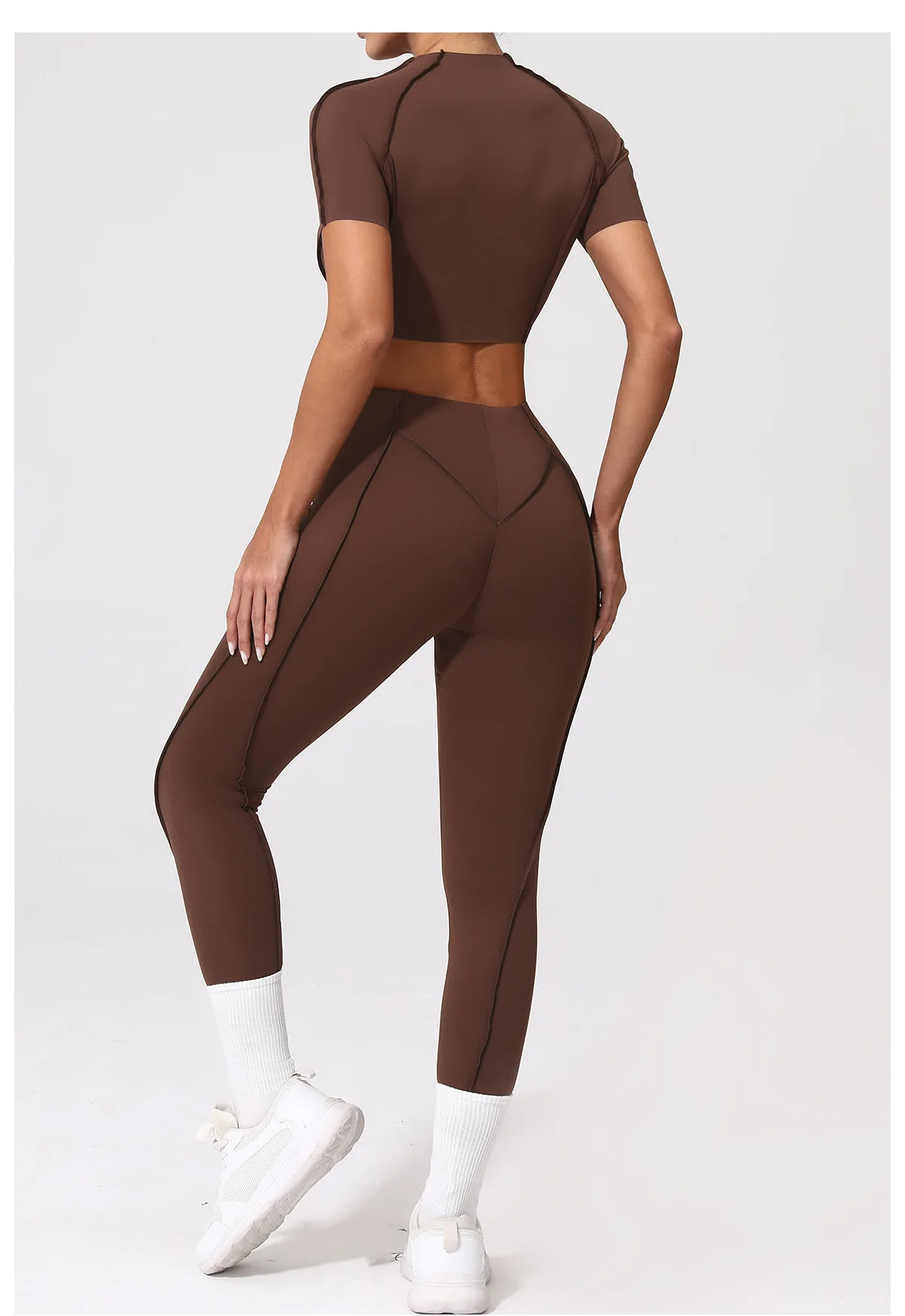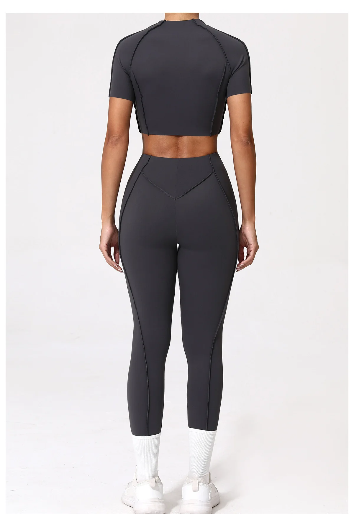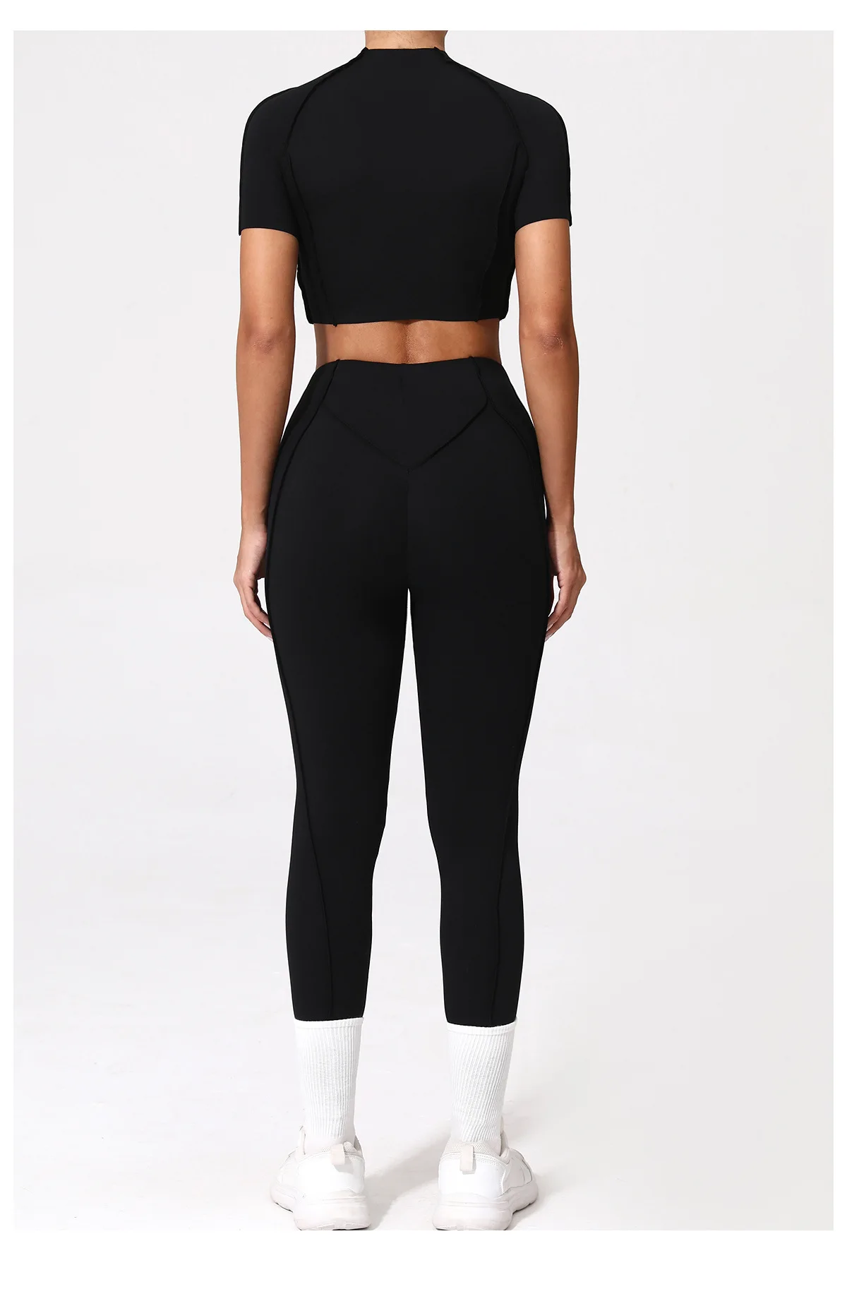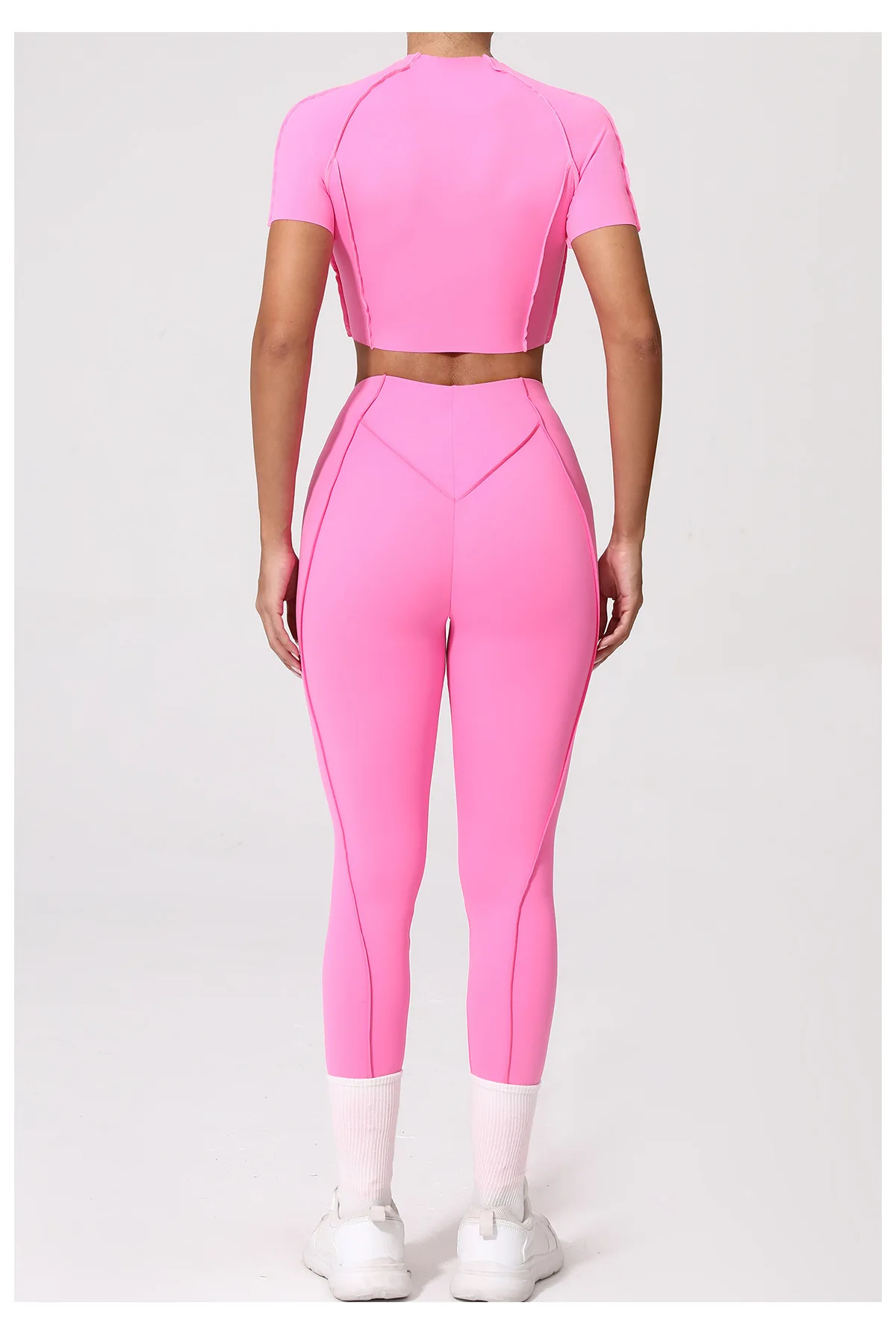 Sports Short Sleeves Yoga Set Women Tracksuits Yoga Clothes Fast Dry Running Shirts Push Up Gym Set Workout Leggings Female