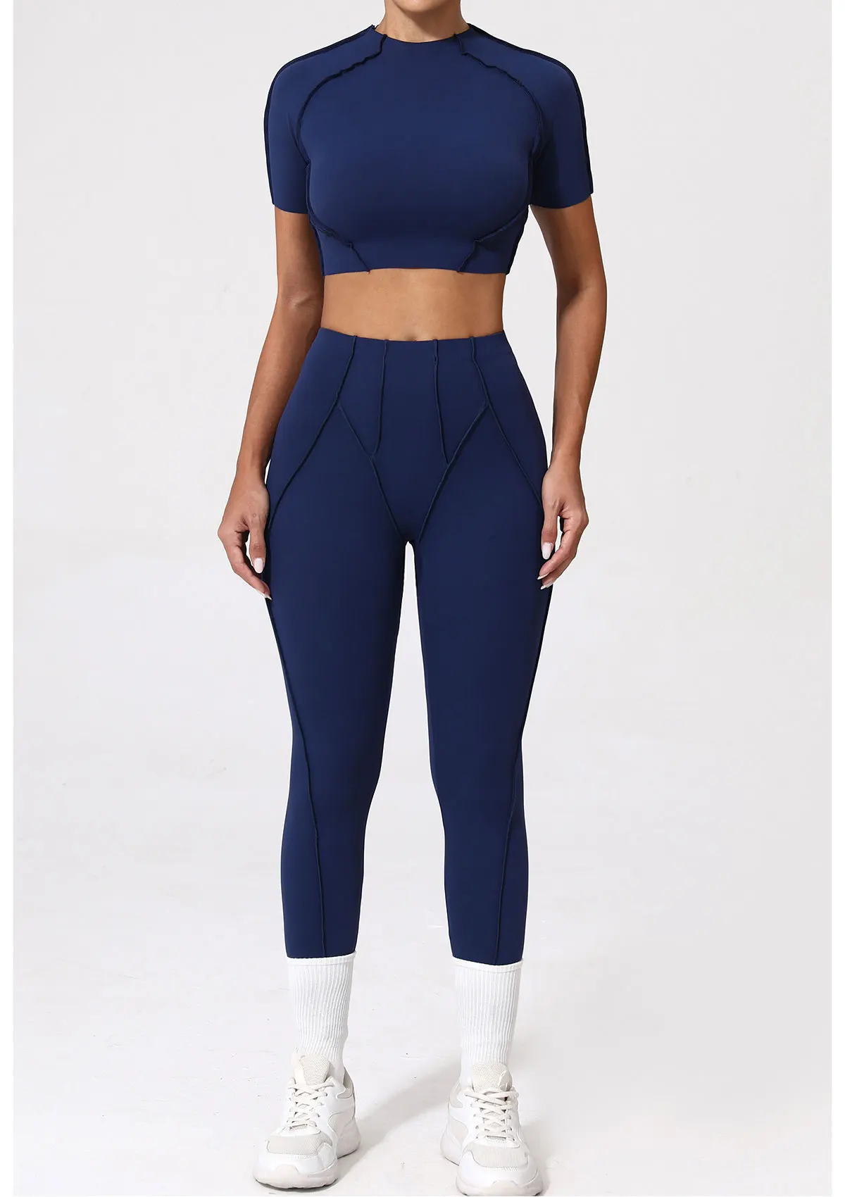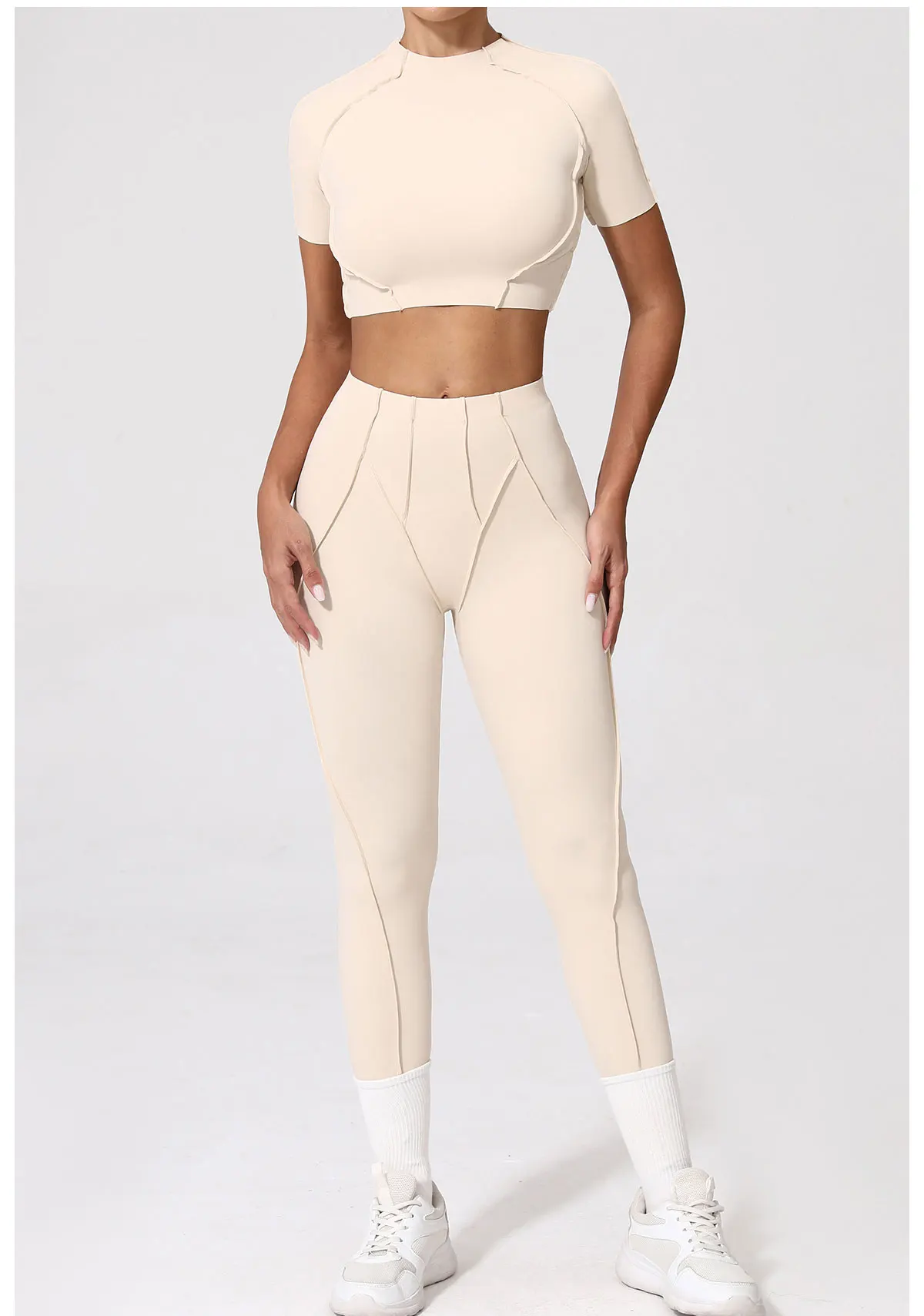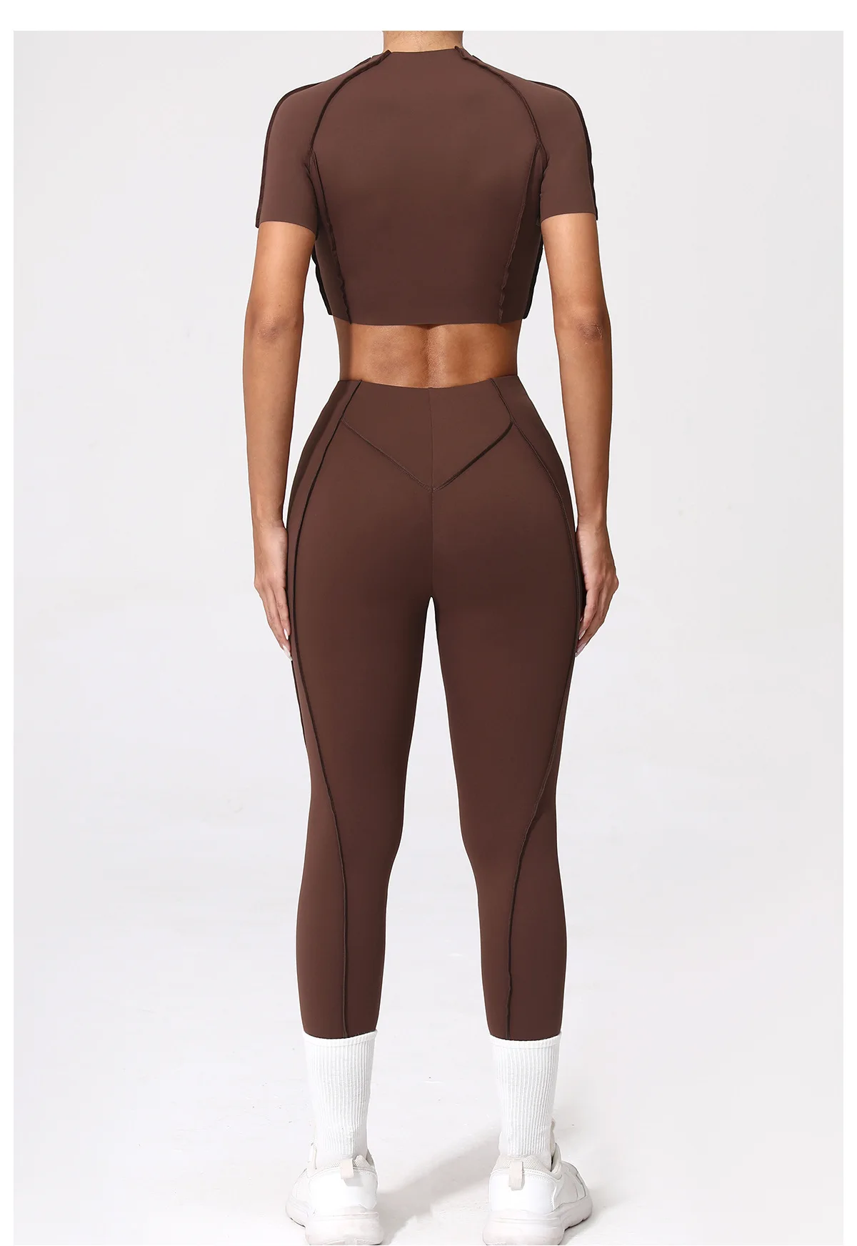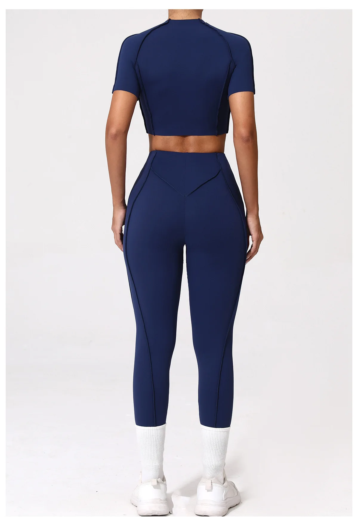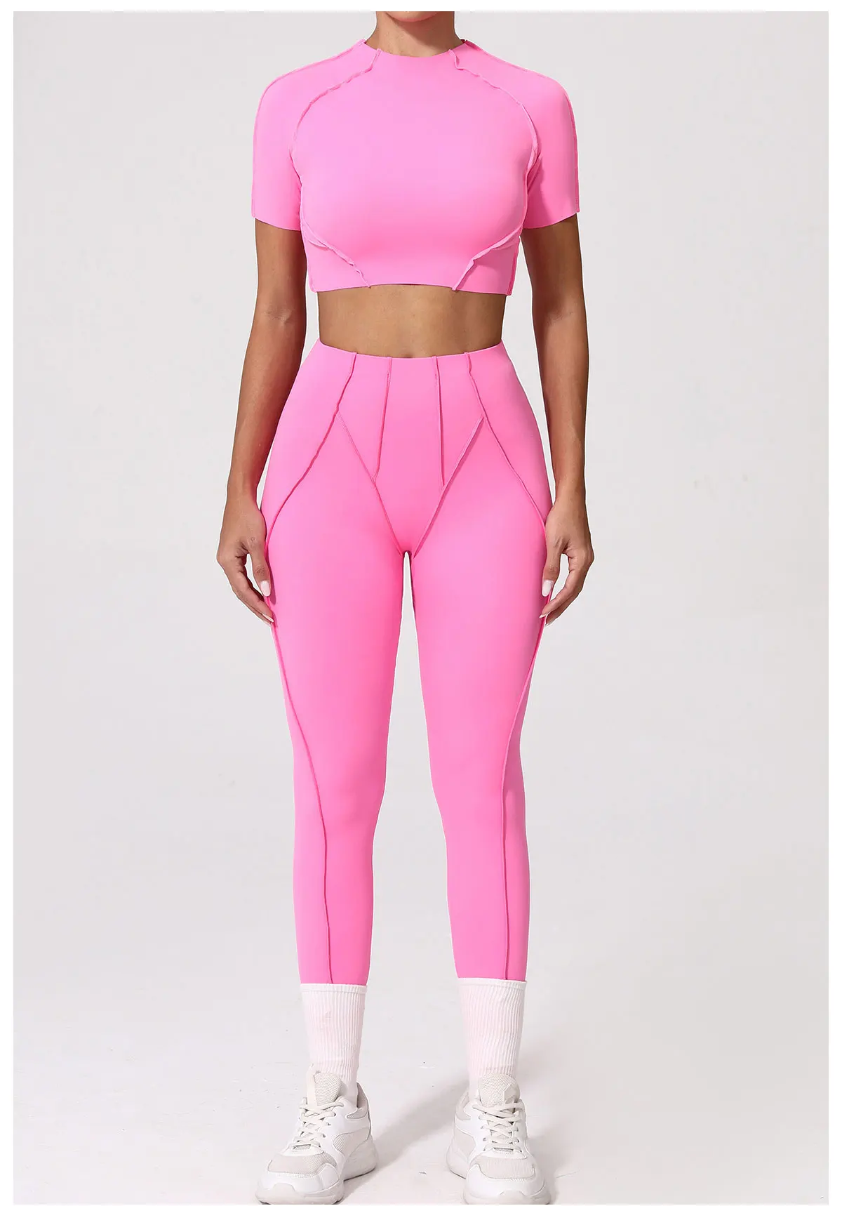 Sports Short Sleeves Yoga Set Women Tracksuits Yoga Clothes Fast Dry Running Shirts Push Up Gym Set Workout Leggings Female