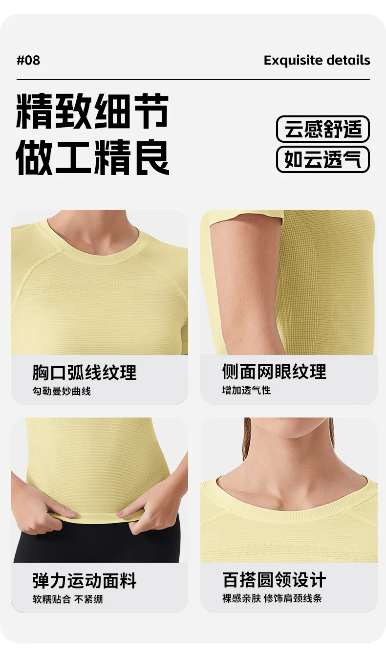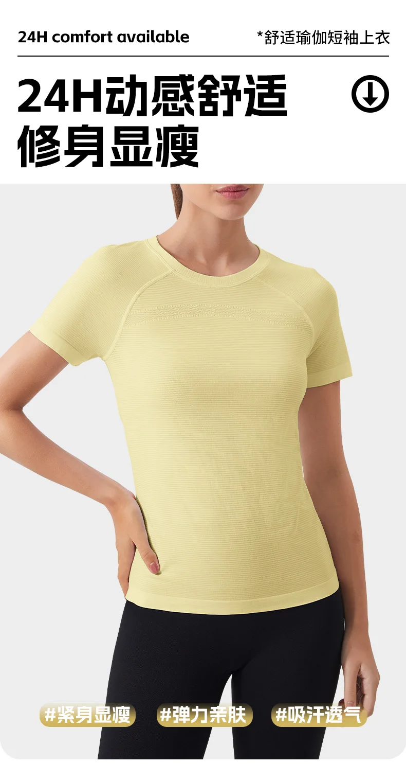 Sports tops, breathable yoga clothes, women’s tight-fitting and thin fitness clothes, running training Pilates t-shirt,