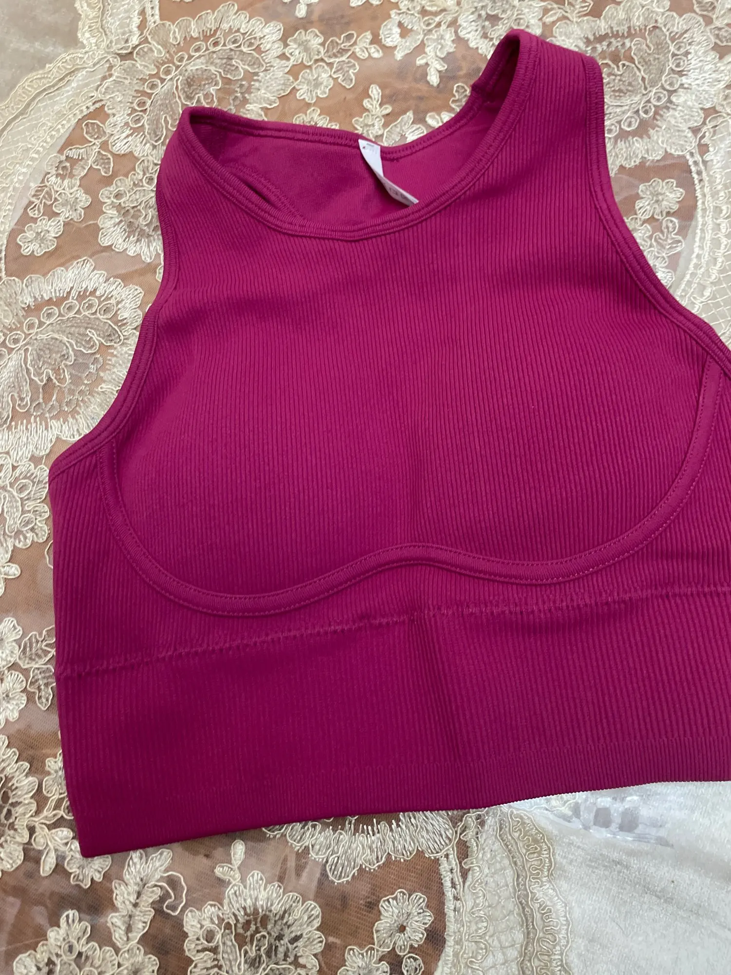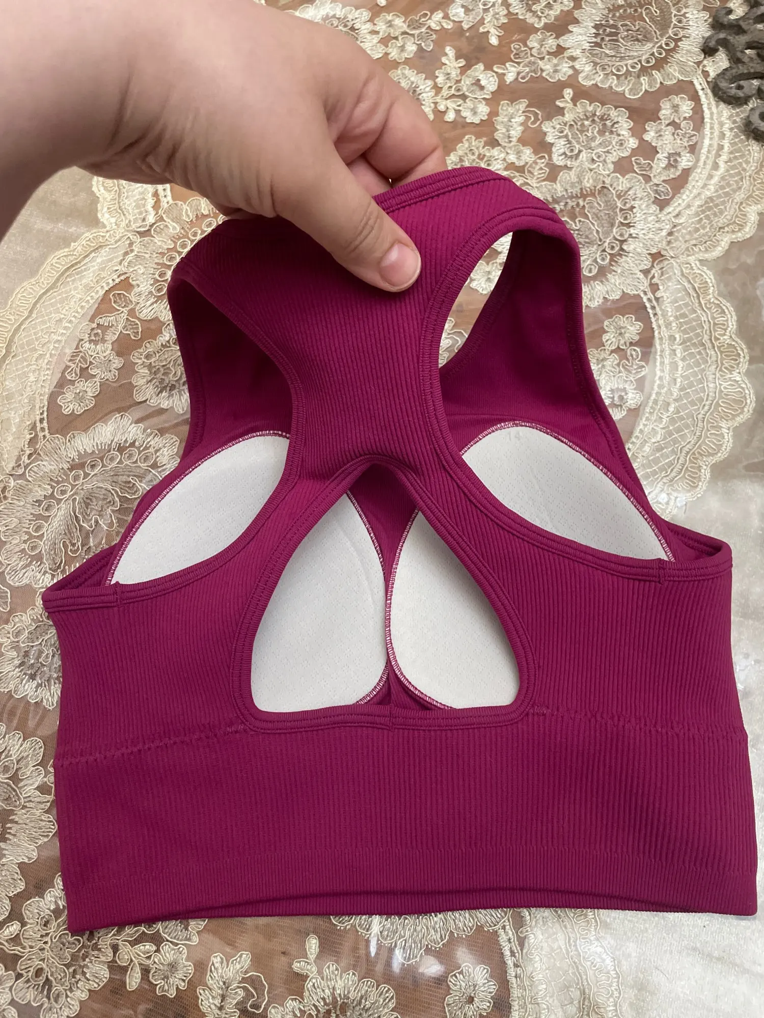 Really nice detailing! This bra looks much more expensive than it was. It’s a bit more compressive than other similar models so go up one size.