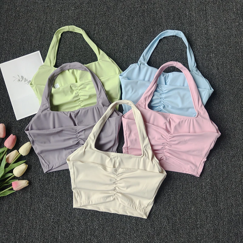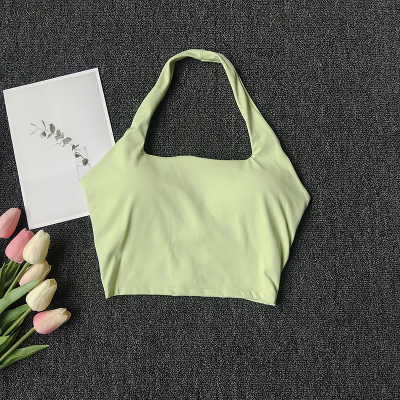 Sports Vest for Women Wearing Chest Pad Shockproof Fitness Bra with Neck Halter Fast Drying Beautiful Back Yoga Underwear Summer