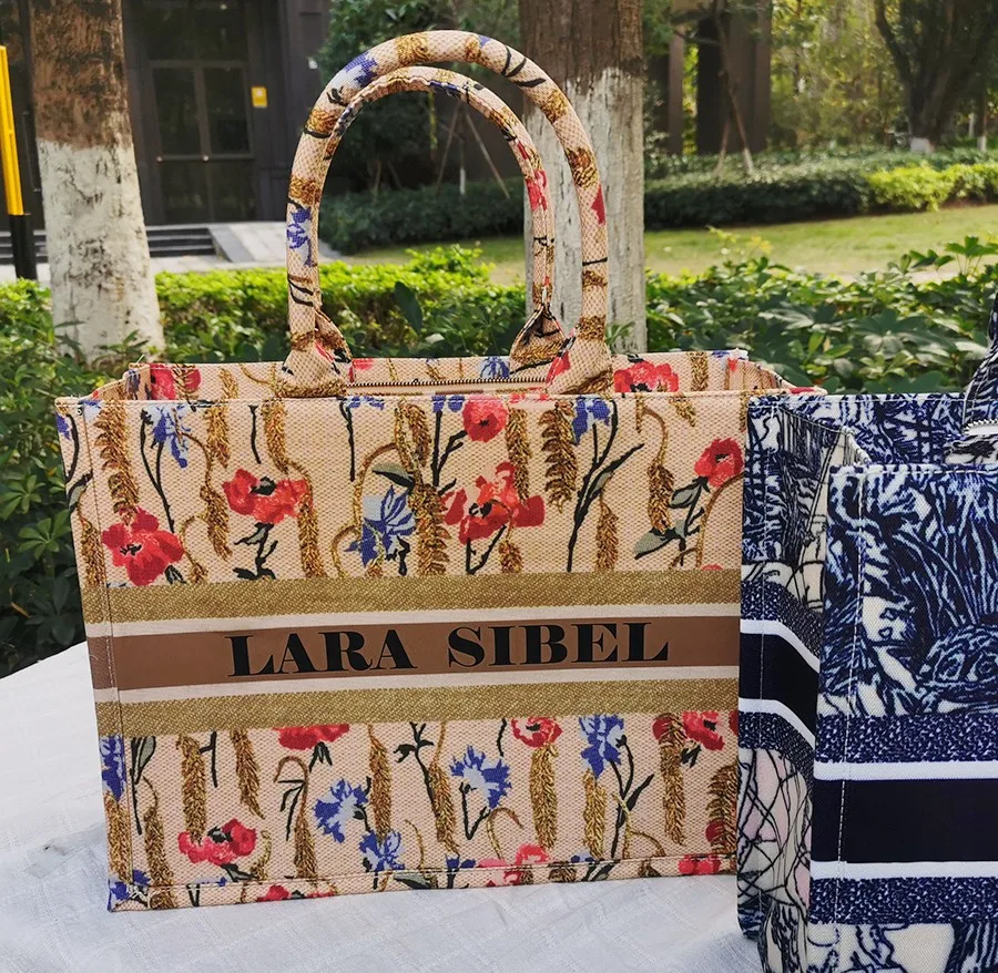 Spring And Summer Personalized Fashion Printing Large Capacity Canvas Tote Bag Name Custom Printing Women Commuter Travel Bag