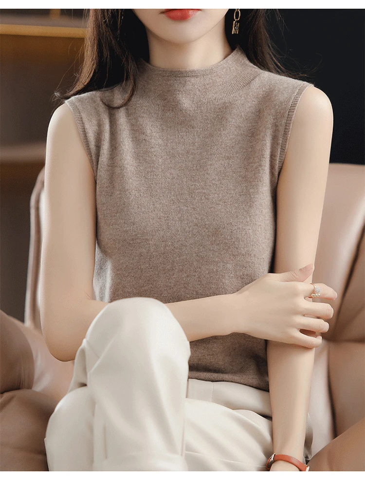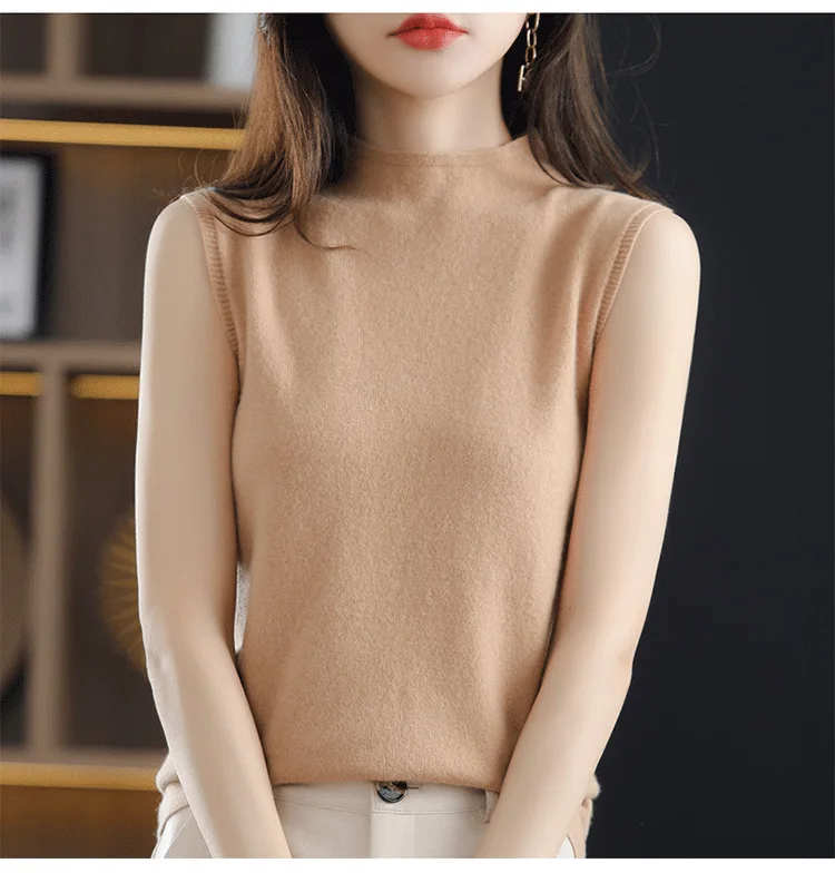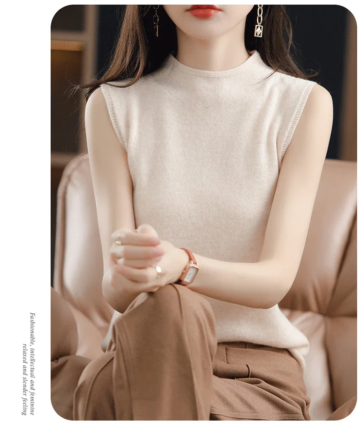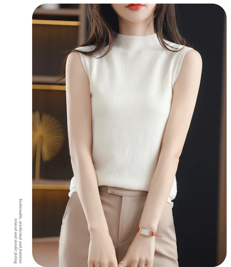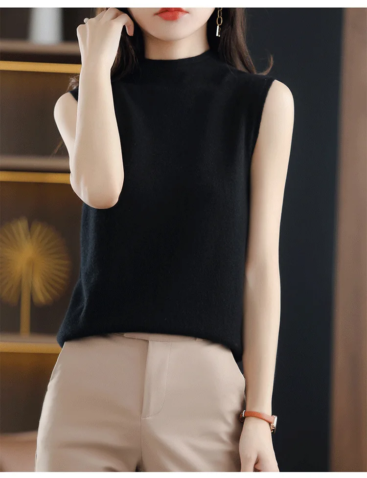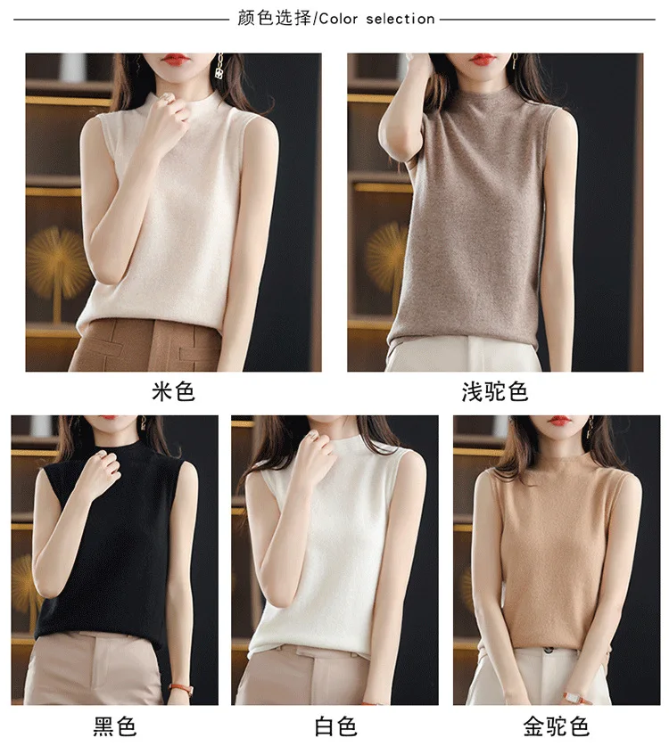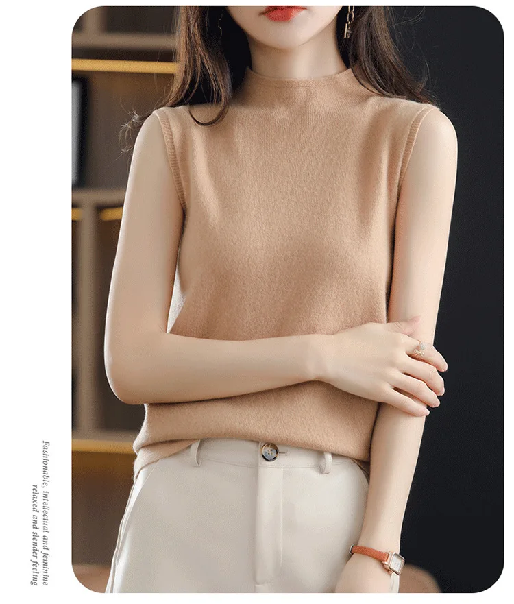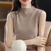 Spring Autumn Women Sweater Vest Half High Collar Slim Fit Knitwears Warm Pullovers Casual Knitted Tops Korean Fashion Jumpers