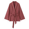 Spring Kimono Style Coat Pants Set Women Solid Lace Up Shirt Wide Leg Pleat Pockets Trousers 2025 Lady Loose 2 Piece Outfits