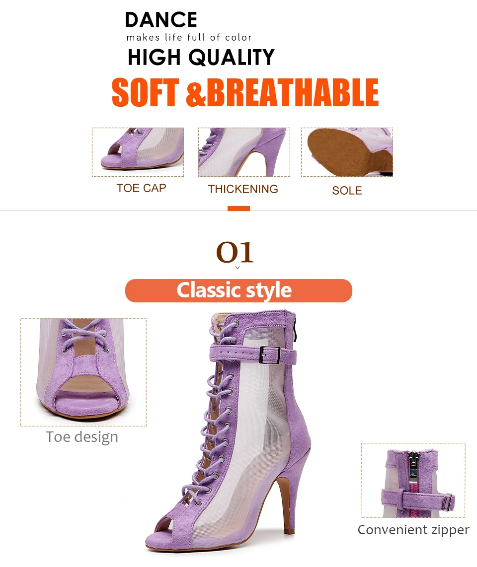 Spring/Summer New Dance Shoes Woman Purple/Black Latin Ballroom dance shoes Ladies Girls Party Dance Boots Women Dancing Shoes