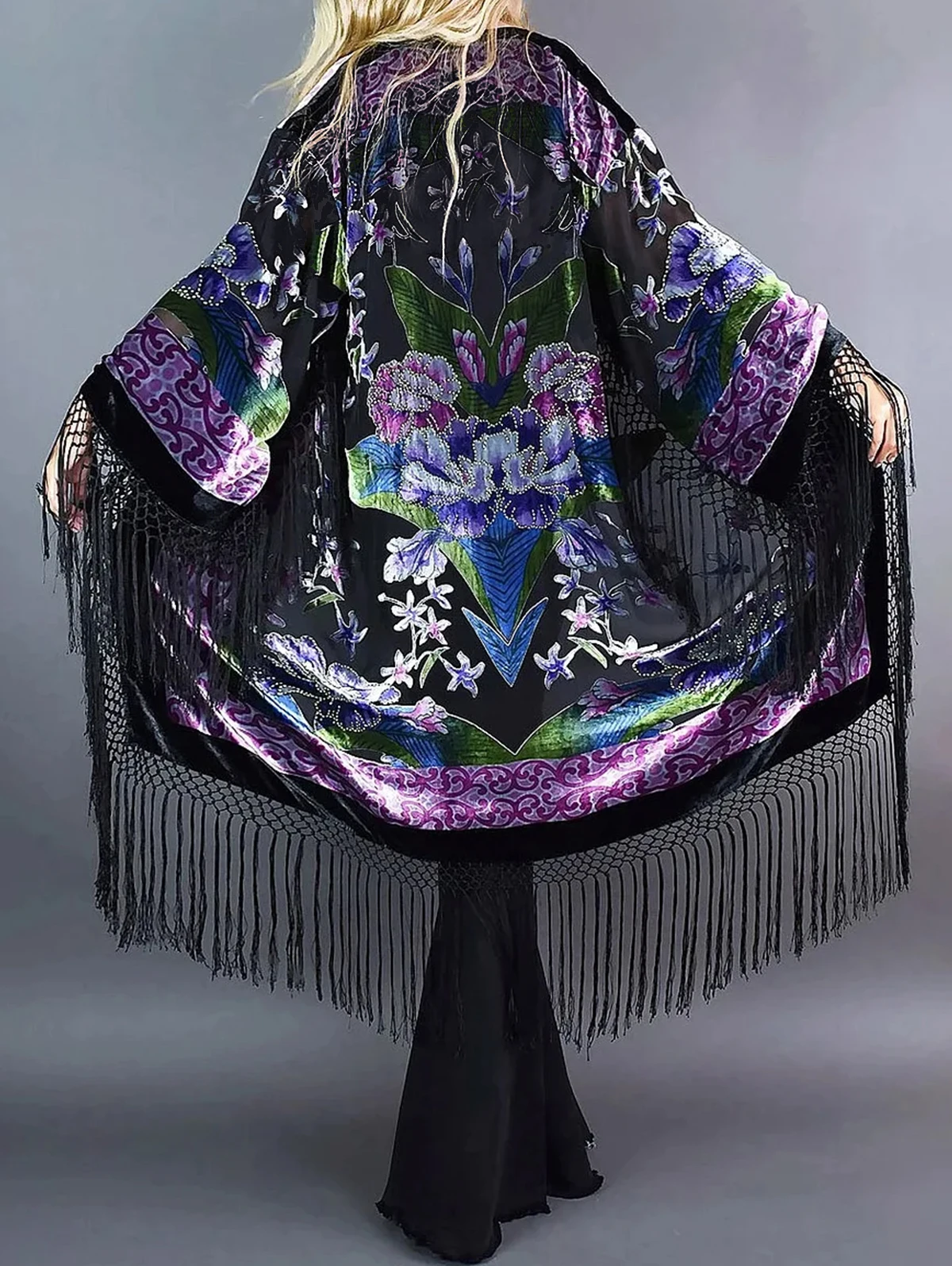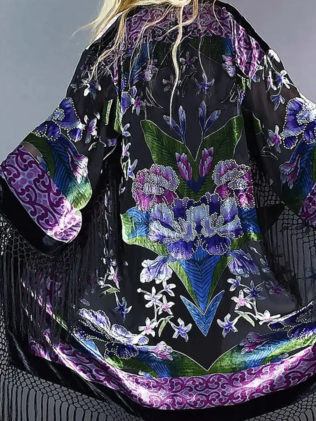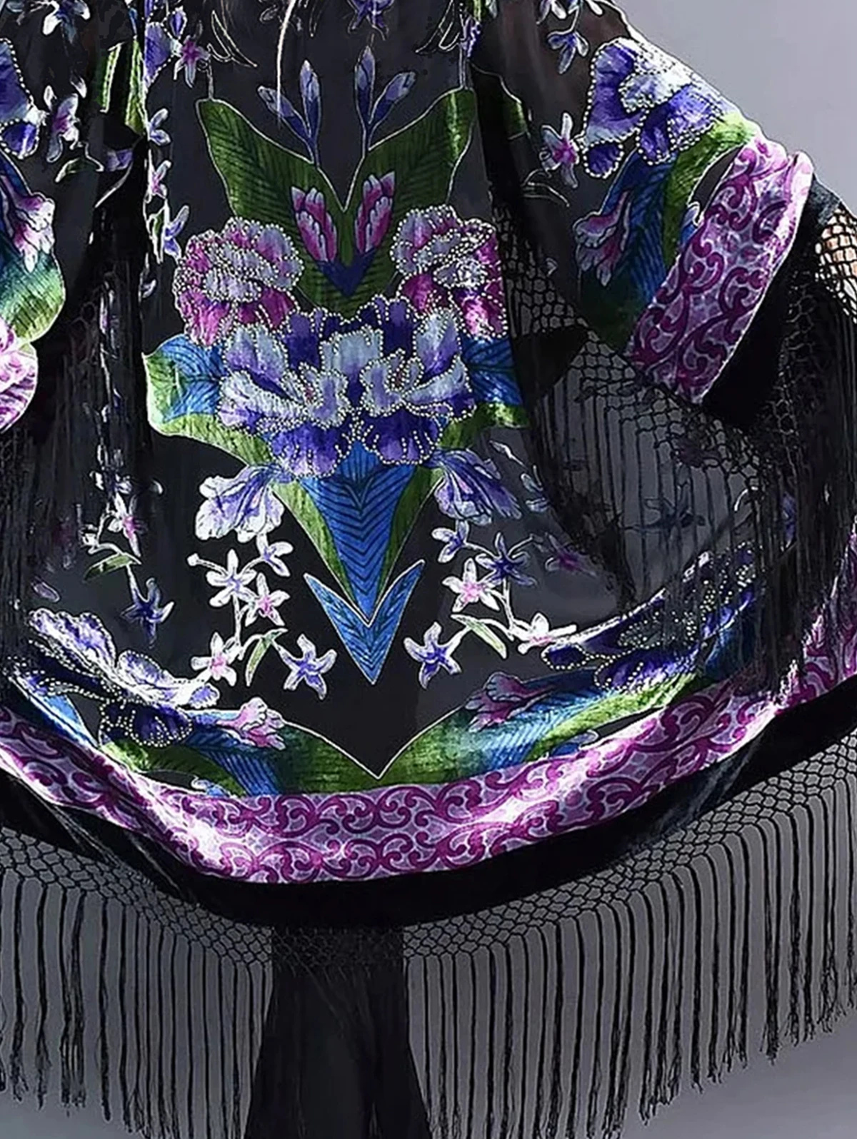 Spring Summer Sun Protection Clothing Women Long Cardigan Elegant Colorblock Floral Pattern Crochet Long Fringe Jacket Outerwear
