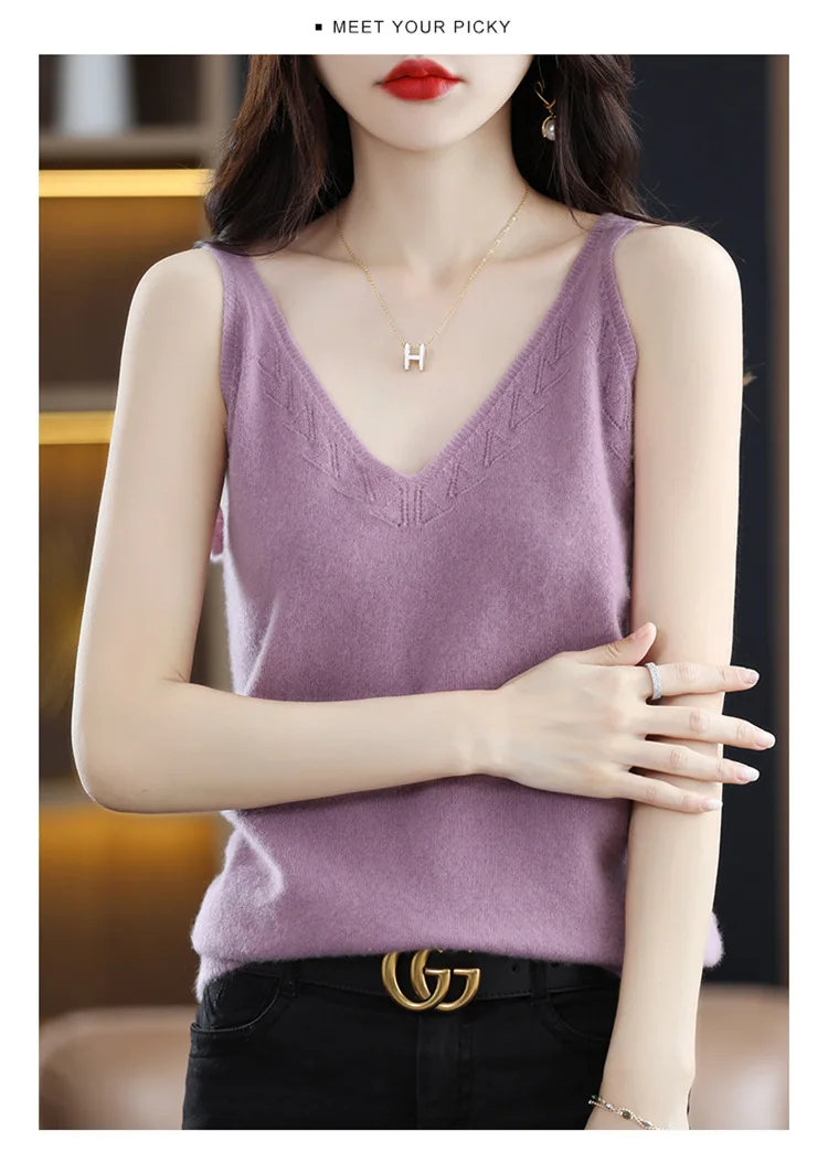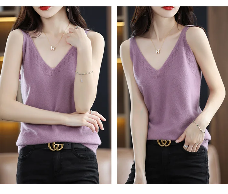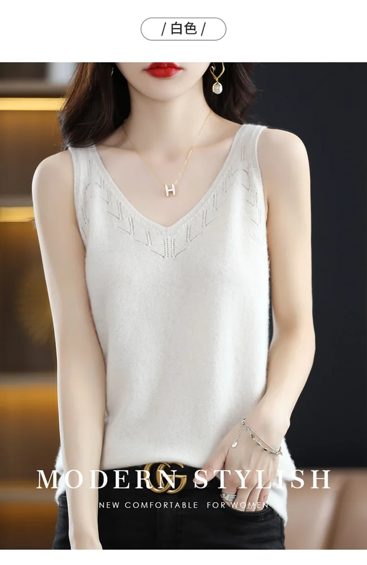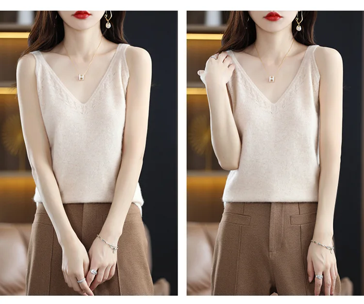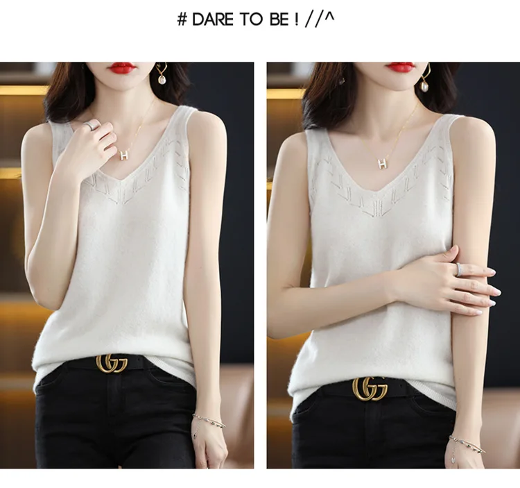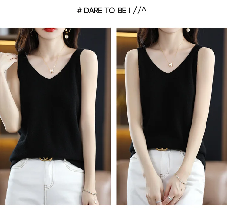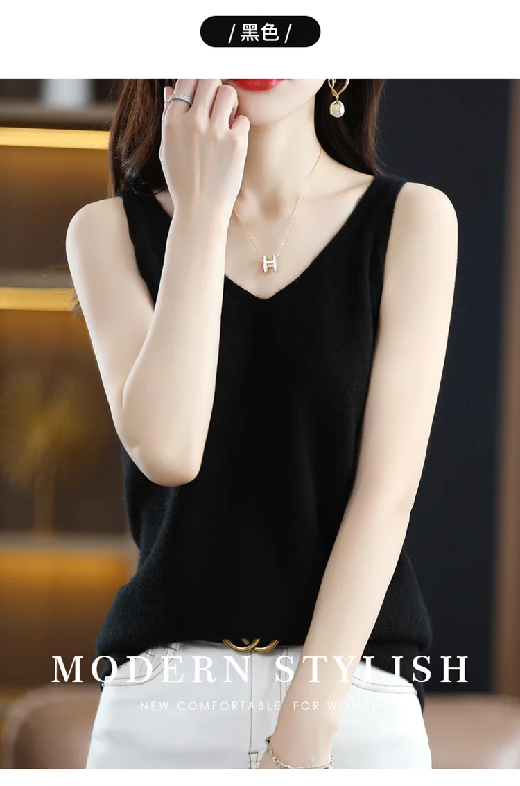 Spring Summer Women Sweater Vest Slim Fit V-neck Sleeveless Knitwears Tops Korean Fashion Innerwear Bottoming Shirt Knit Vests