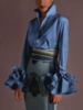 Spring Women’s Blouses Vintage Demin Shirts 2024 Fashion Ruffles Flare Sleeve Tops Lapel Casual Loose Solid Blusas Femininas Top