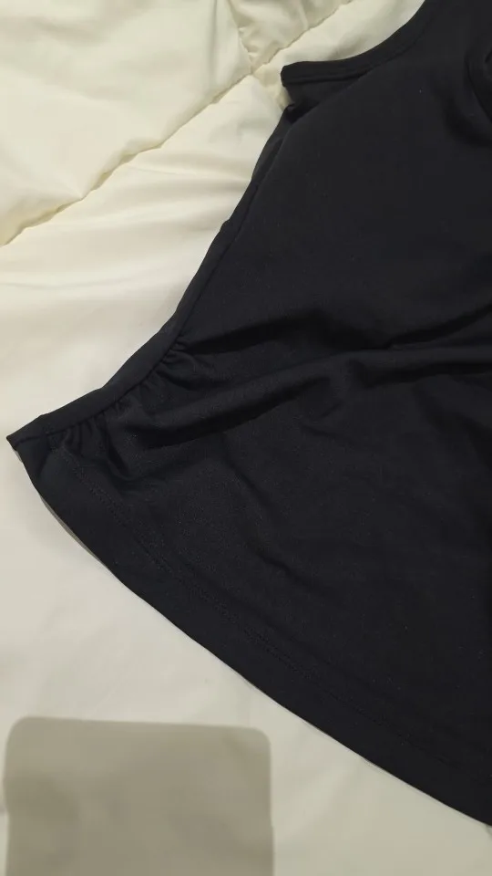 It seems to be considered as a regular Korean large size. It's a bit tight and may feel a little hot. Since it's an all-in-one bra, that's the best point. It would look pretty even if worn up to about 60kg. The waist line is tight, making it look a bit more slim. The delivery was fast, and at this price, I would buy 2-3 Korean ones. This is beautiful!